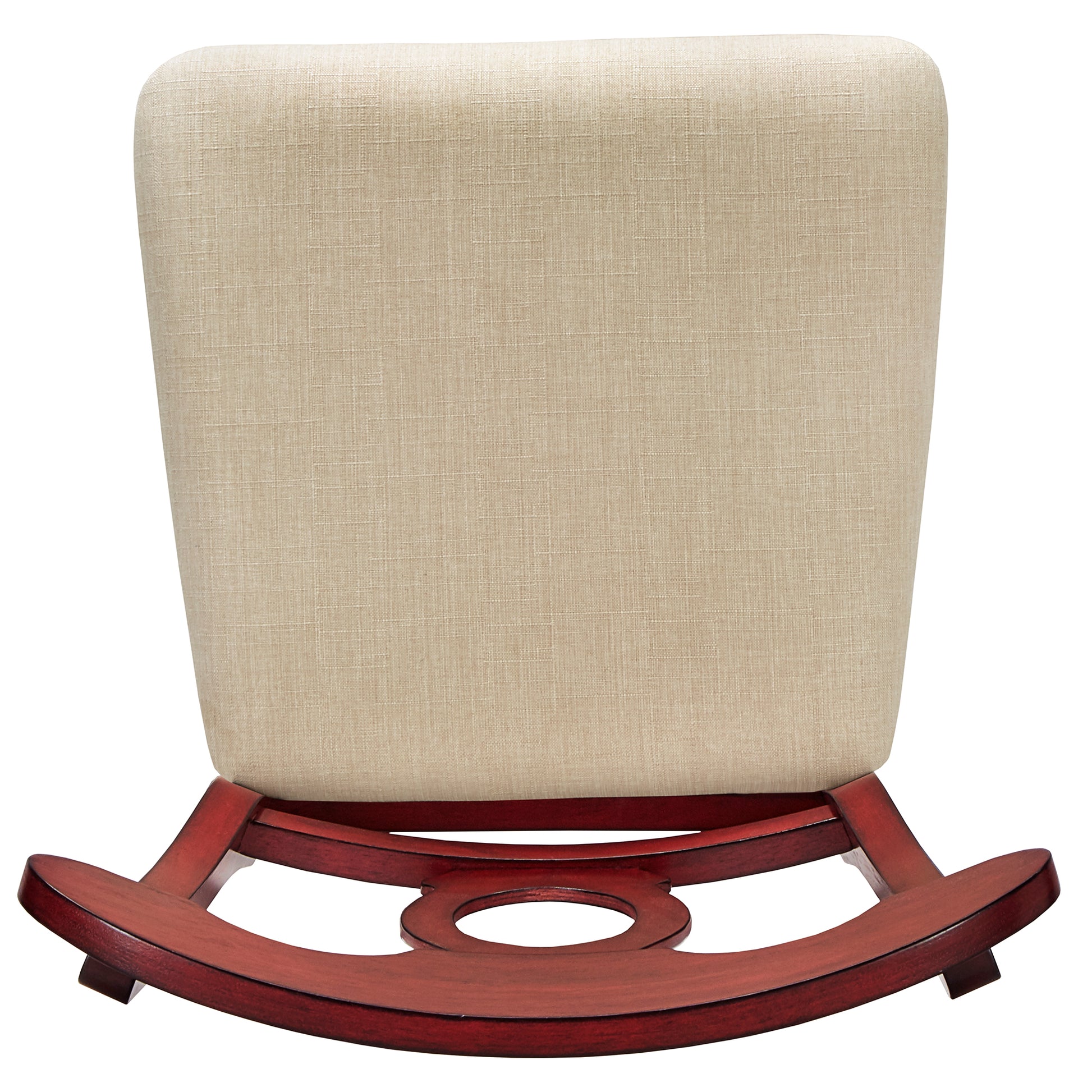 - Features a padded seat, beige fabric upholstery, and footrest for added comfort