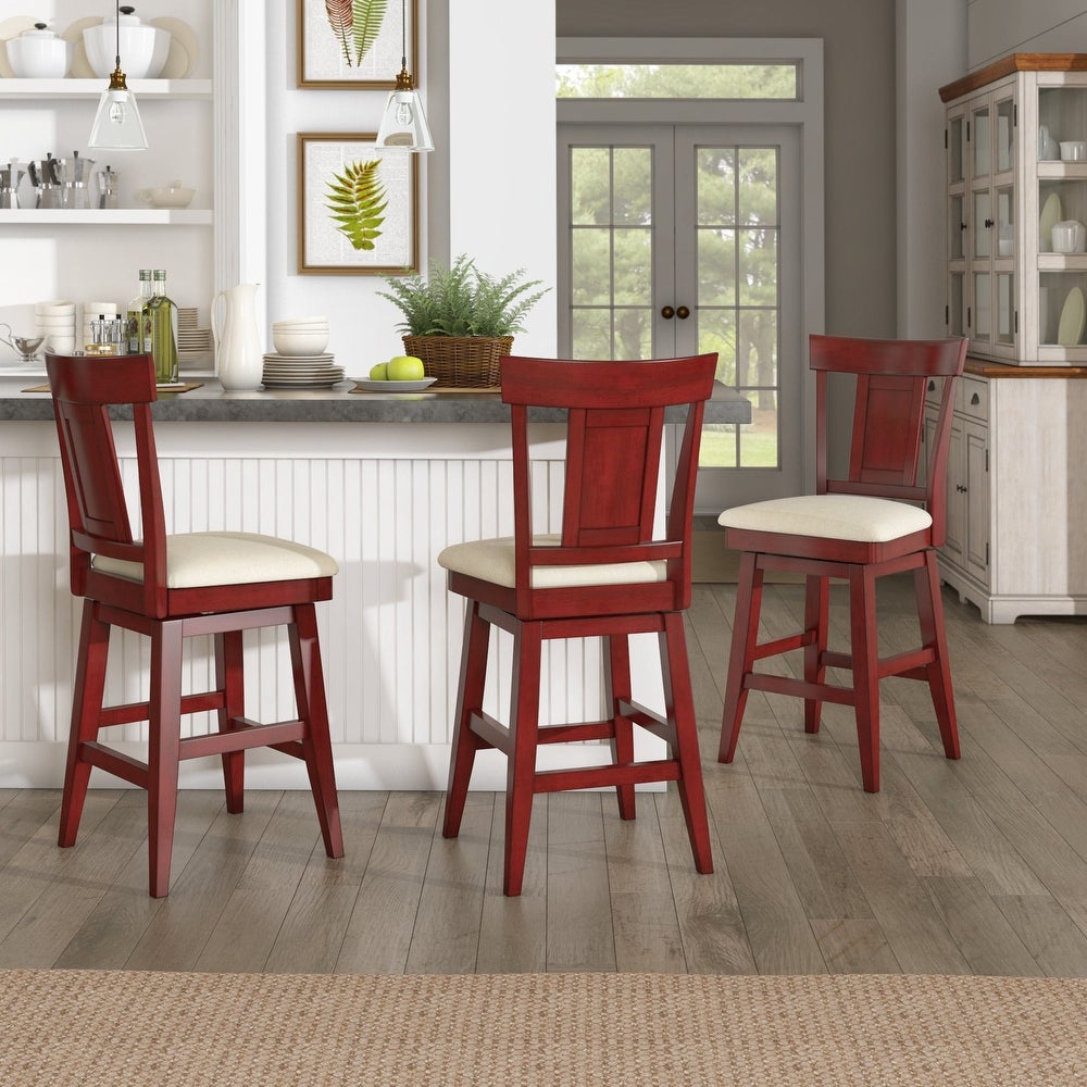 Add stunning vintage inspired seating to your counter height table or bar with the iNSPIRE Q Panel Back Wood Swivel Chair by iNSPIRE Q Classic. The classic panel back adds a sense of charm to this design while the linen upholstered seat cushion adds comfort. The swivel feature is perfect for casual dining and ease of conversation.