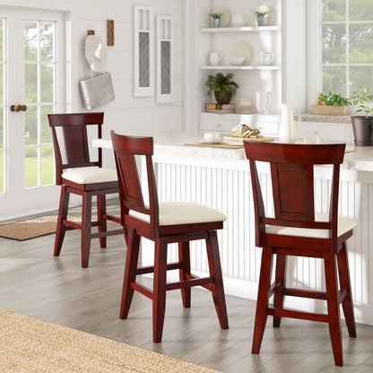 Panel Back Counter Height Wood Swivel Chair - Antique Berry Finish
