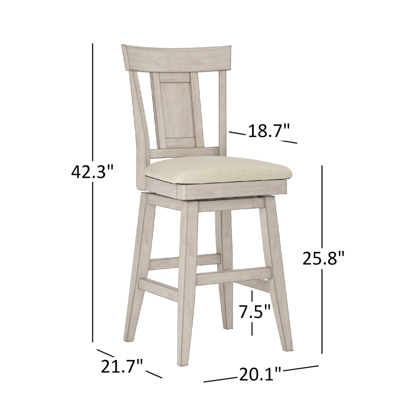Add stunning vintage inspired seating to your counter height table or bar with the iNSPIRE Q Counter Height Swivel Chairs by iNSPIRE Q Classic. The classic panel back adds a sense of charm to this design while the linen upholstered seat cushion adds comfort. The swivel feature is perfect for casual dining and ease of conversation.