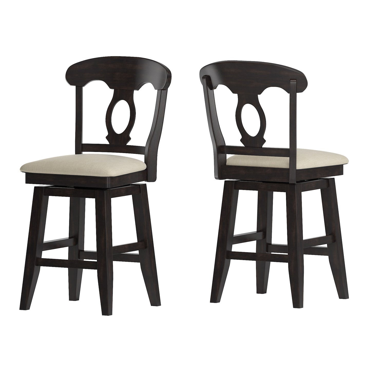 Napoleon Back Counter Height Wood Swivel Chair - Antique Black Finish