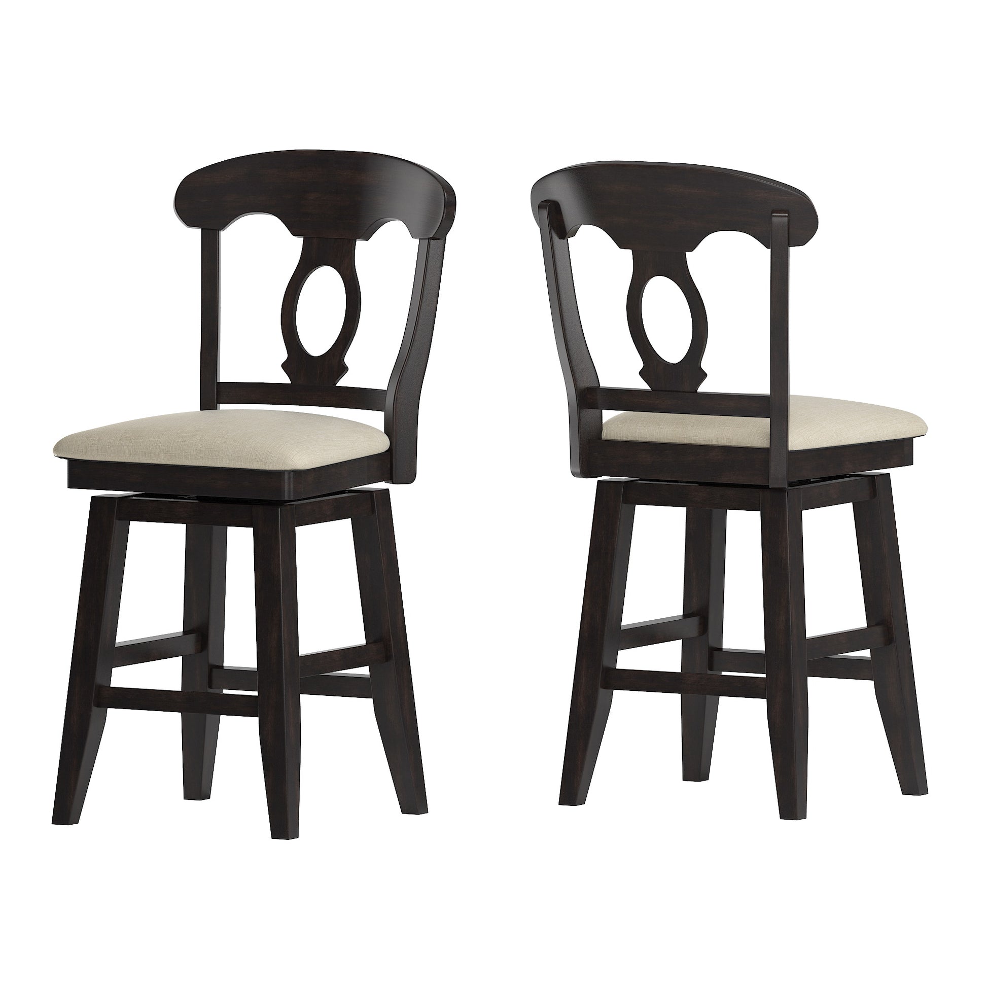 Add stunning vintage inspired seating to your counter height table or bar with the iNSPIRE Q Swivel Chairs by iNSPIRE Q Classic. The decorative Napoleon back adds a sense of charm to this design while the linen upholstered seat cushion adds comfort. The swivel feature is perfect for casual dining and ease of conversation.