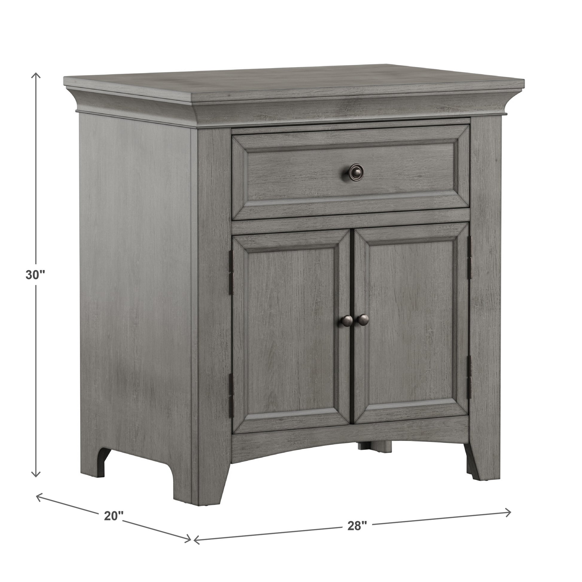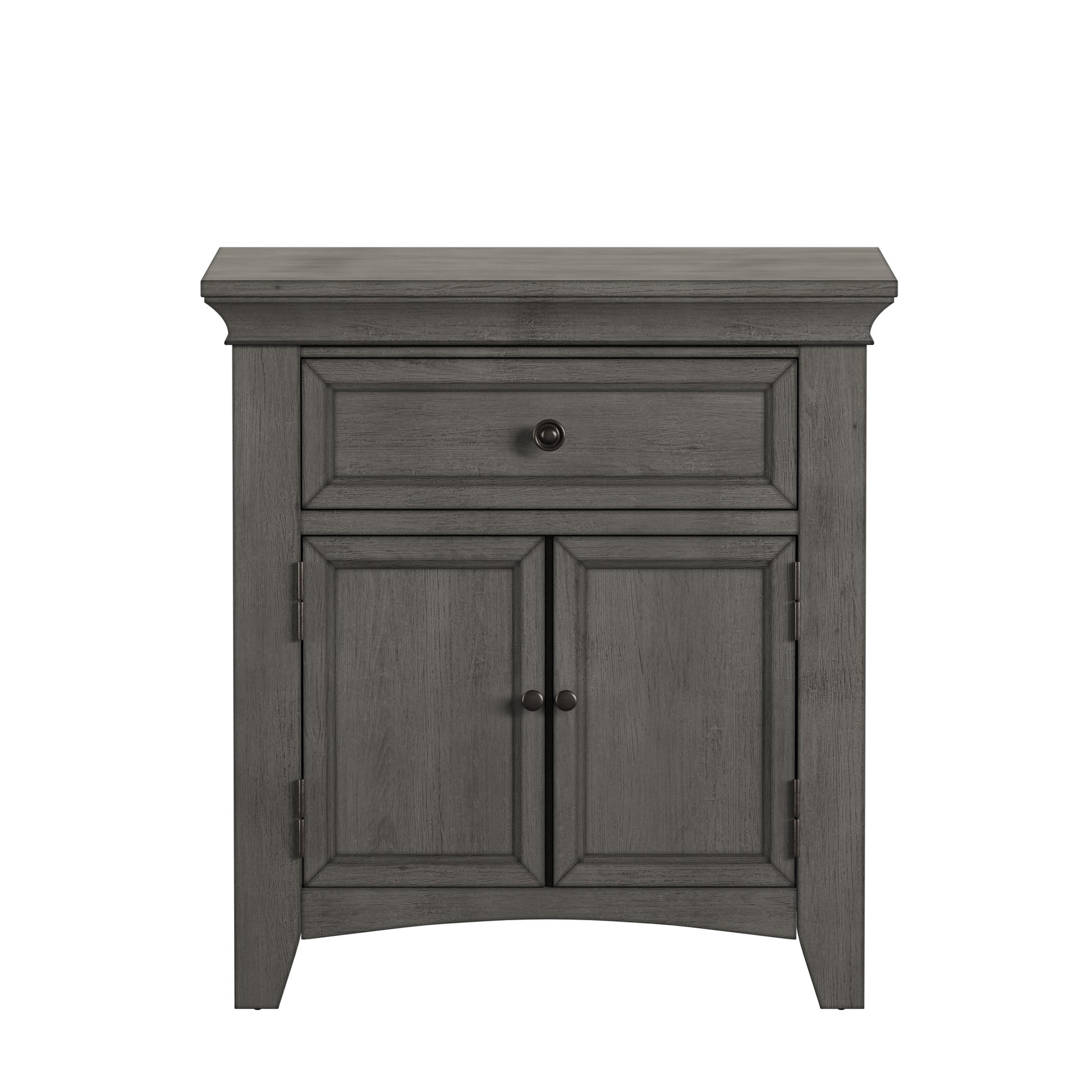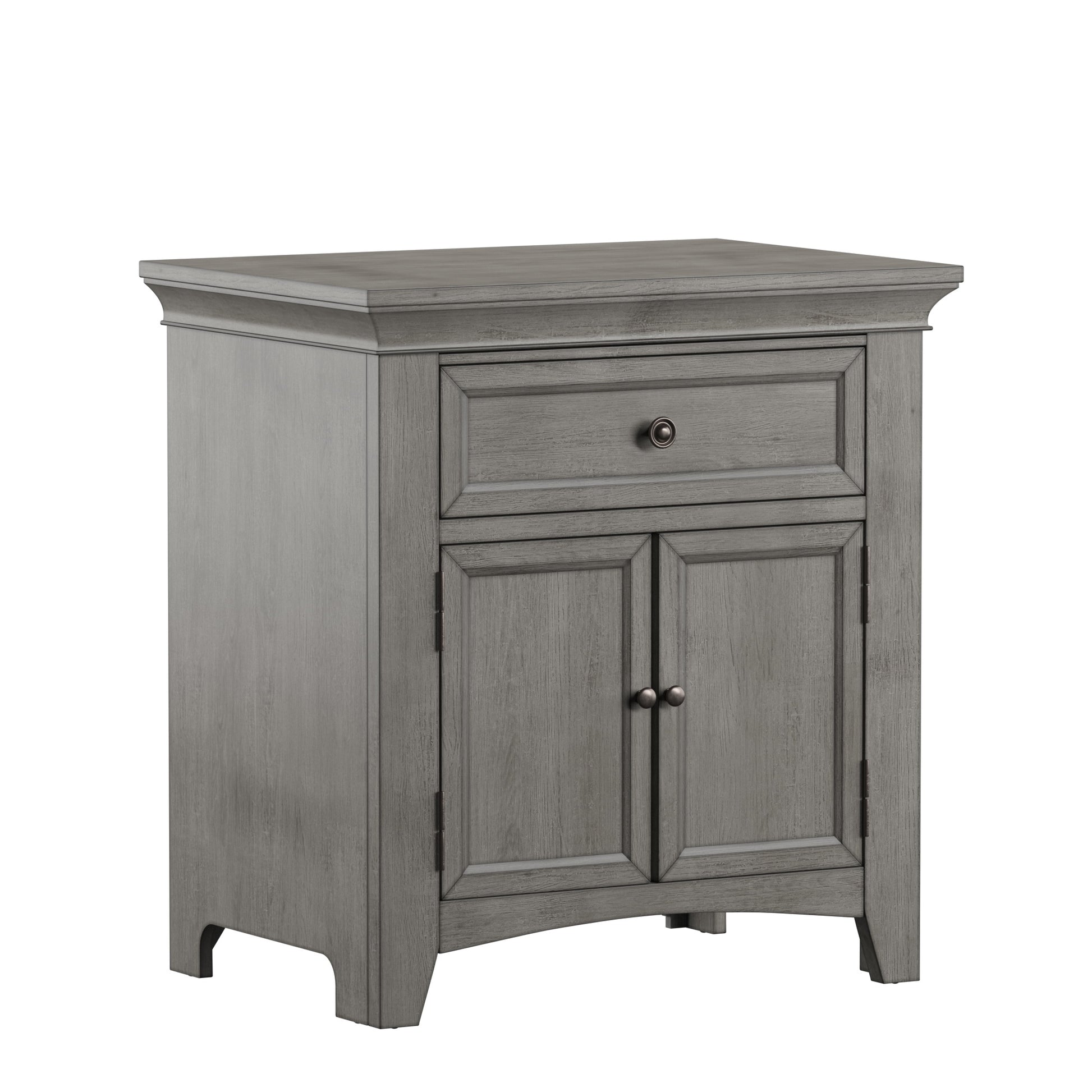 1-Drawer Wood Cupboard Nightstand with Charging Station - Gray
