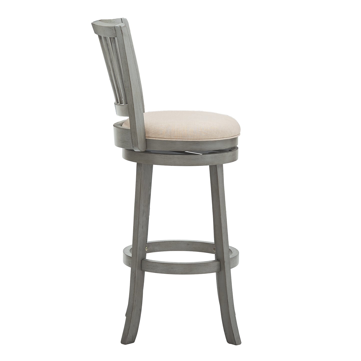 Slat Back Swivel Chair - 29" Bar Haight, Antiqua Gray Finish, Beige Linan