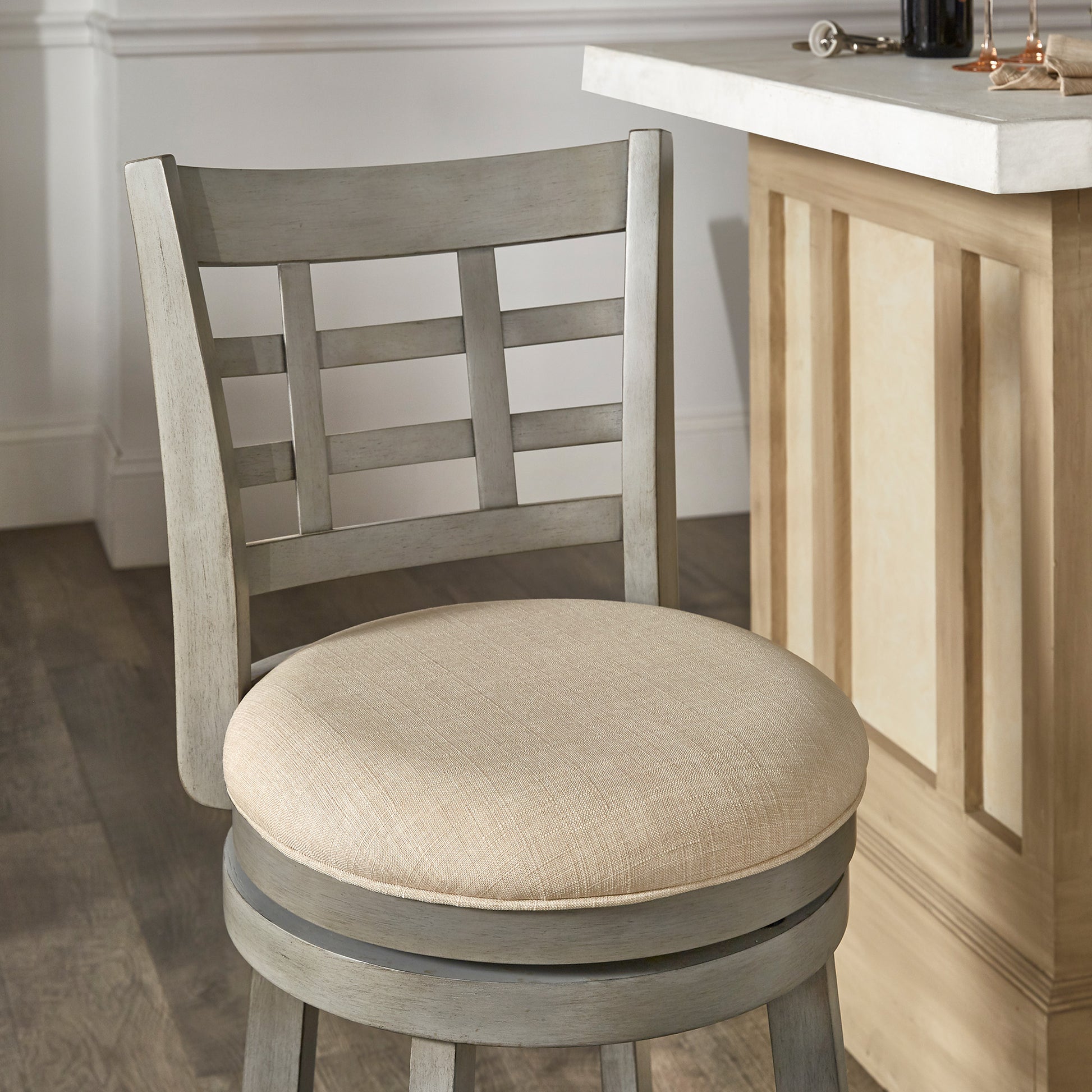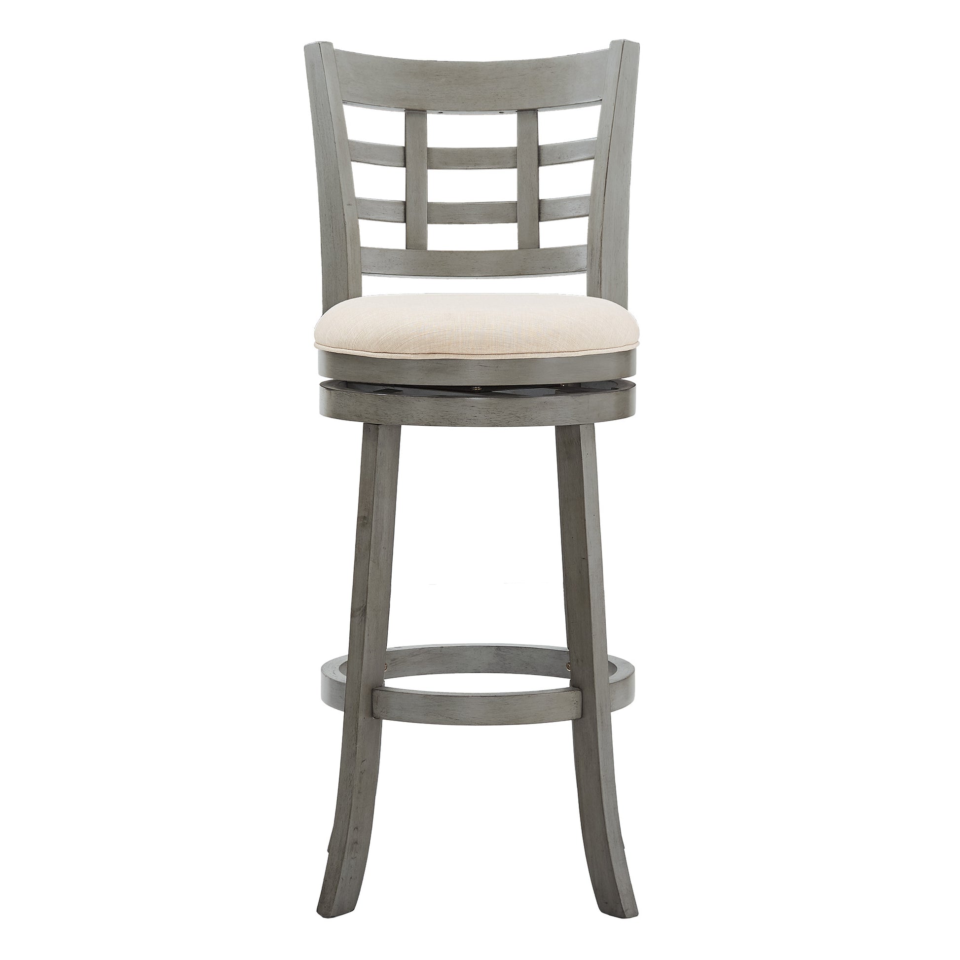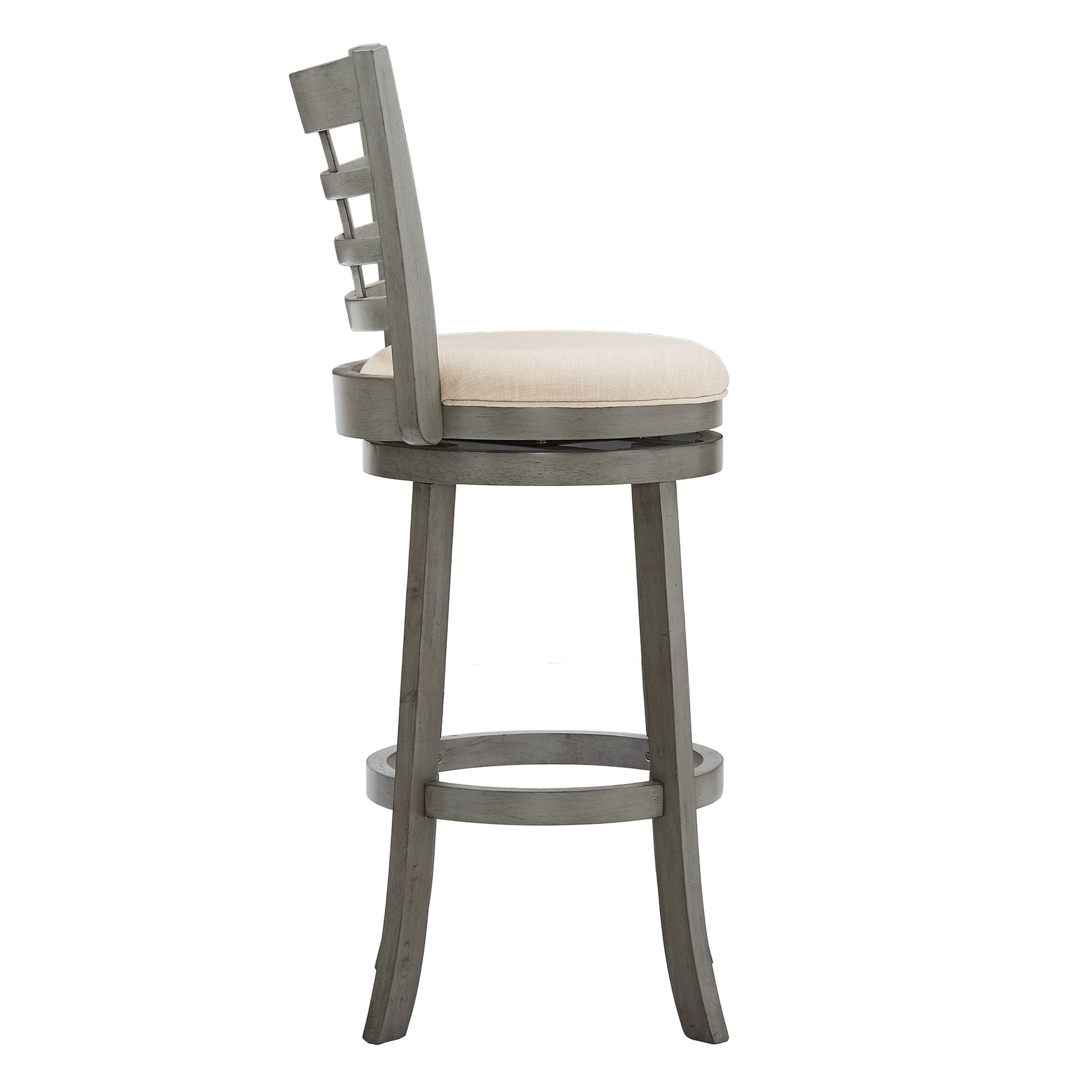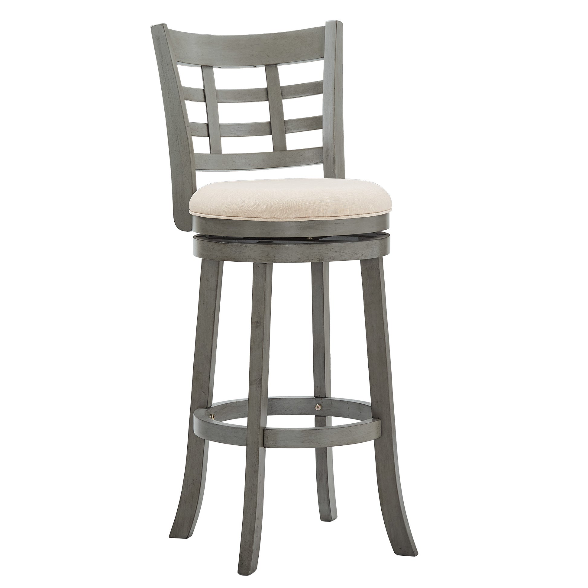 Window Back 29"H Swivel Bar Stool - Antiqua Gray Finish, Beige Linan