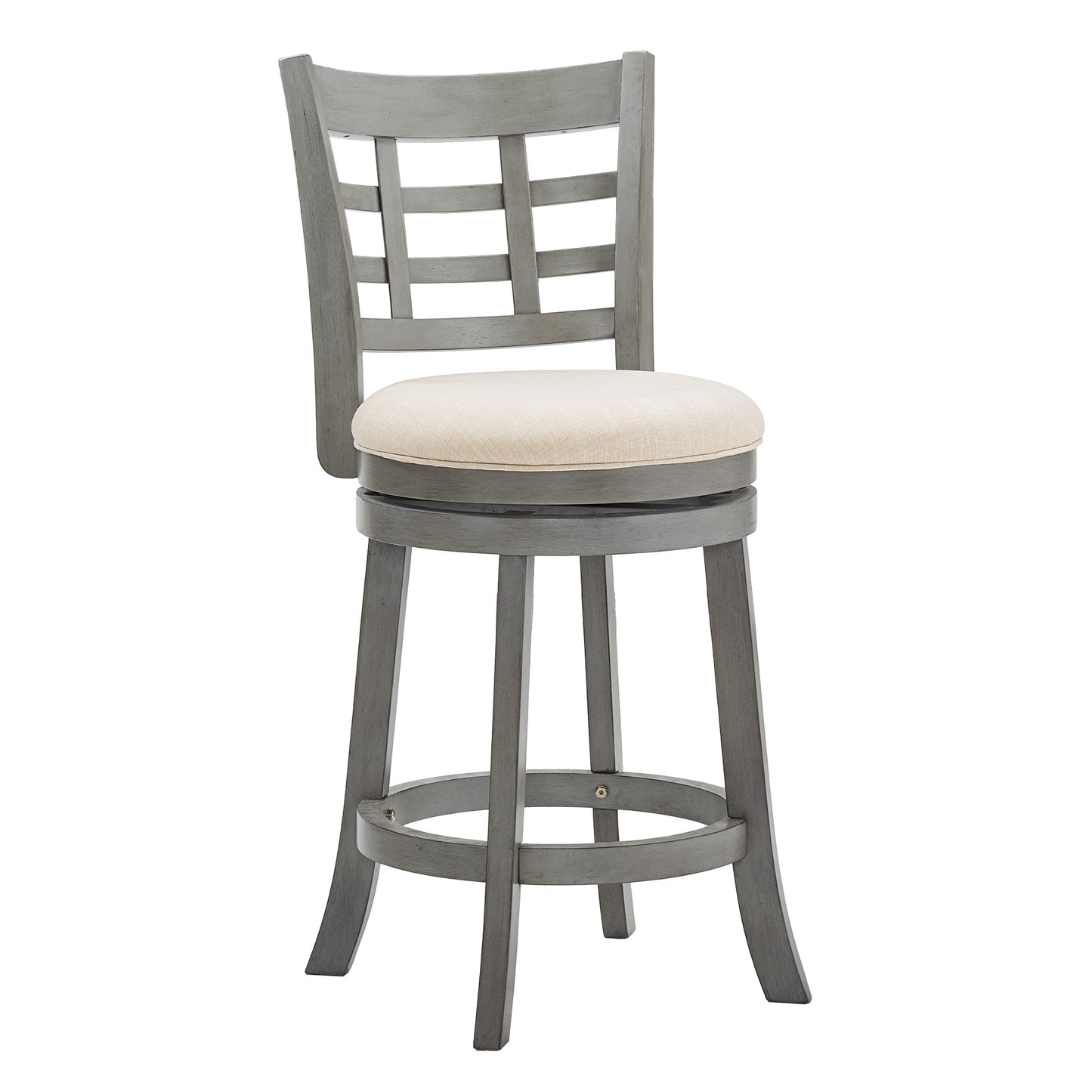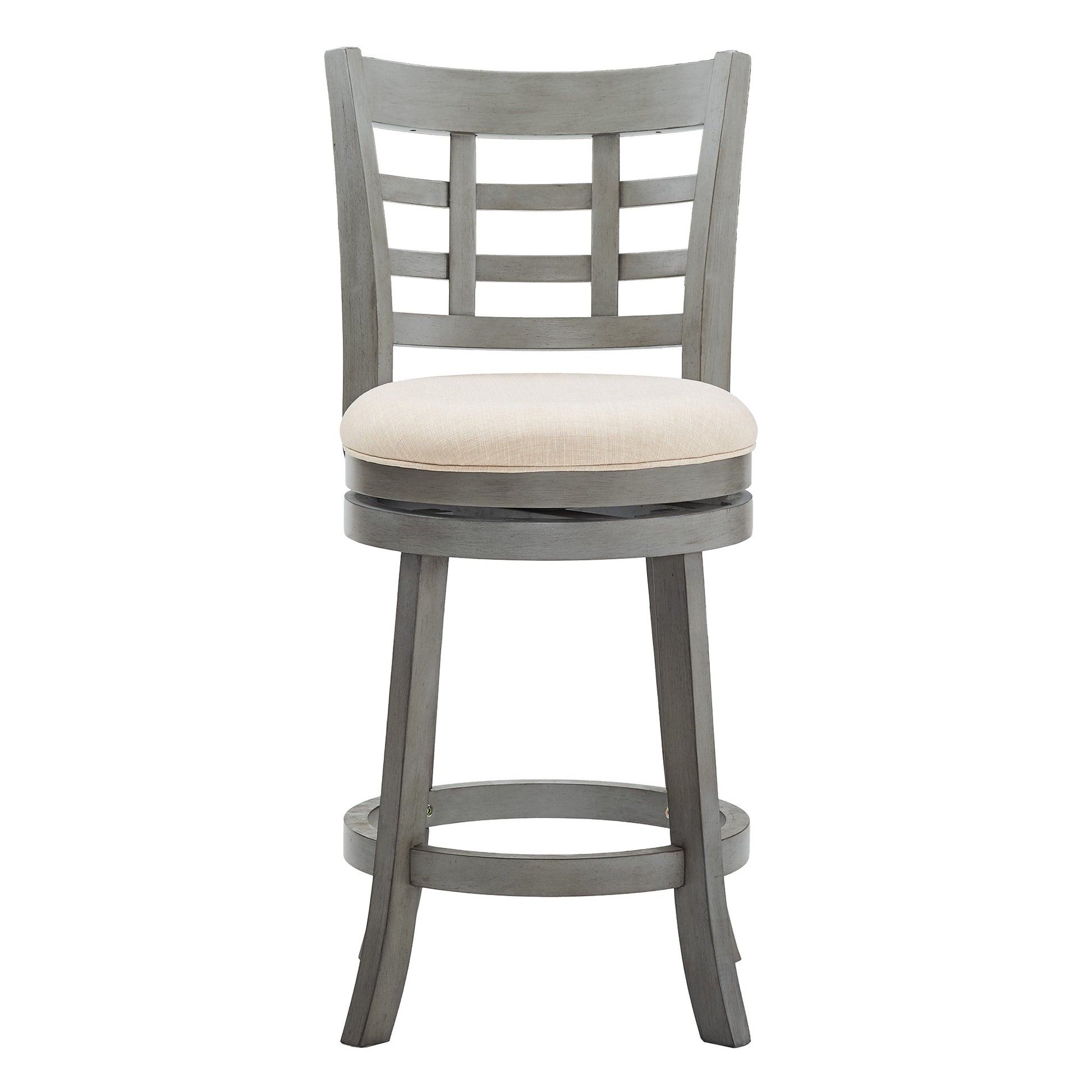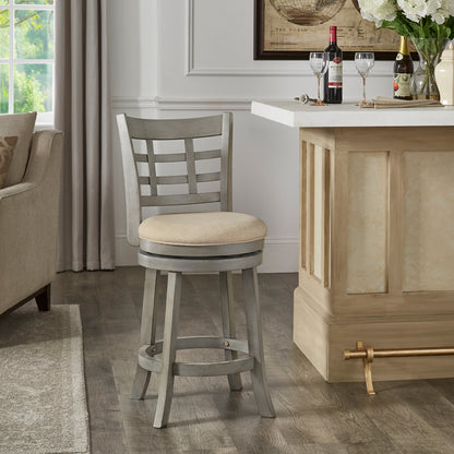 Window Back 24"H Swivel Counter Height Stool - Antiqua Gray Finish, Beige Linan