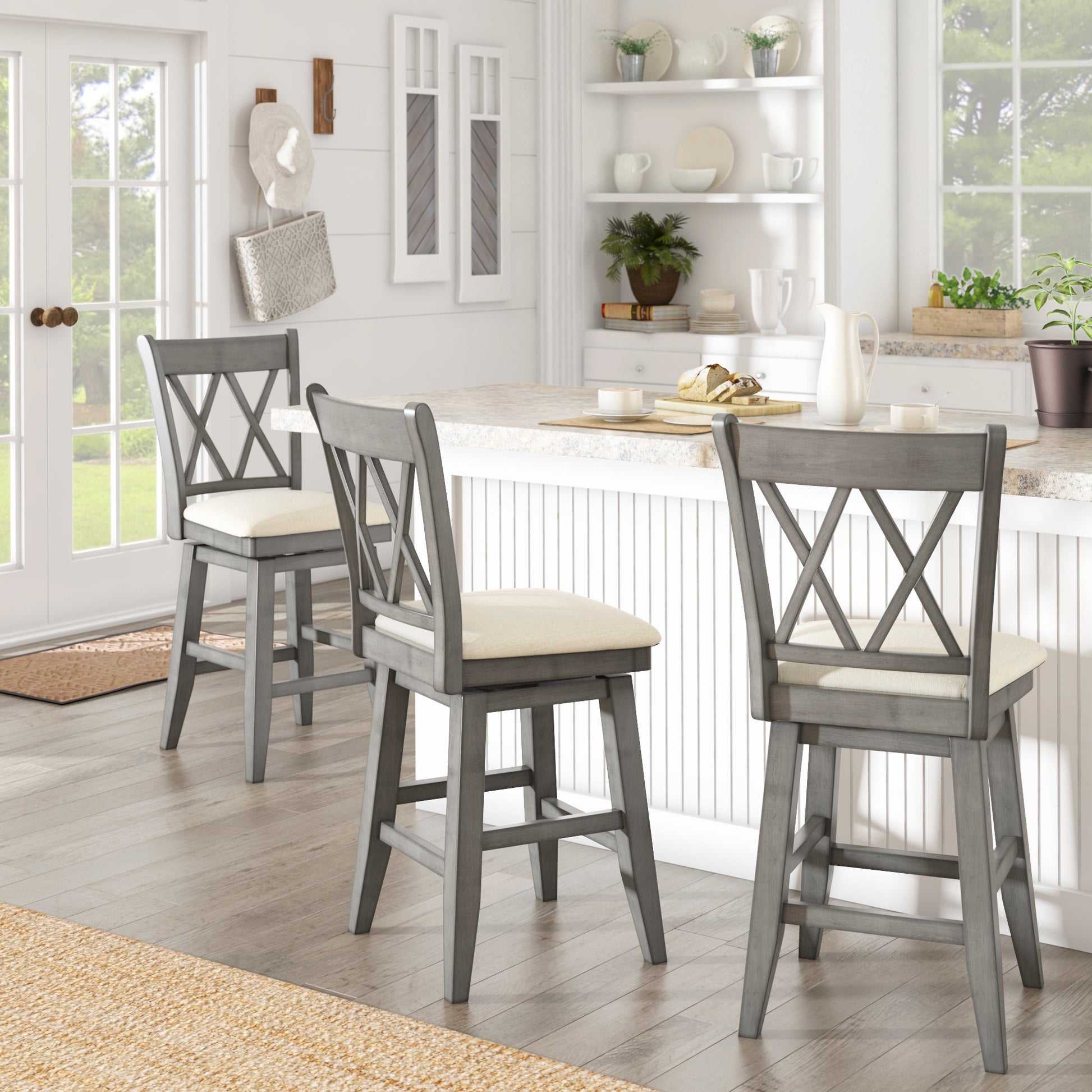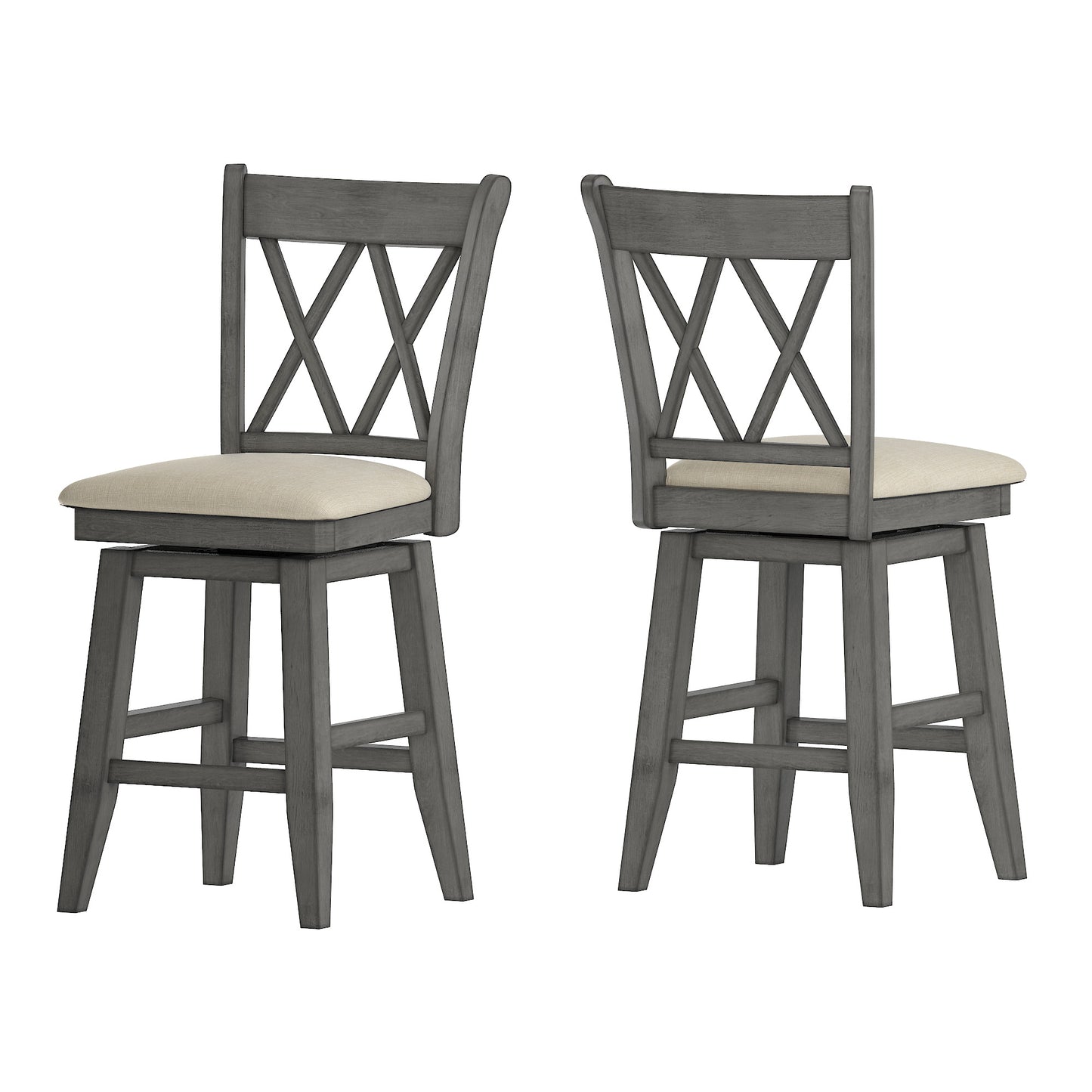 Double X-Back Counter Height Wood Swivel Chair - Antique Gray