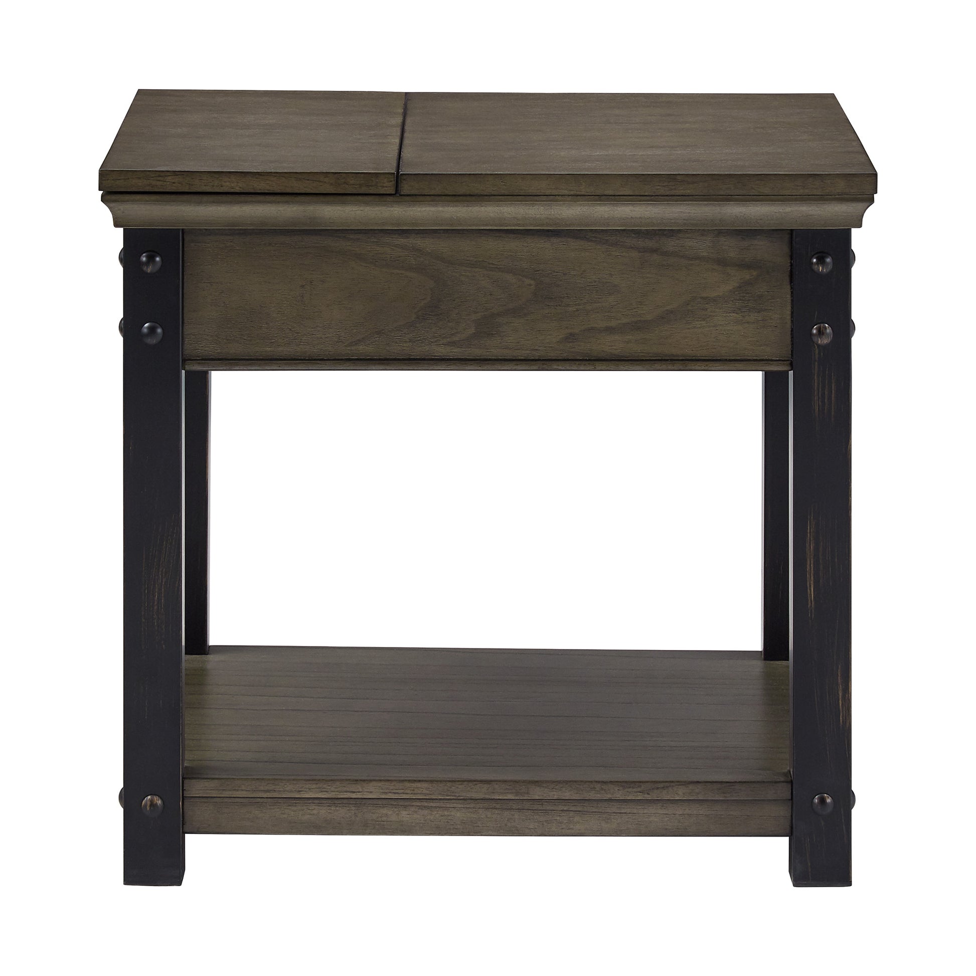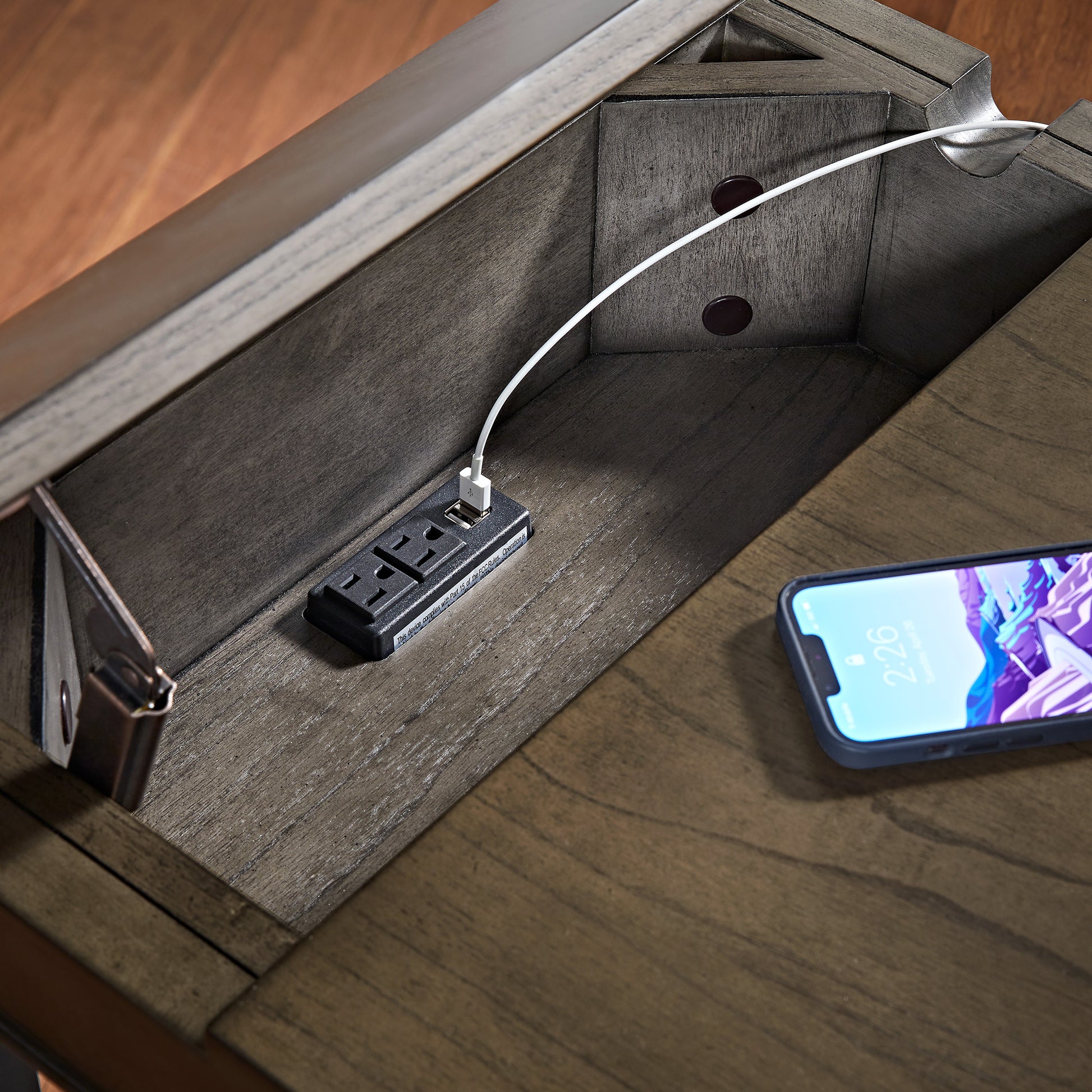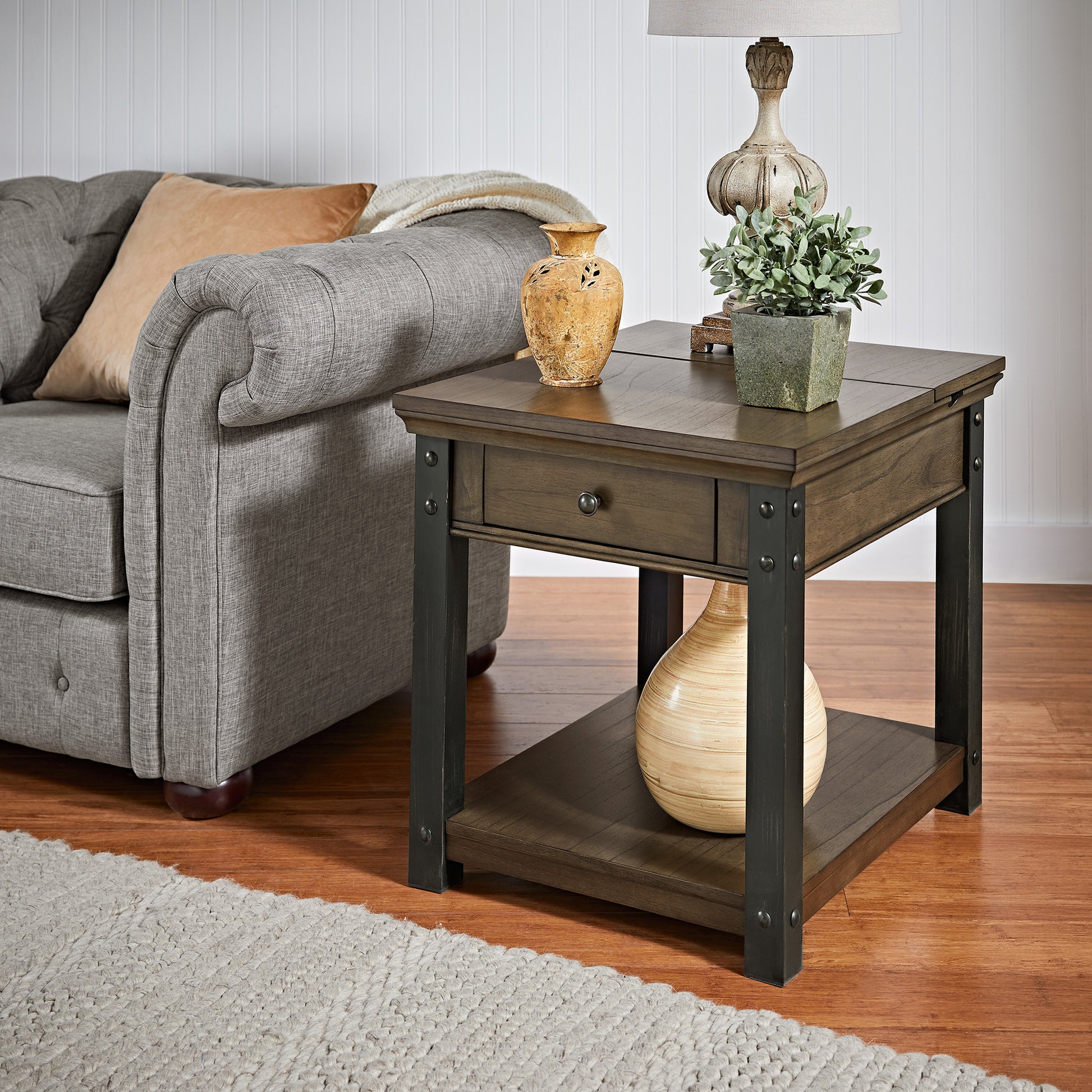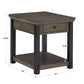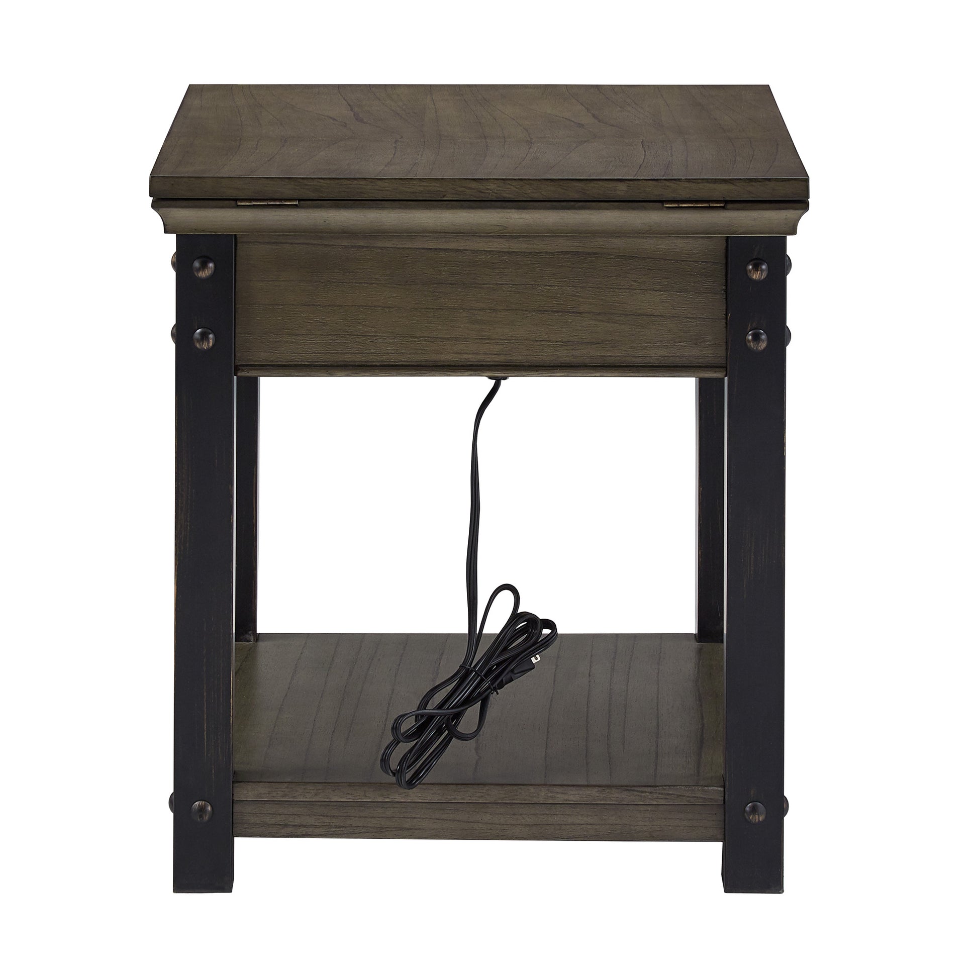 Wood Finish End Table with Built-In Outlets - Antique Gray