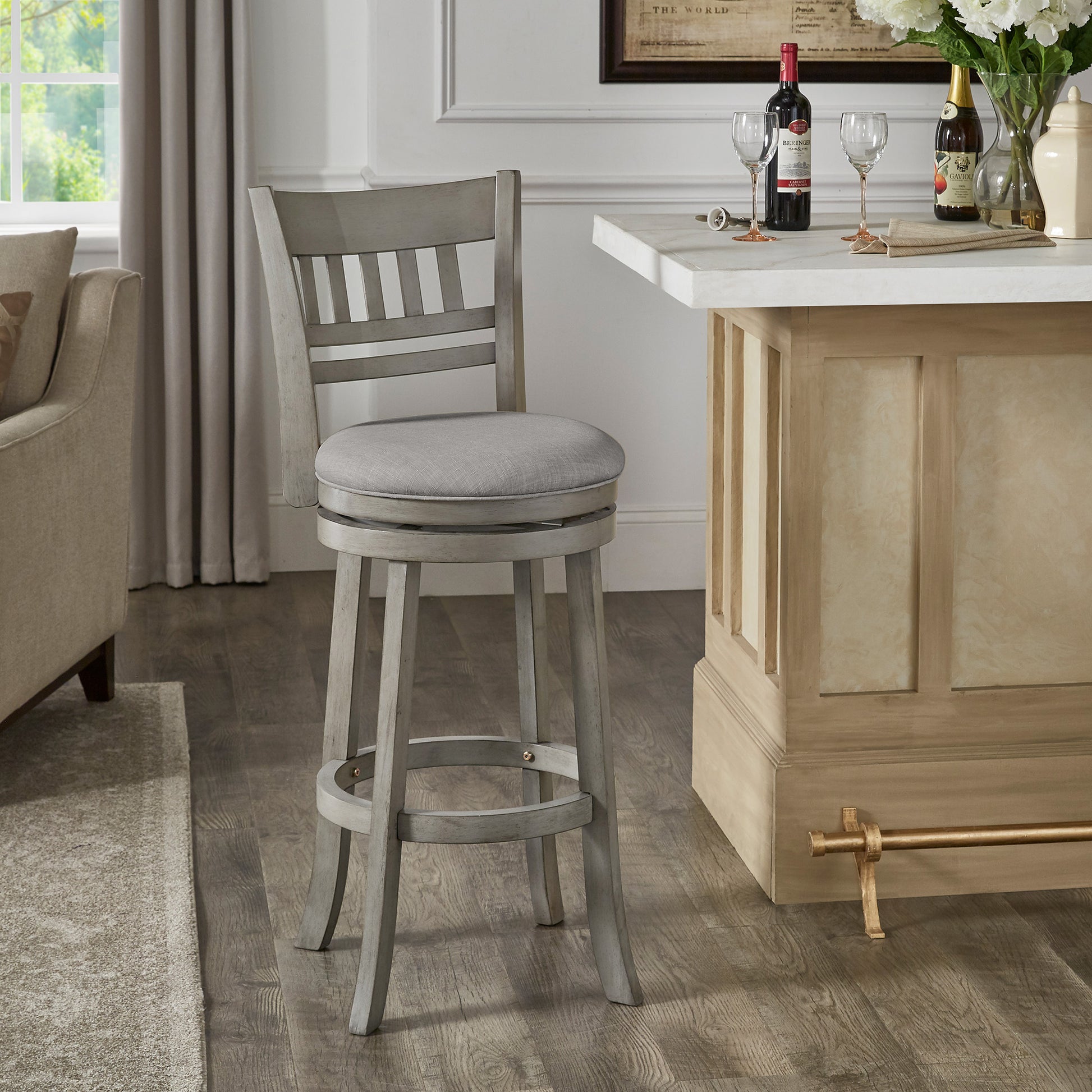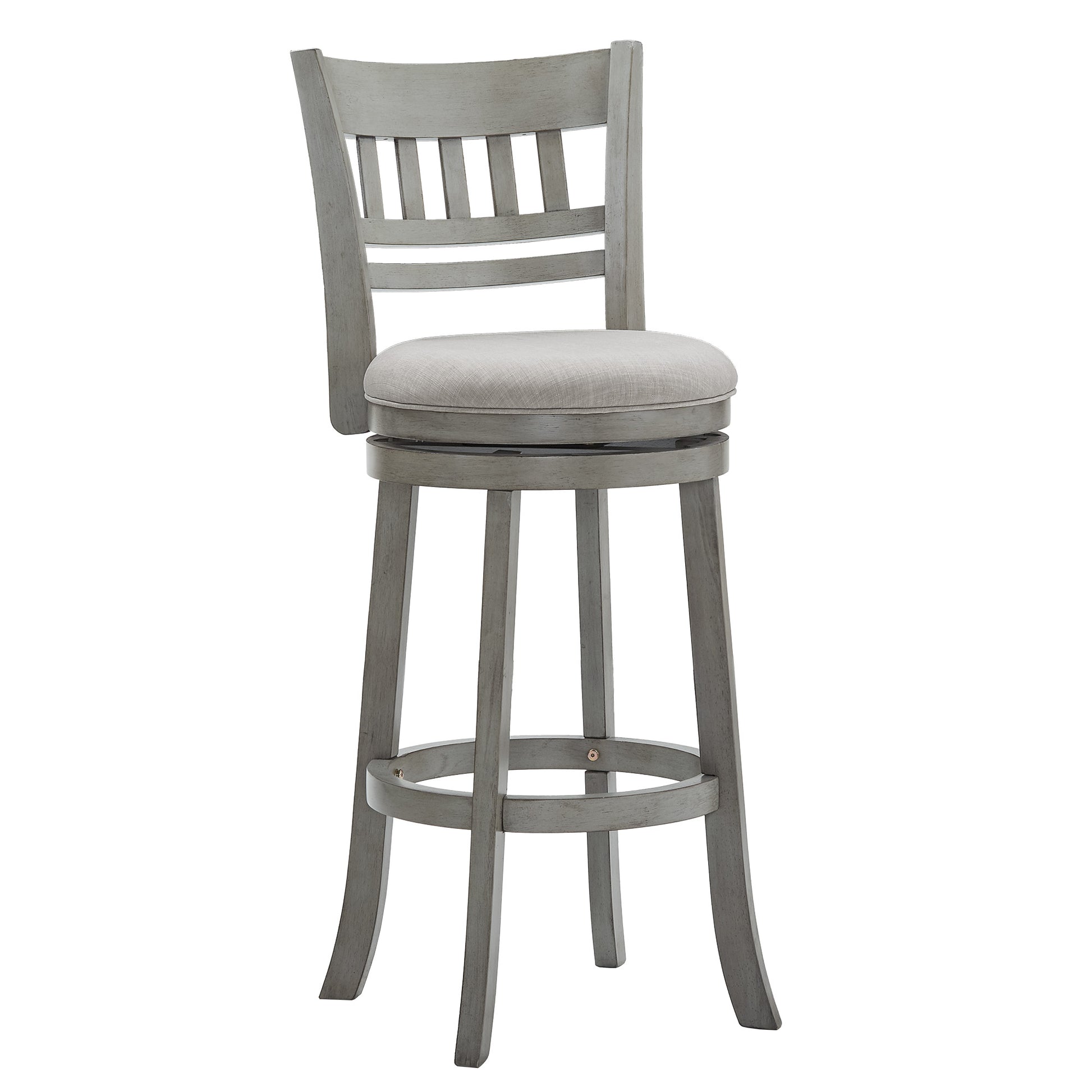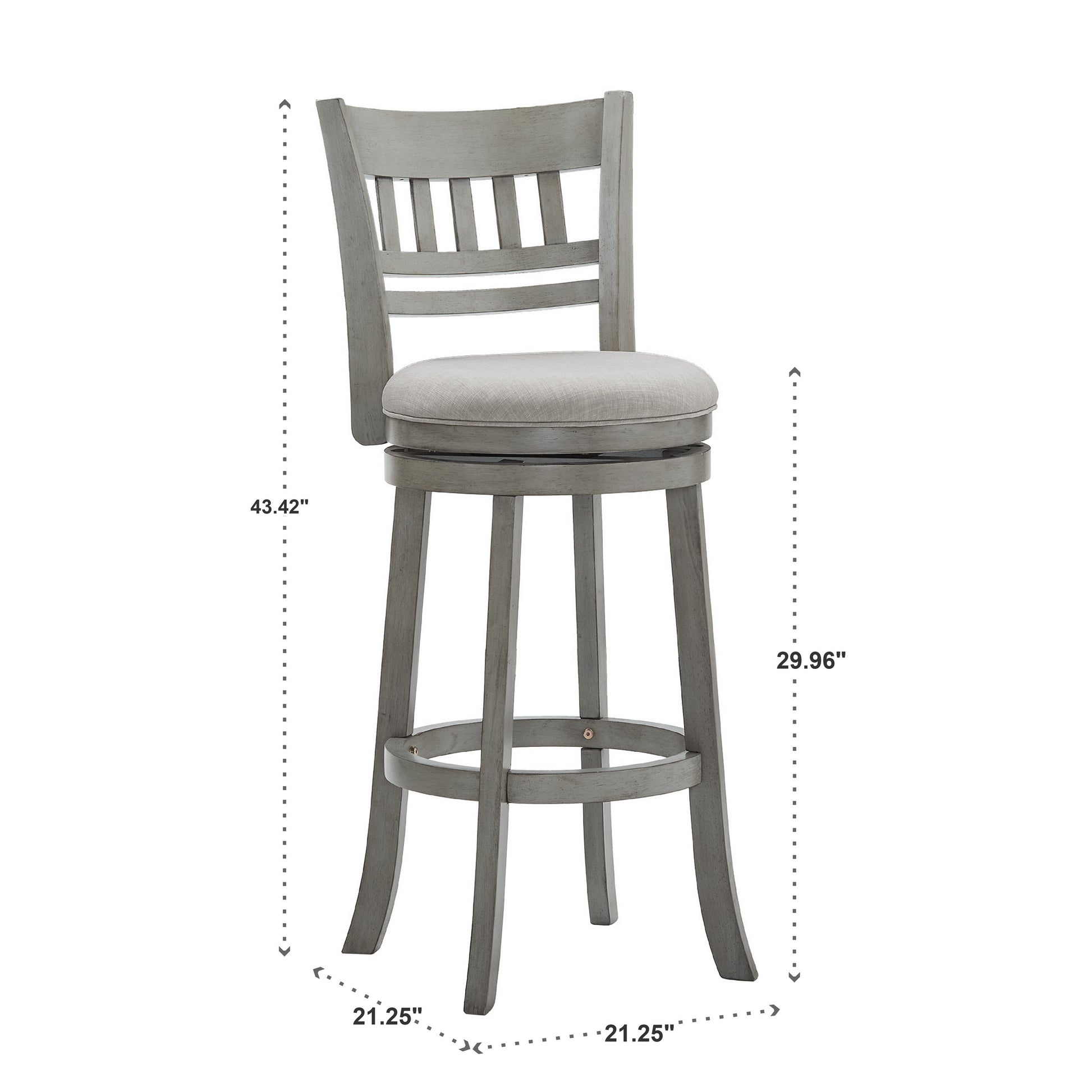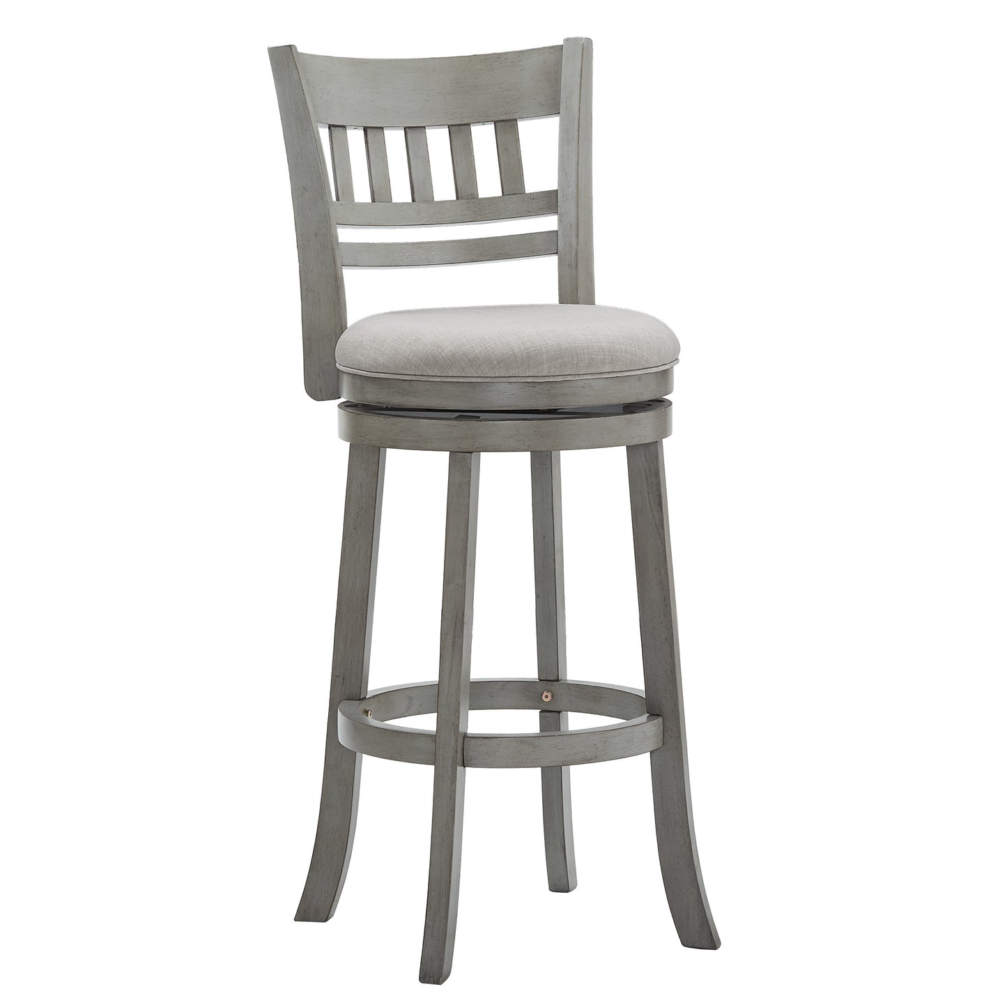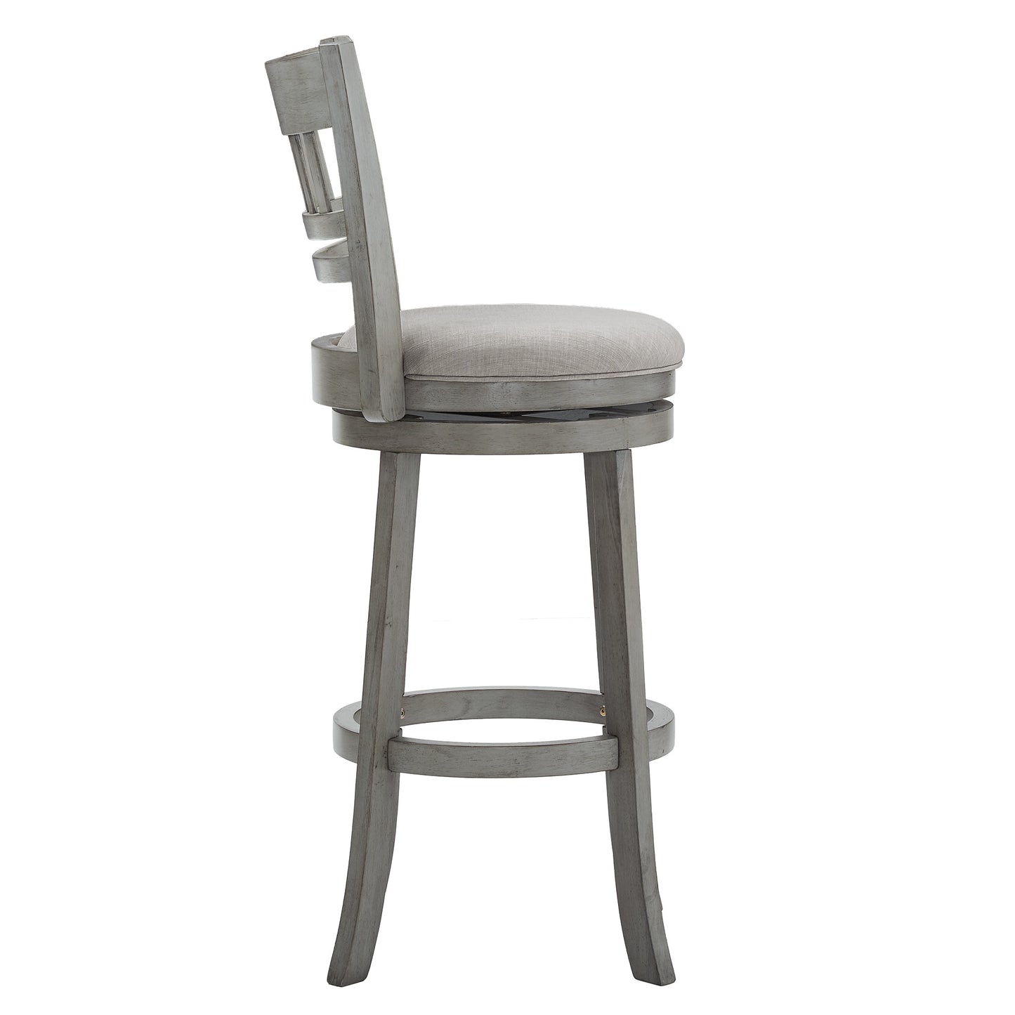 Lattice Back 29"H Swivel Bar Stool - Antiqua Gray Finish, Gray Linan