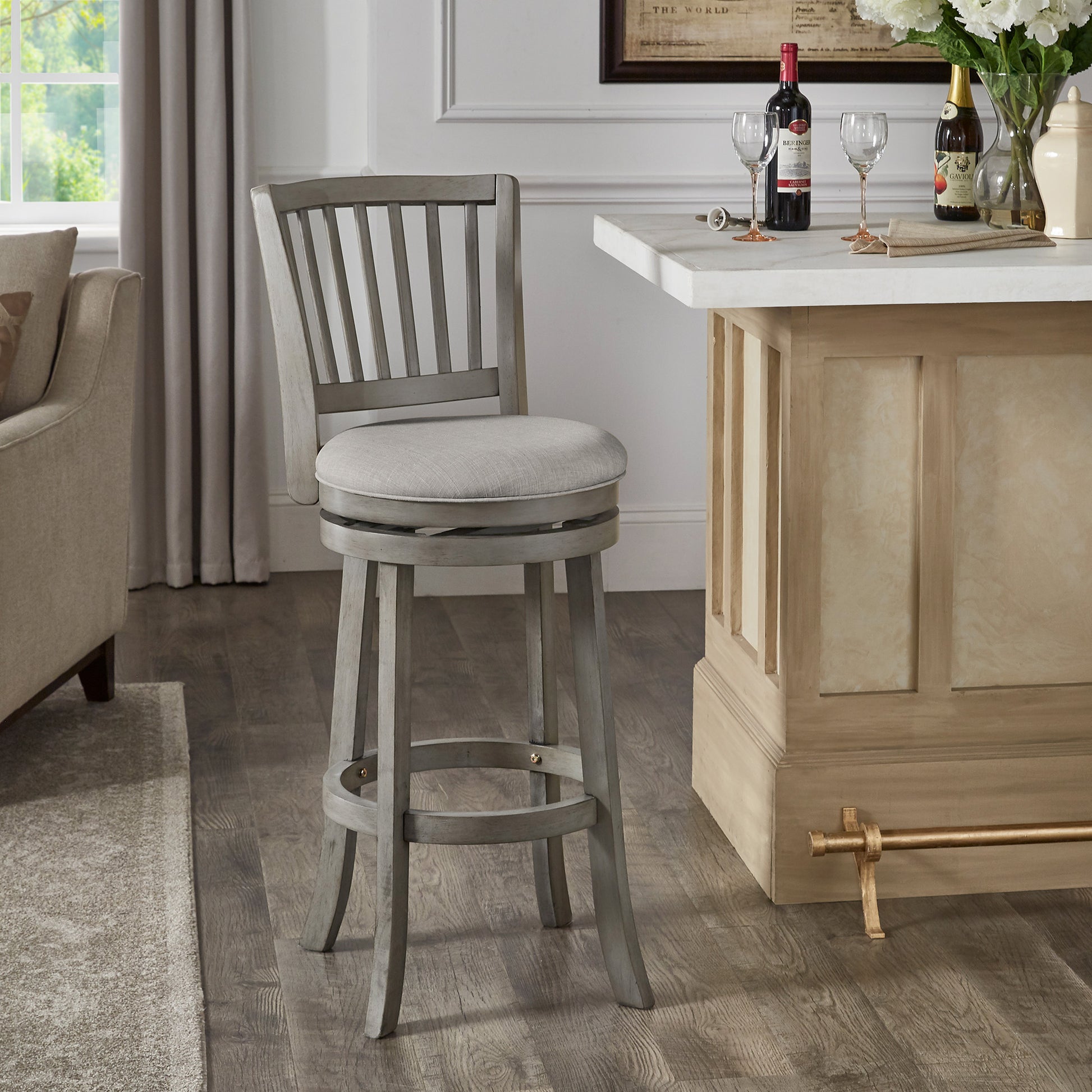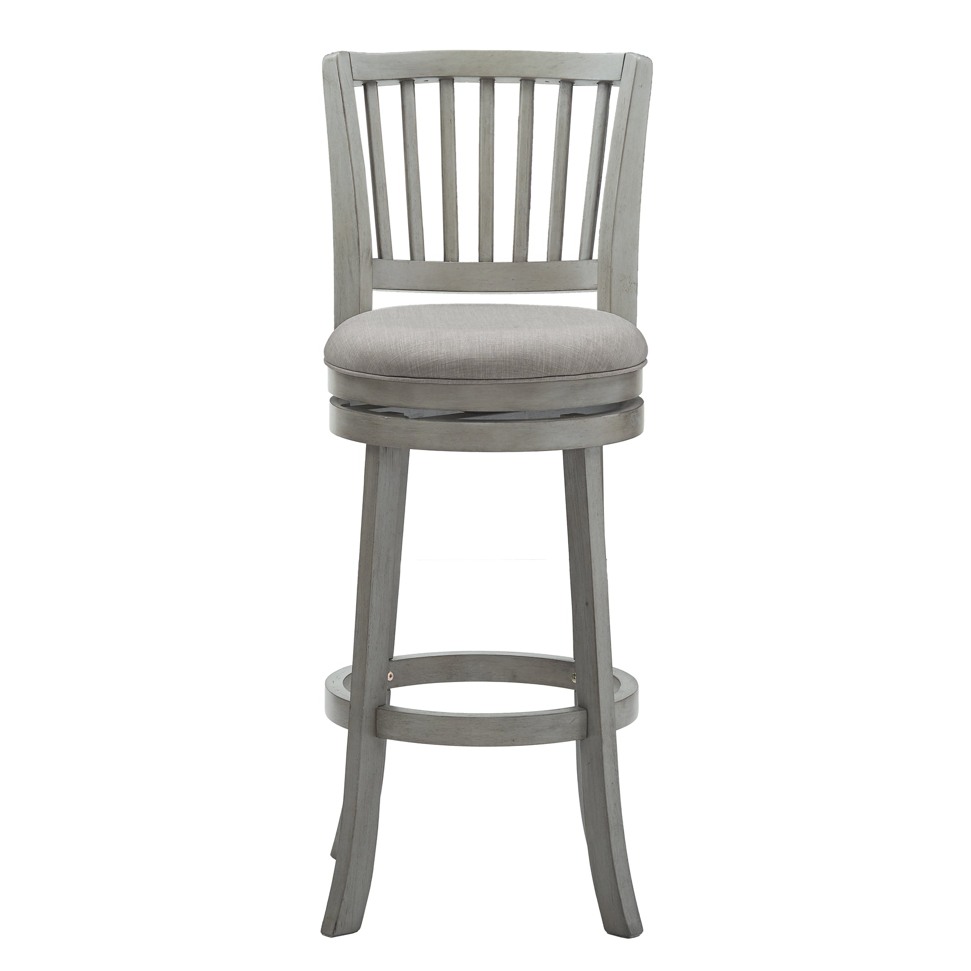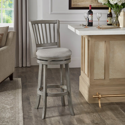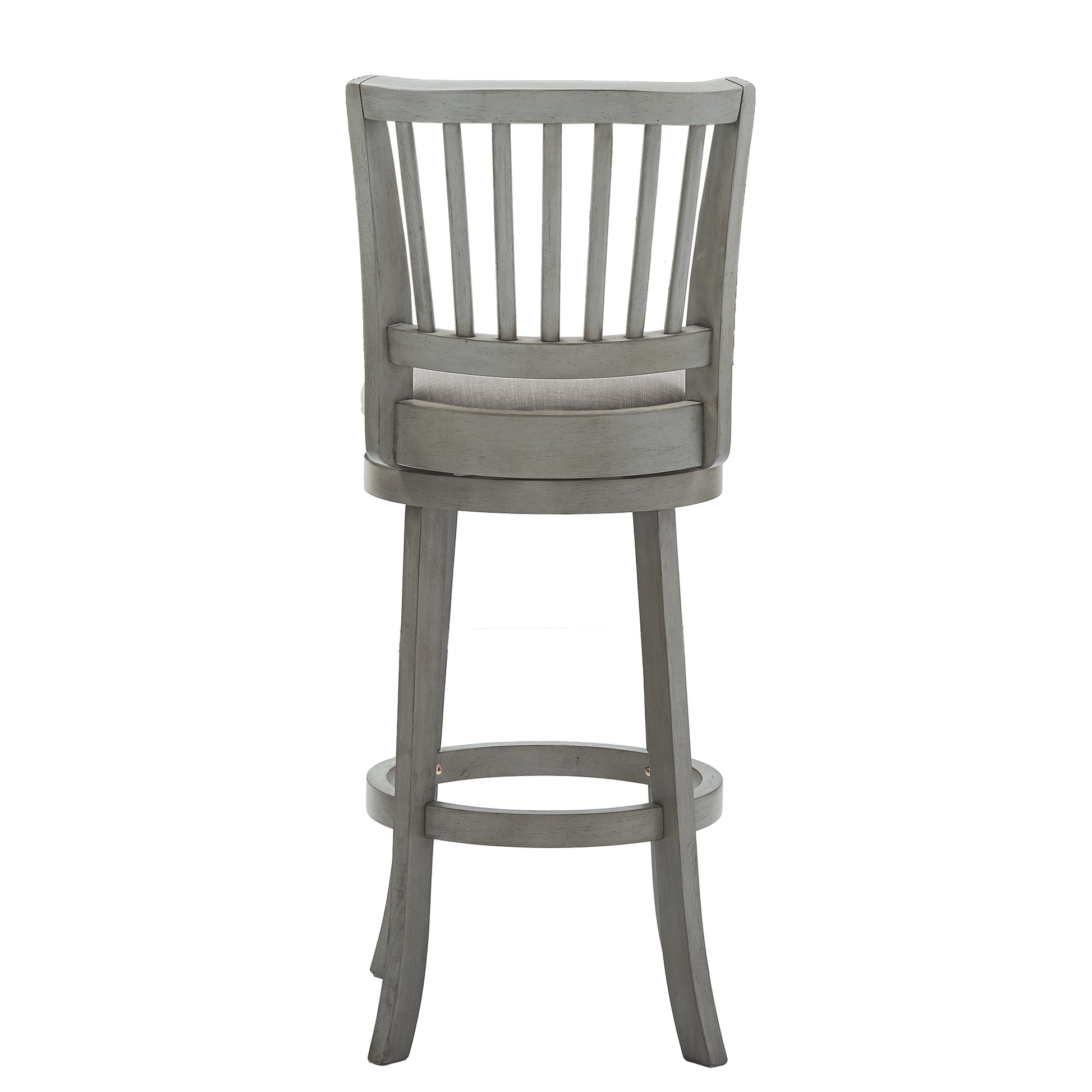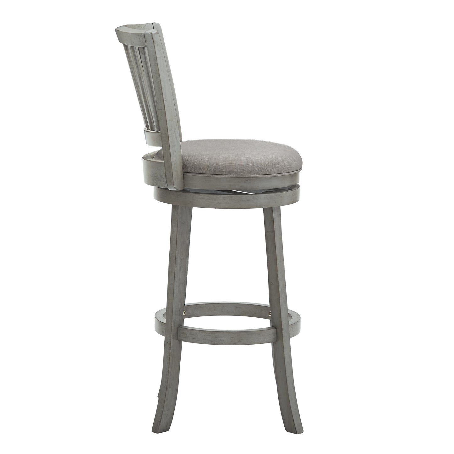 Slat Back Swivel Chair - 29" Bar Height, Antique Gray Finish, Gray Linen