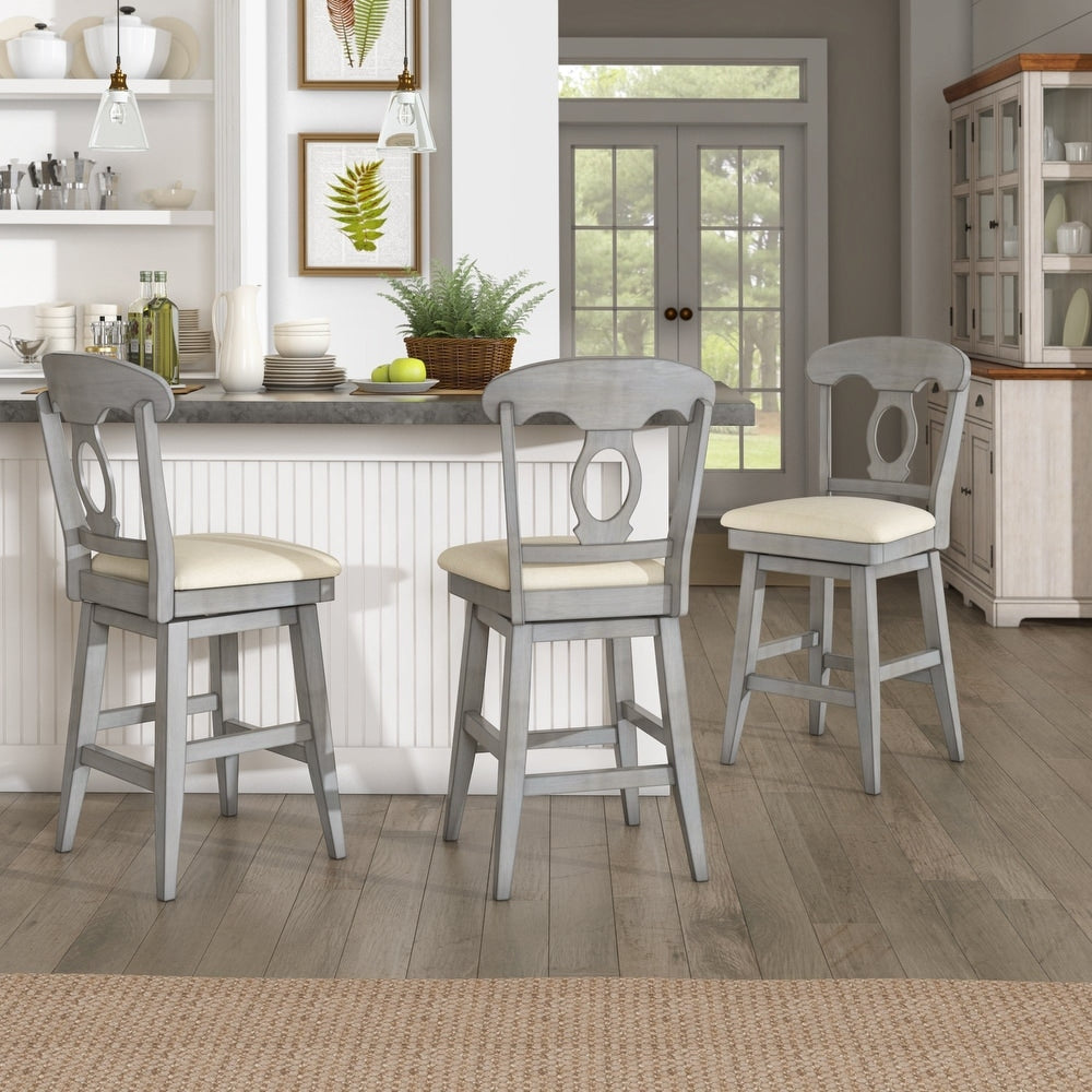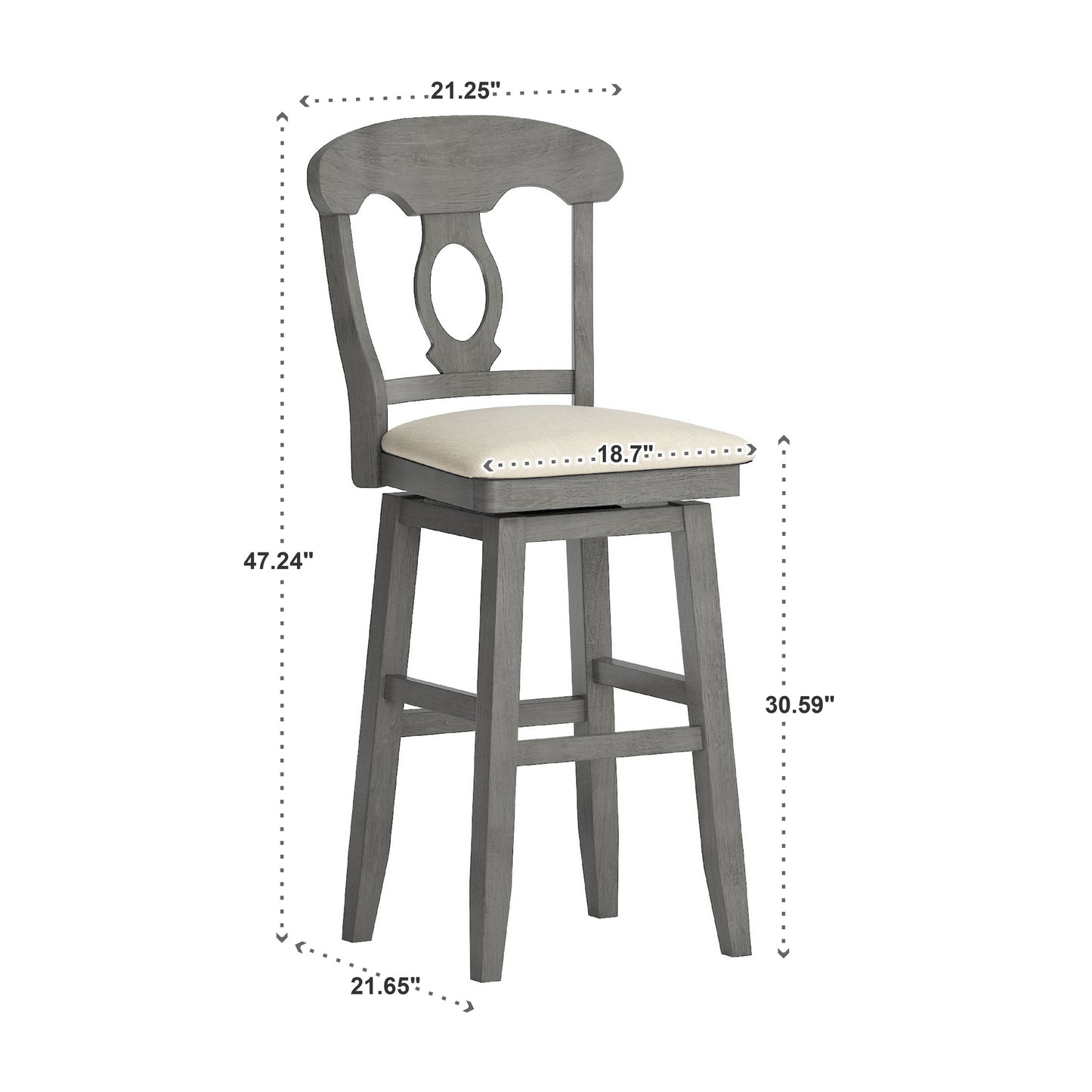 Napoleon Back Wood Swivel Bar Stool - Antiqua Gray Finish