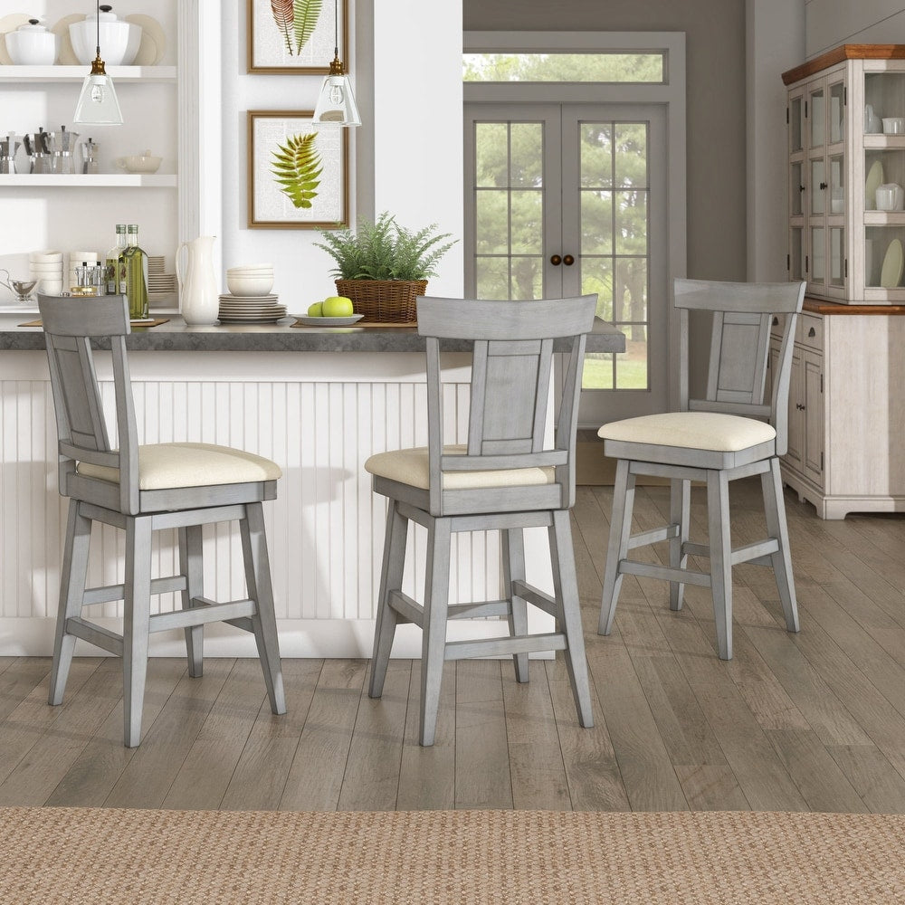 Panel Back Wood Swivel Bar Stool - Antique Gray Finish