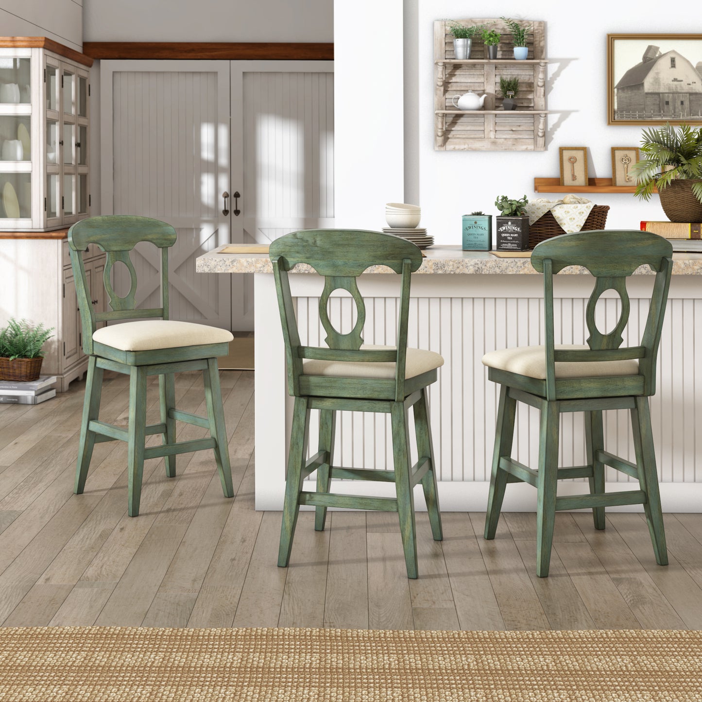 Napoleon Back Counter Height Wood Swivel Chair - Antique Sage Finish