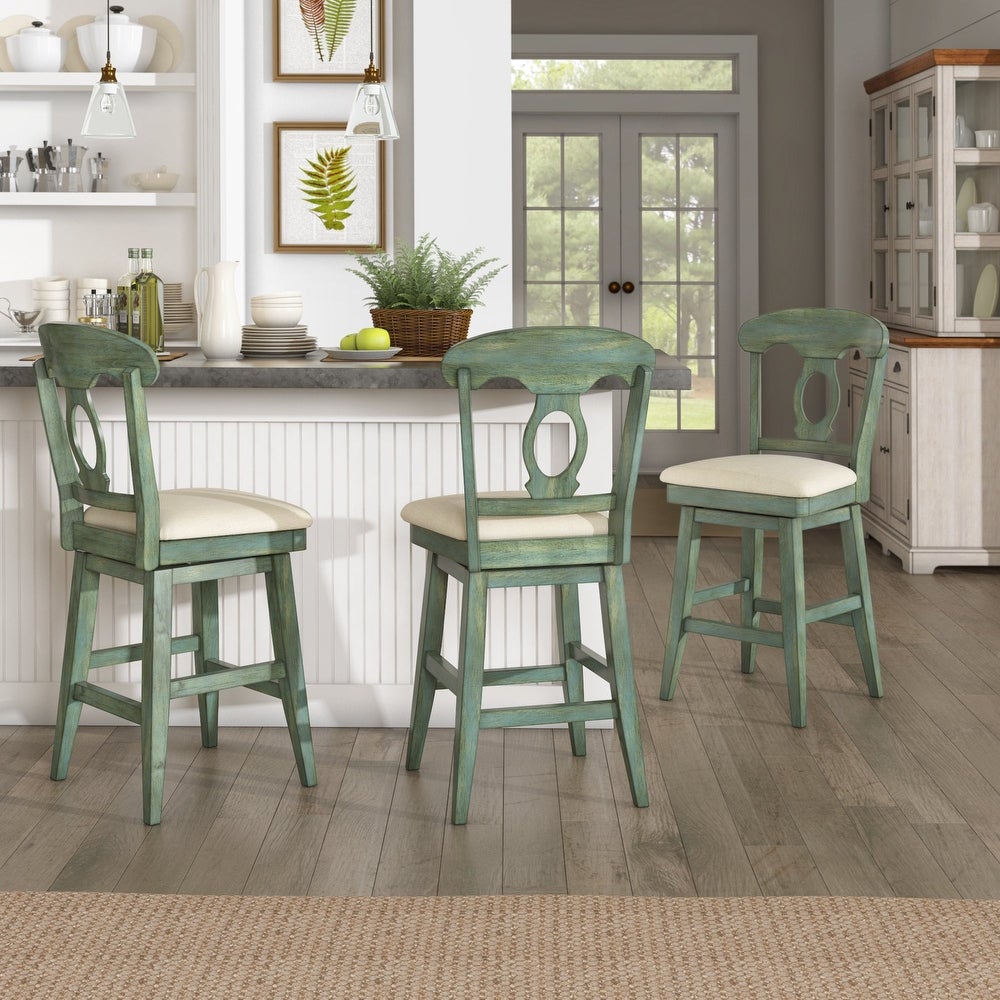 Napoleon Back Wood Swivel Bar Stool - Antique Sage Finish