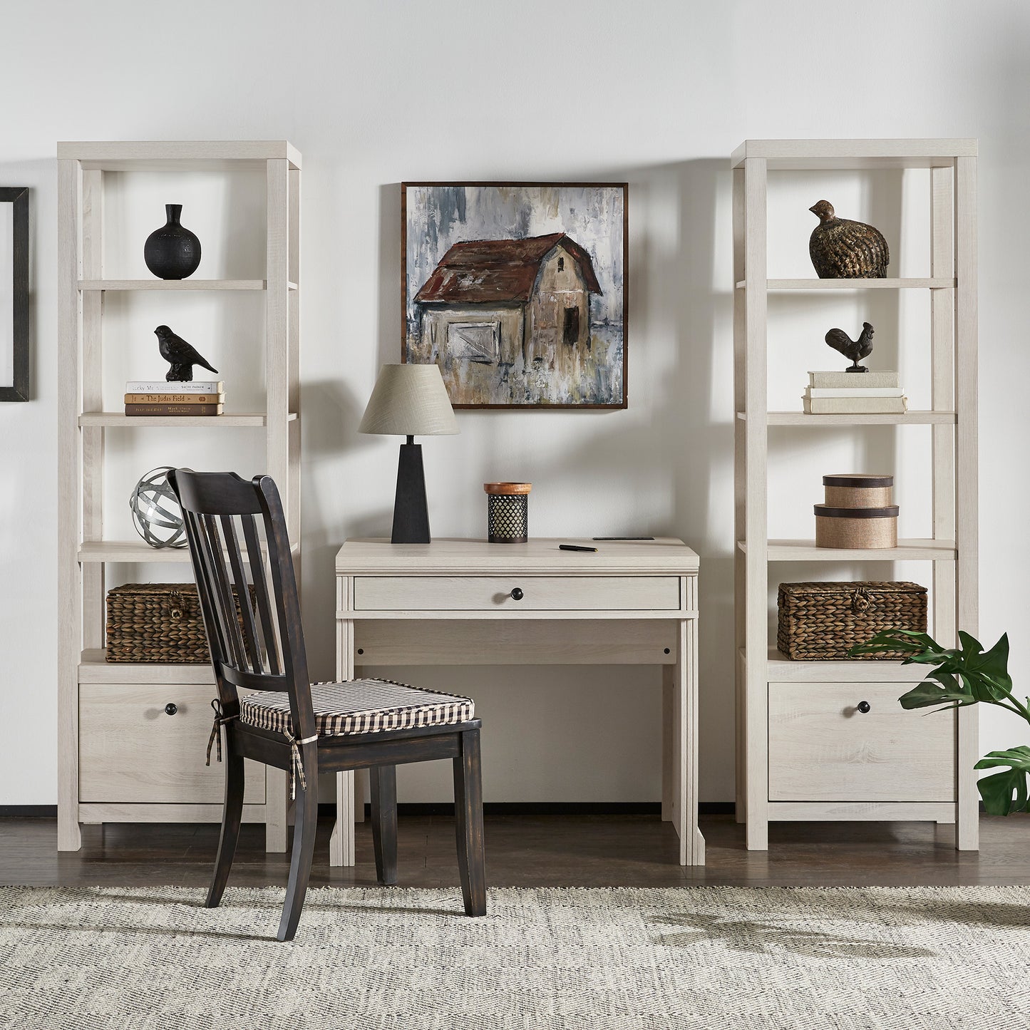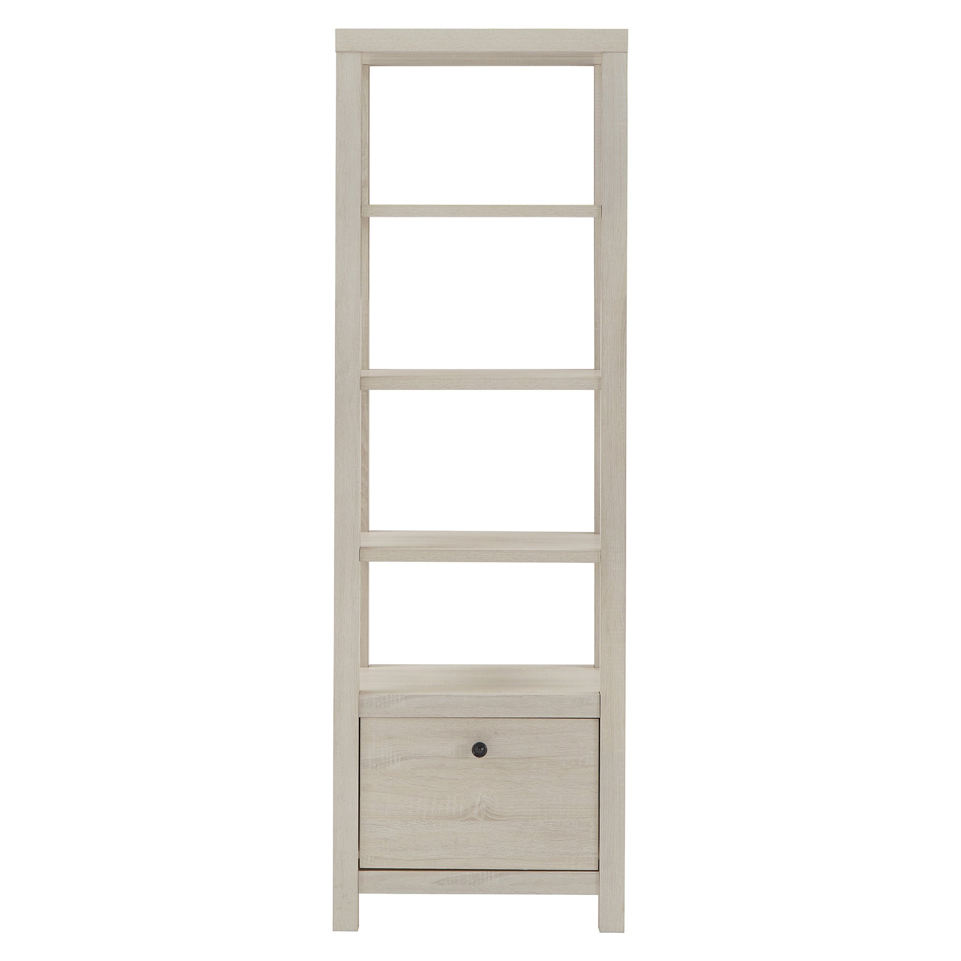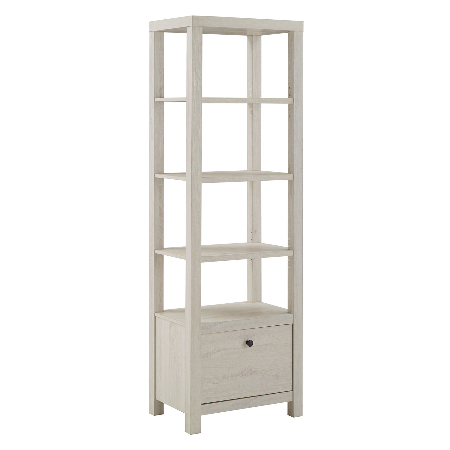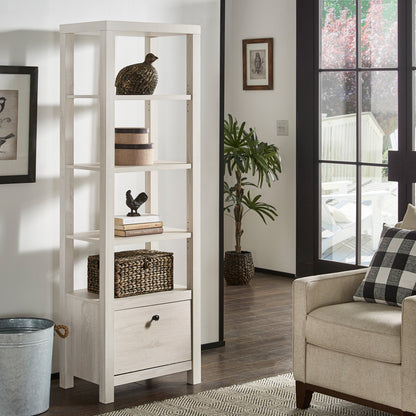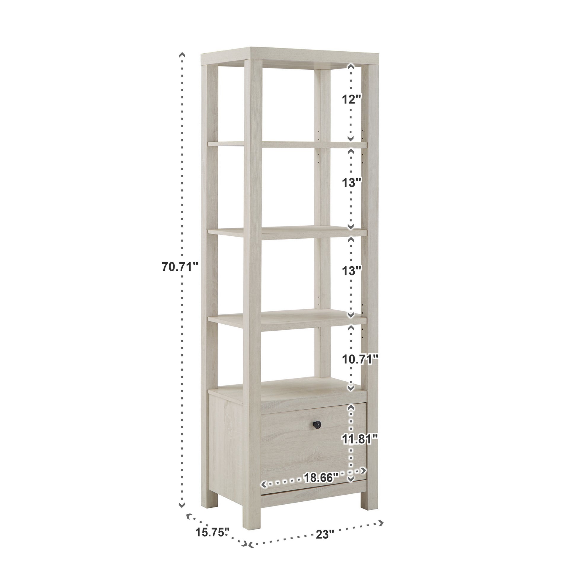 This 4-tier/5-tier Adjustable Bookshelf with Drawer by iNSPIRE Q Classic is the perfect solution for organizing and displaying your books and decor pieces in style. This sleek cottage design bookshelf blends function and beauty to bring a unique style to your home or office space. With two adjustable shelves, you'll be able to store and display different sizes of your books and decor items. A large file drawer will keep your storage concealed for a tidy and clutter-free room. The wood finish washed color surface with a vintage black knob; this bookshelf will last you for years to come.