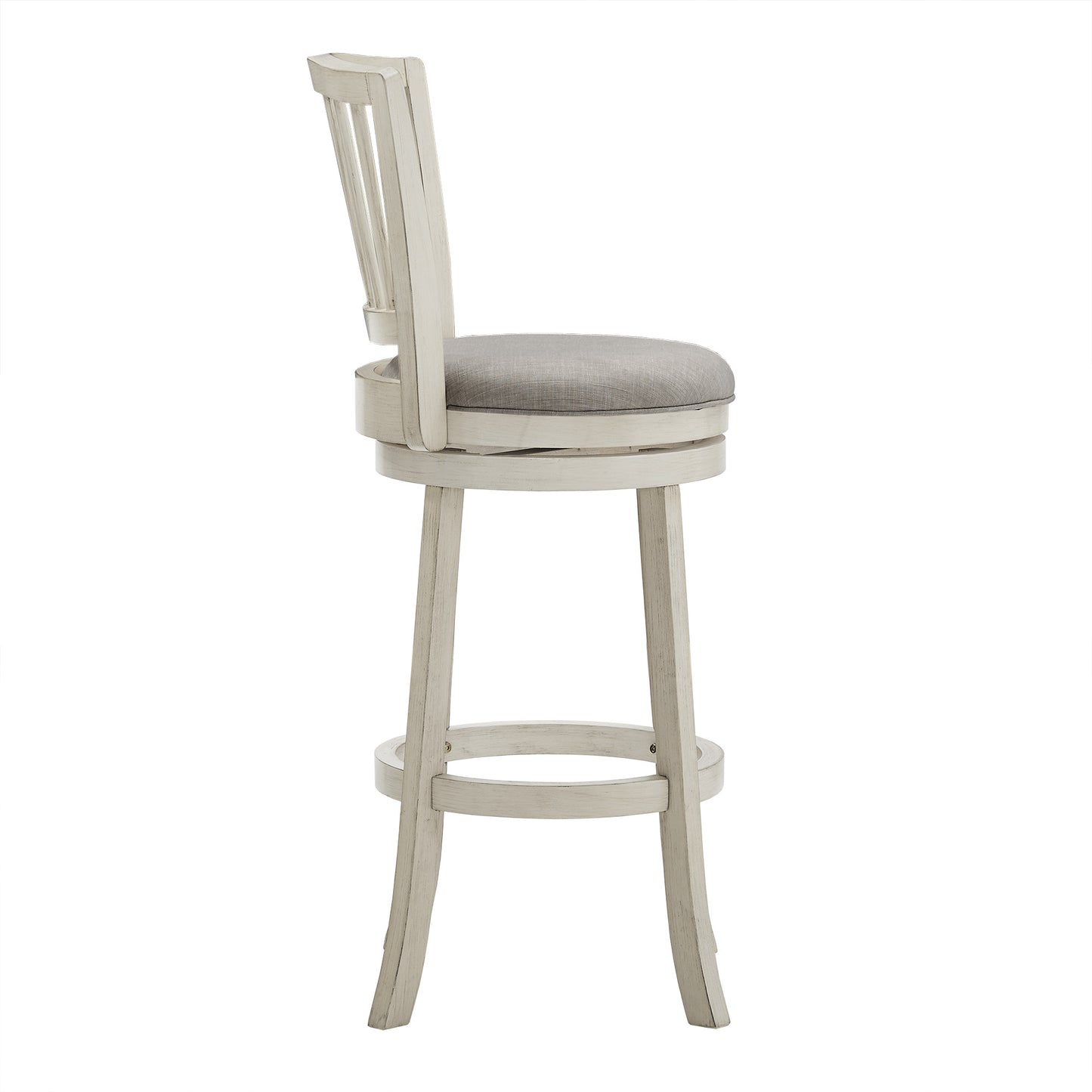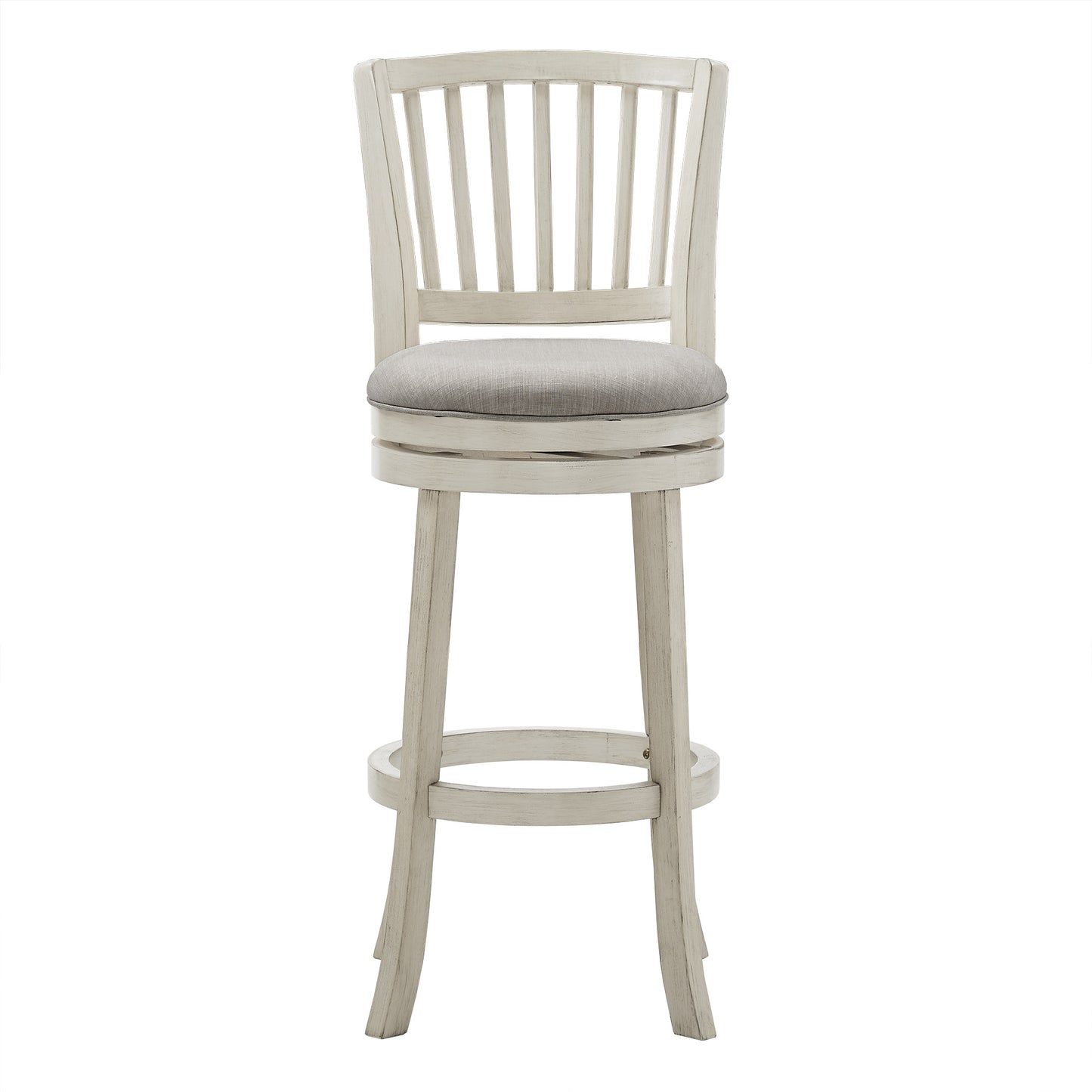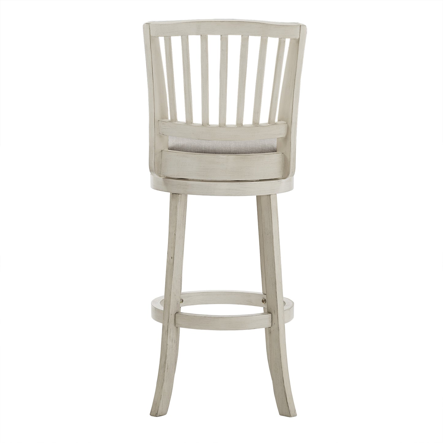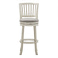 Slat Back Swivel Chair - 29" Bar Height, Antique White Finish, Gray Linen
