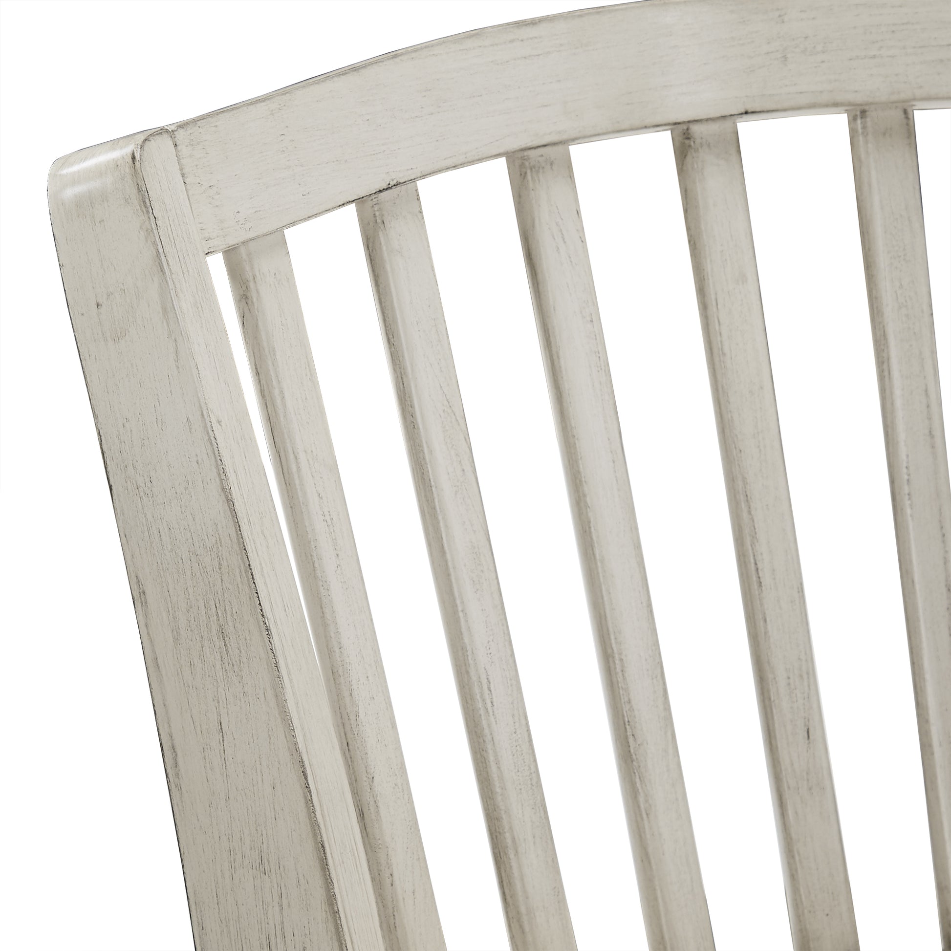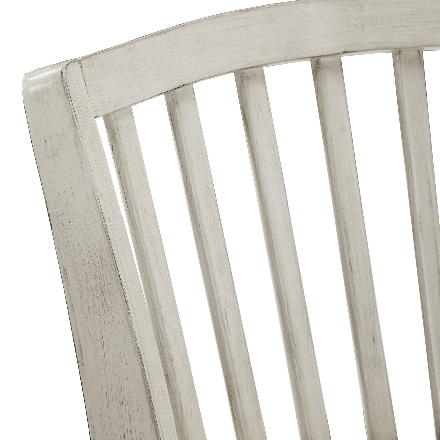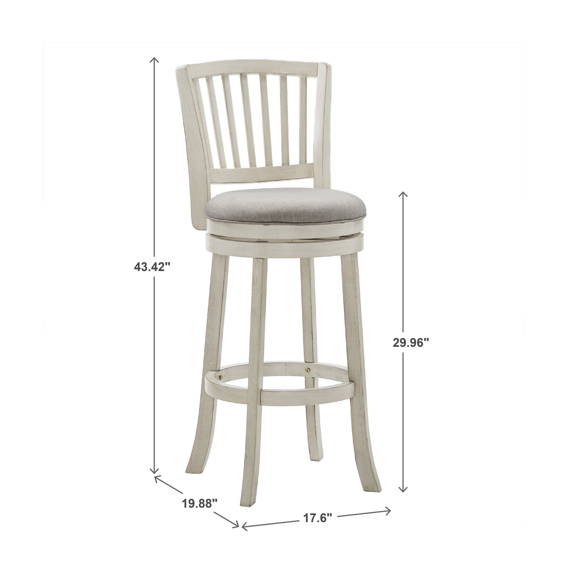 Slat Back Swivel Chair - 29" Bar Height, Antique White Finish, Gray Linen