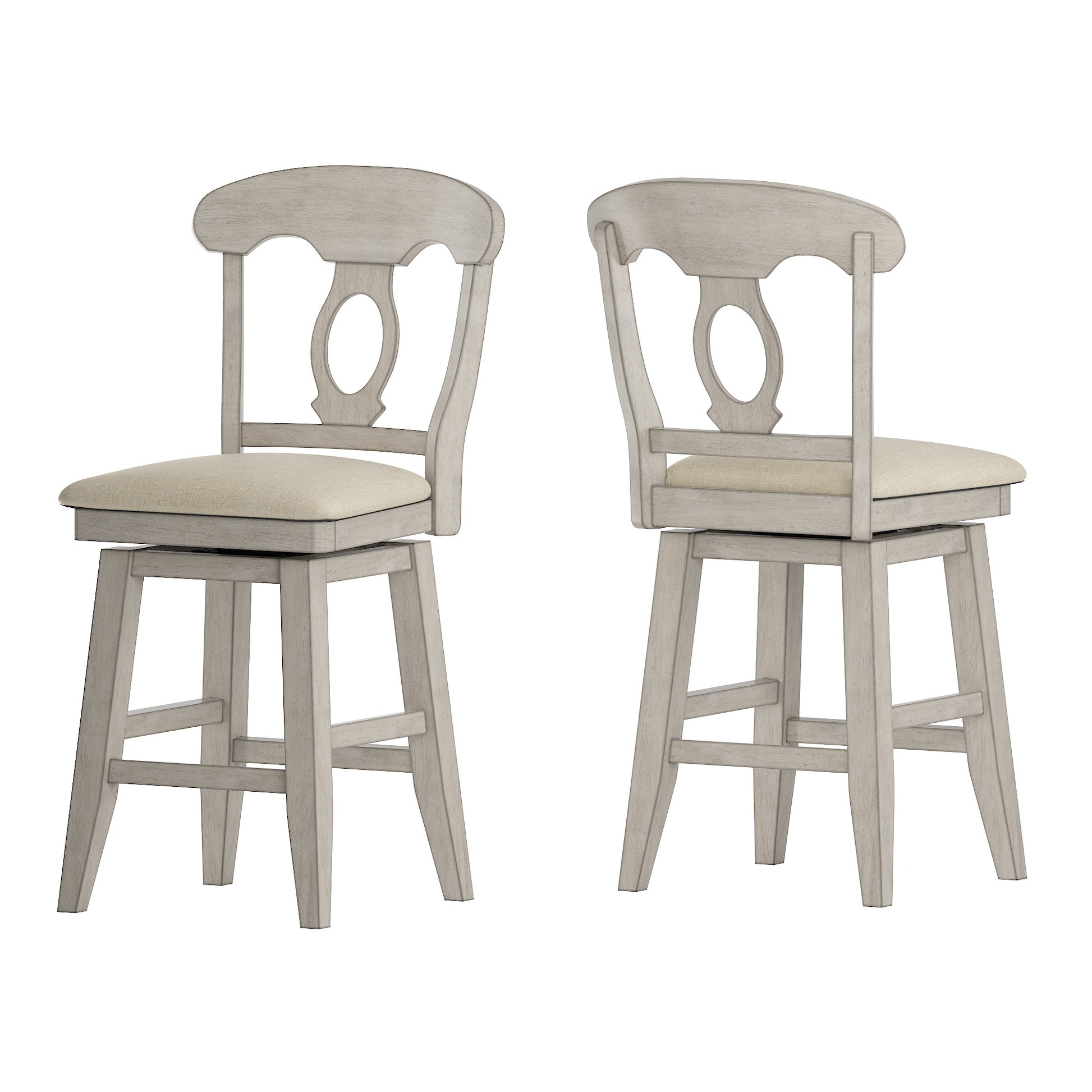 Napoleon Back Counter Height Wood Swivel Chair - Antique White Finish