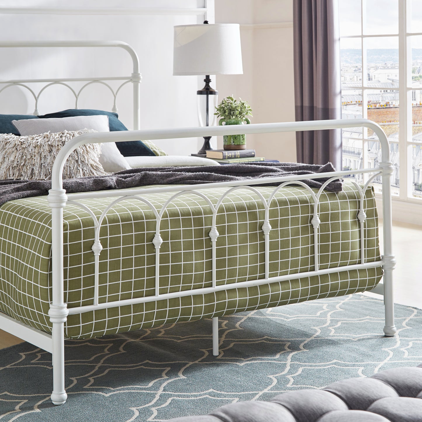 Casted Knot Metal Bed - Antique White, Queen (Queen Size)