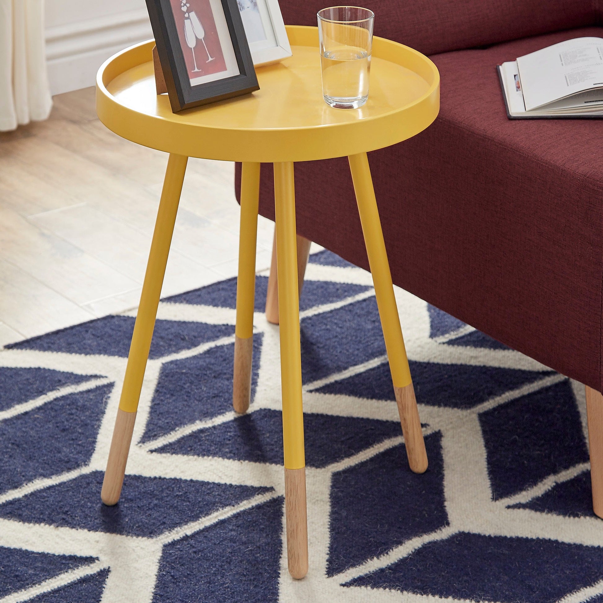 Inject color and convenience into your living space with this stylish iNSPIRE Q side table from iNSPIRE Q Modern. The table features a tray-style top with a rim to keep items secure, and four spindle legs that add traditional appeal to the design. The chic table is available in a variety of trendy colors with natural finish feet for a paint-dipped look that emphasizes casual elegance.