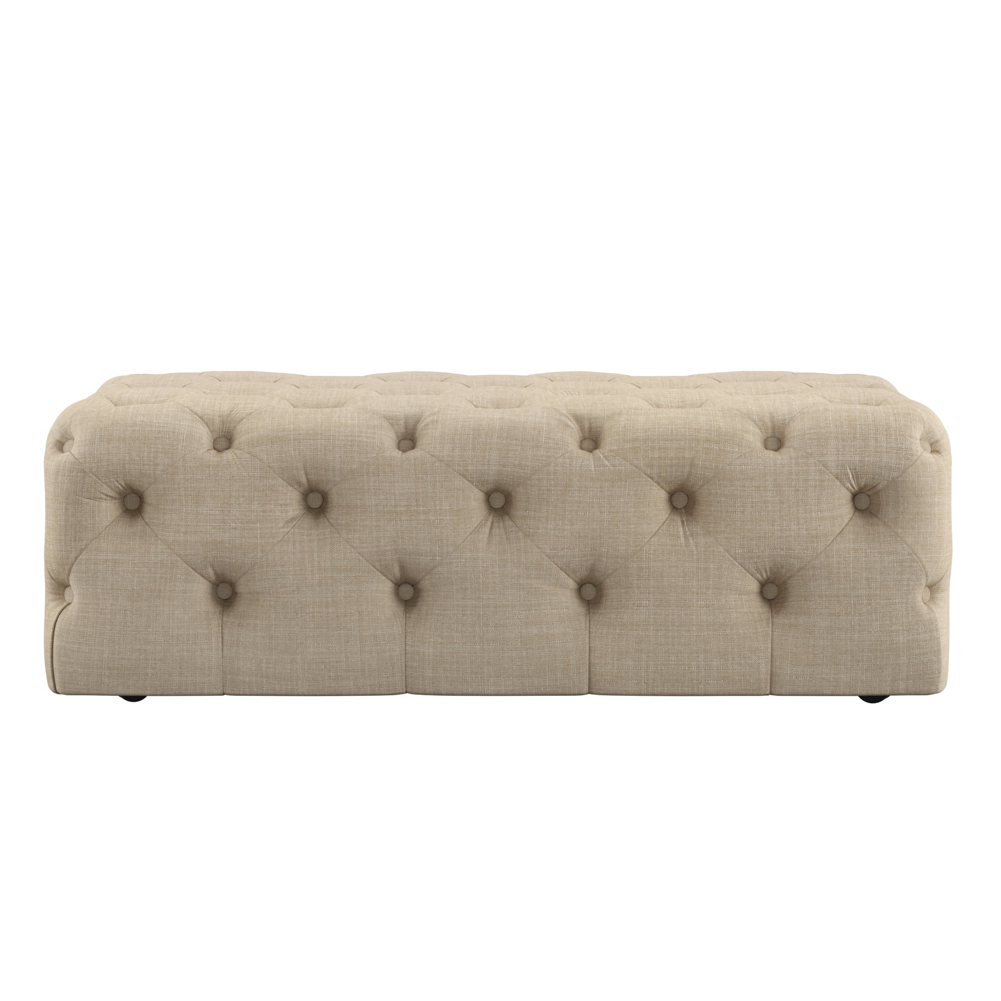 Rectangular Tufted Ottoman with Casters - Beige Linen