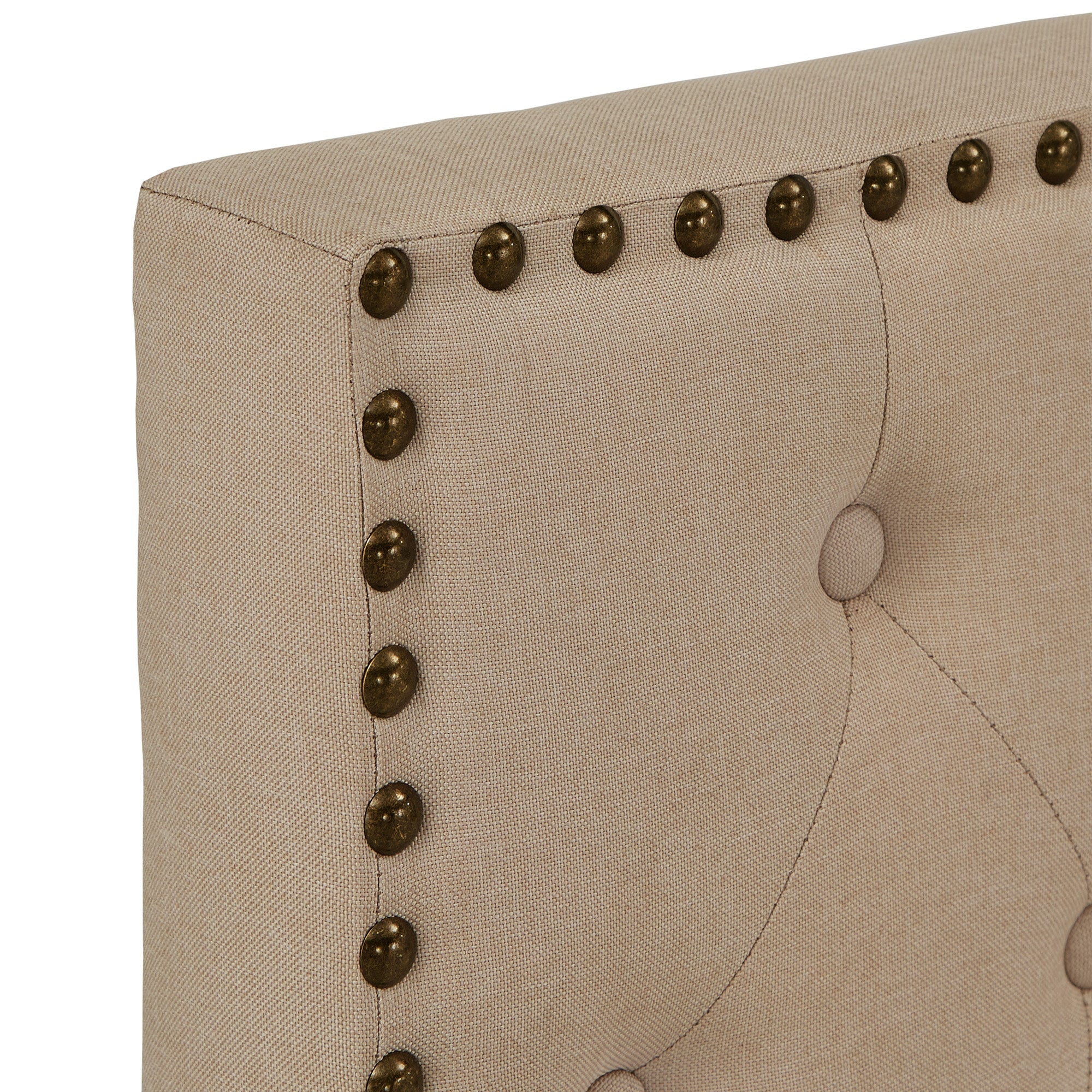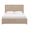 The iNSPIRE Q Nailhead Linen Headboard Storage Platform Bed by iNSPIRE Q Modern is a stylish addition to any bedroom. This bed displays a button tufted headboard with a delicate nailhead trim. Beige linen upholstery softens the piece yet adds sophistication. Store all your bedroom essentials in the four spacious drawers. A sturdy wooden construction will have you sleeping soundly for years to come.