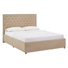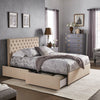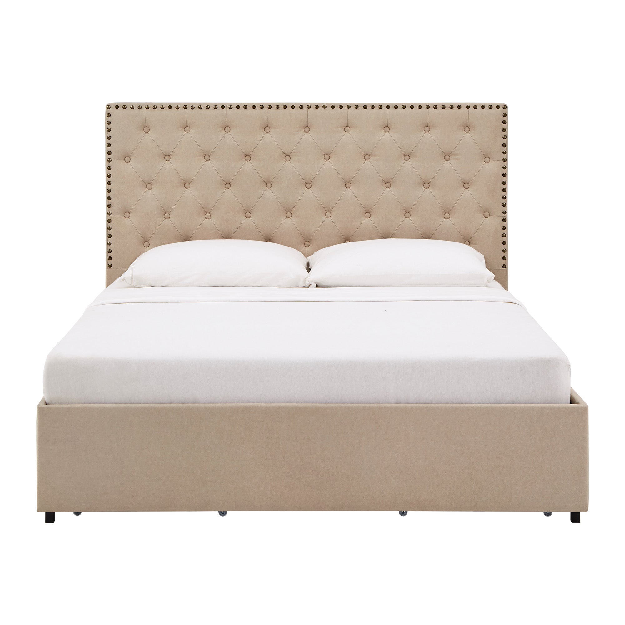 Nailhead Linen Headboard Storage Platform Bed - Beige Linen, Queen (Queen Size)