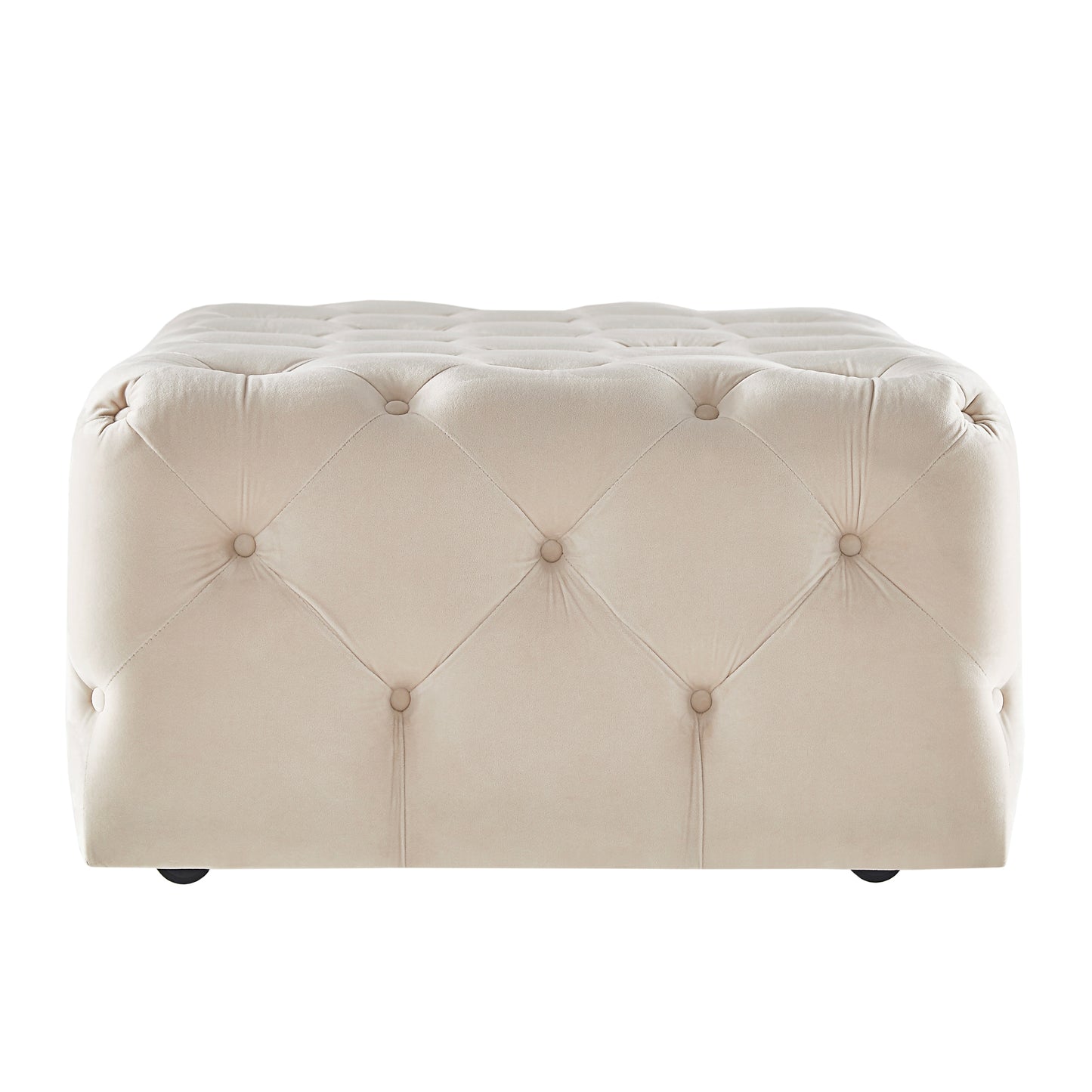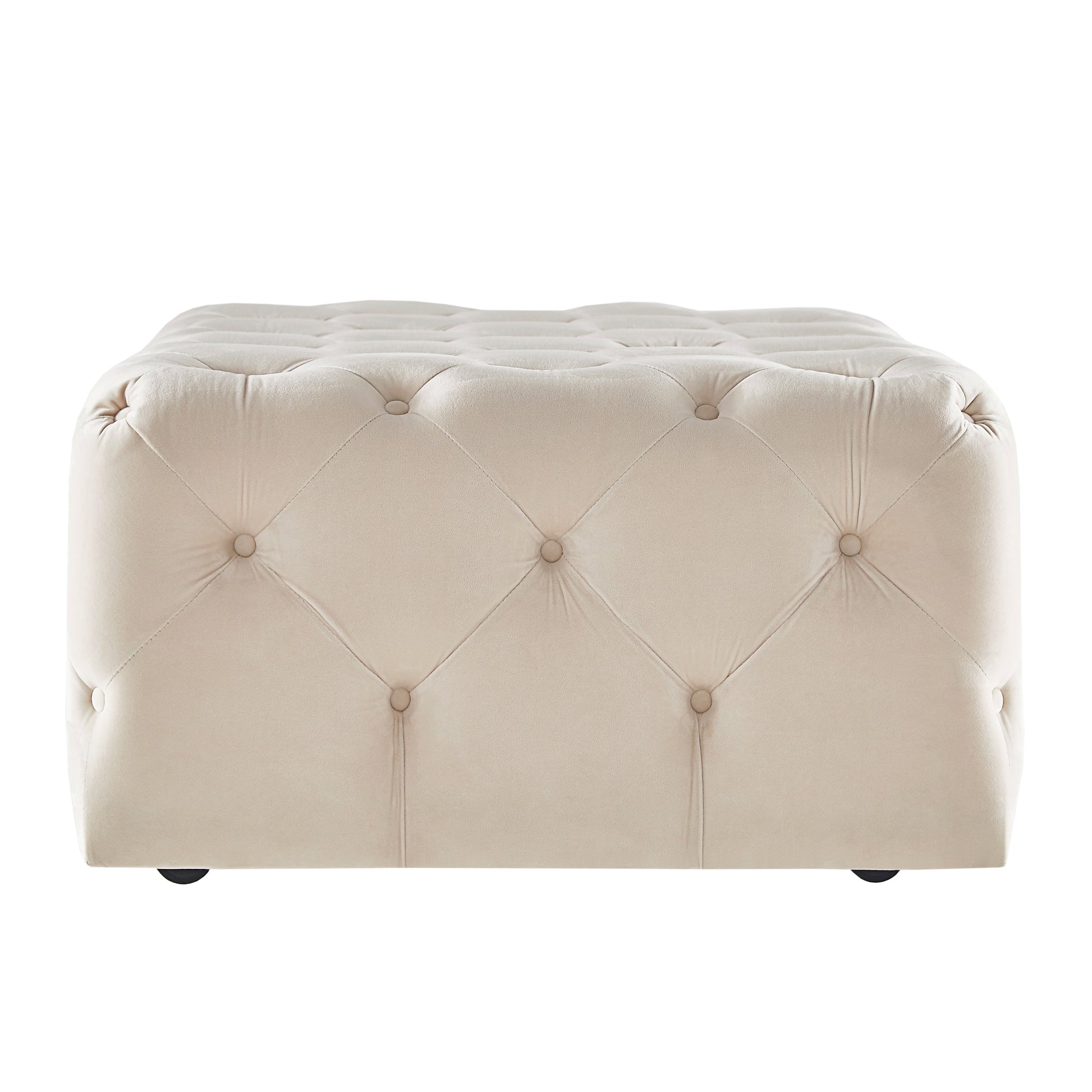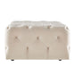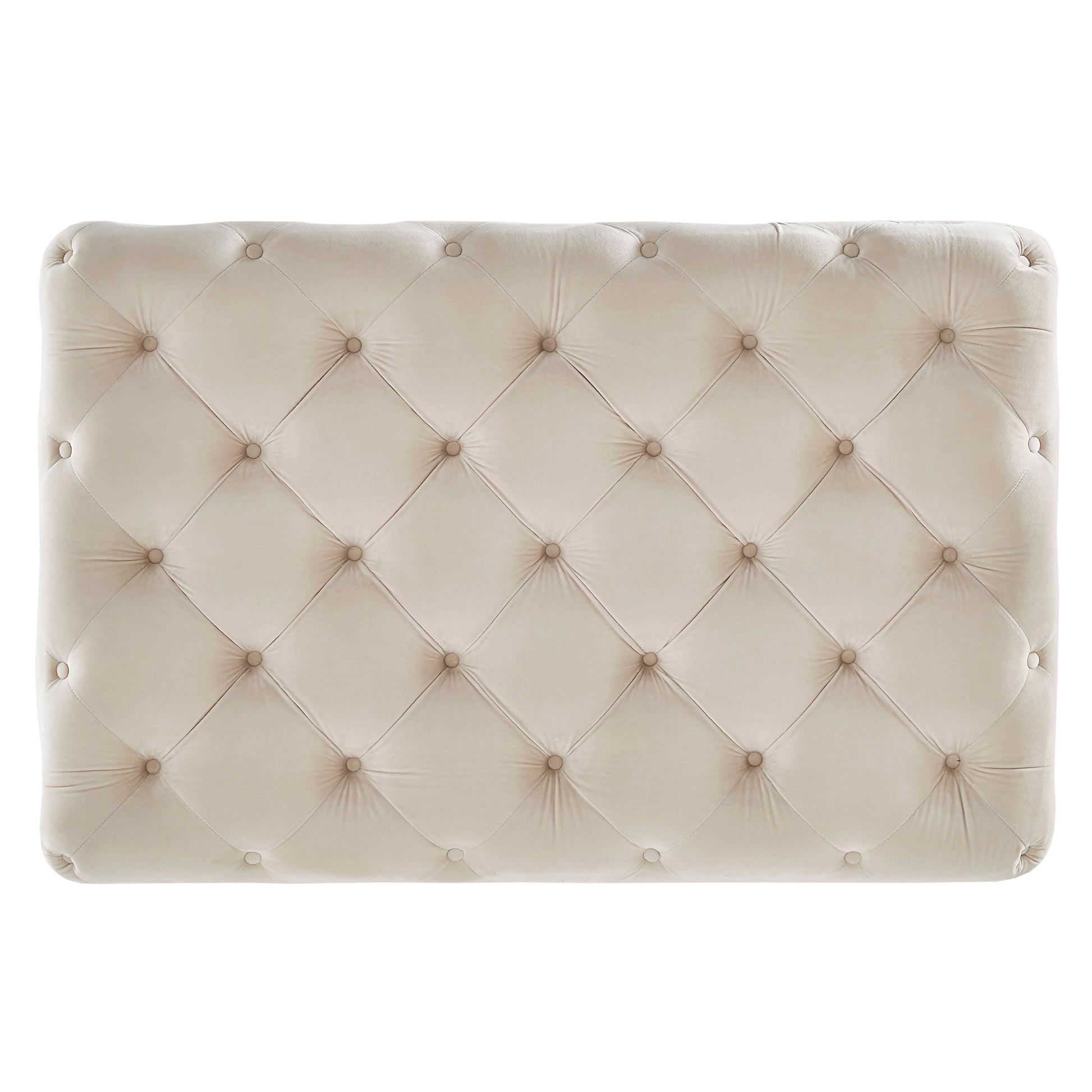 Rectangular Tufted Ottoman with Casters - Beige Velvet