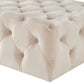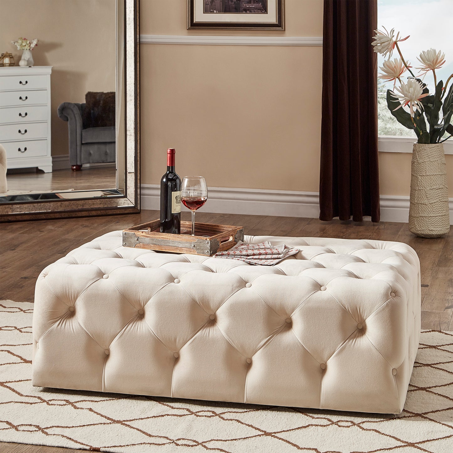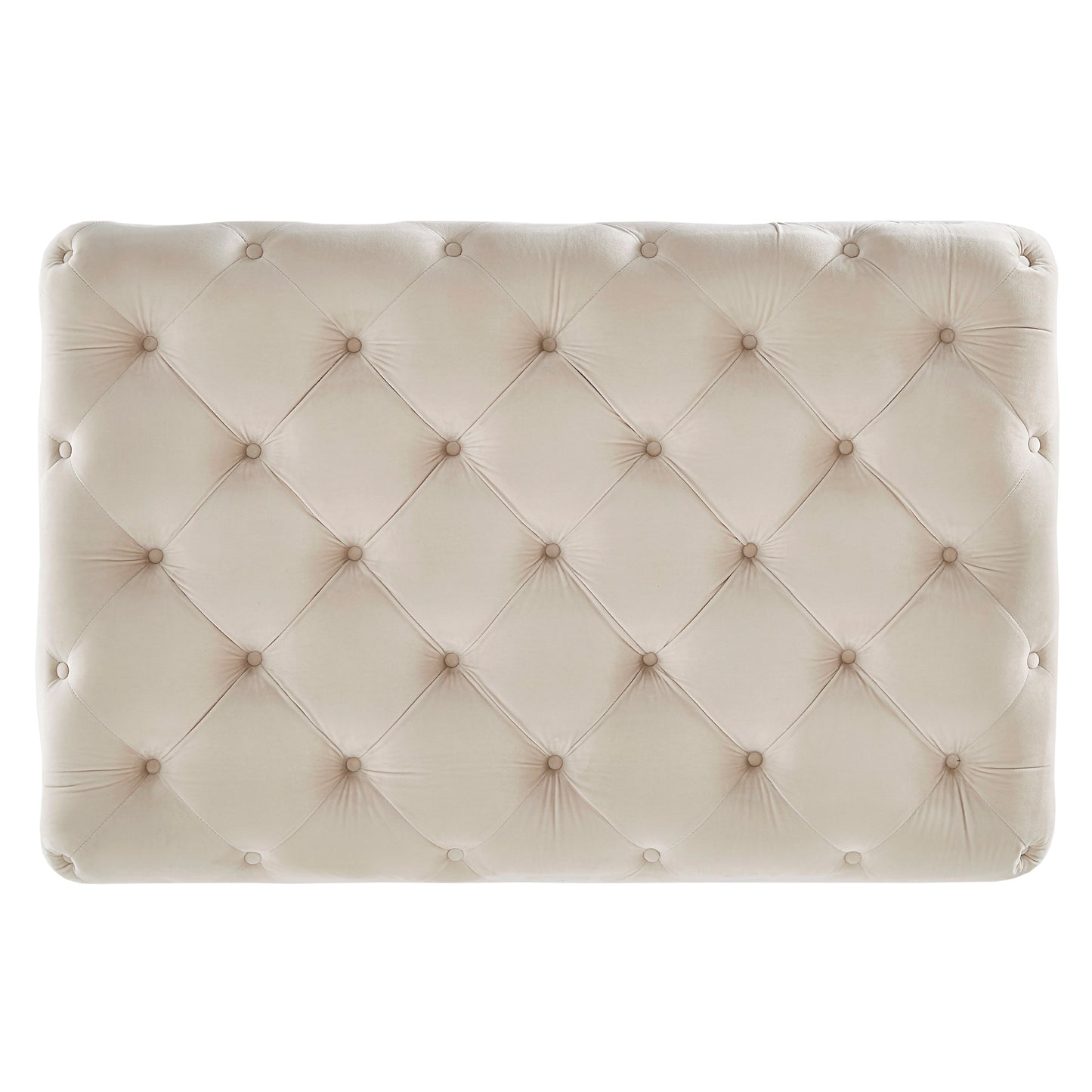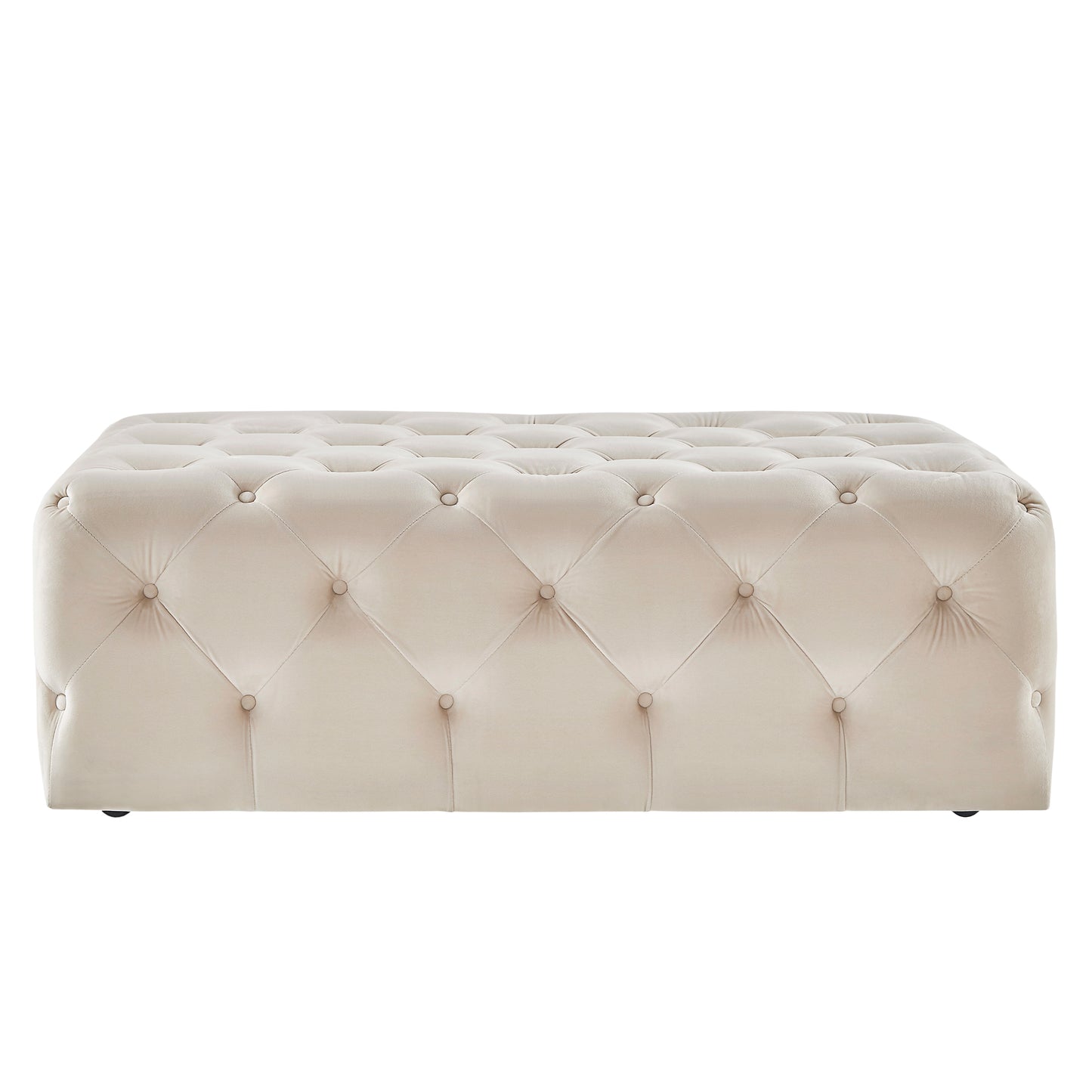 Rectangular Tufted Ottoman with Casters - Beige Velvet