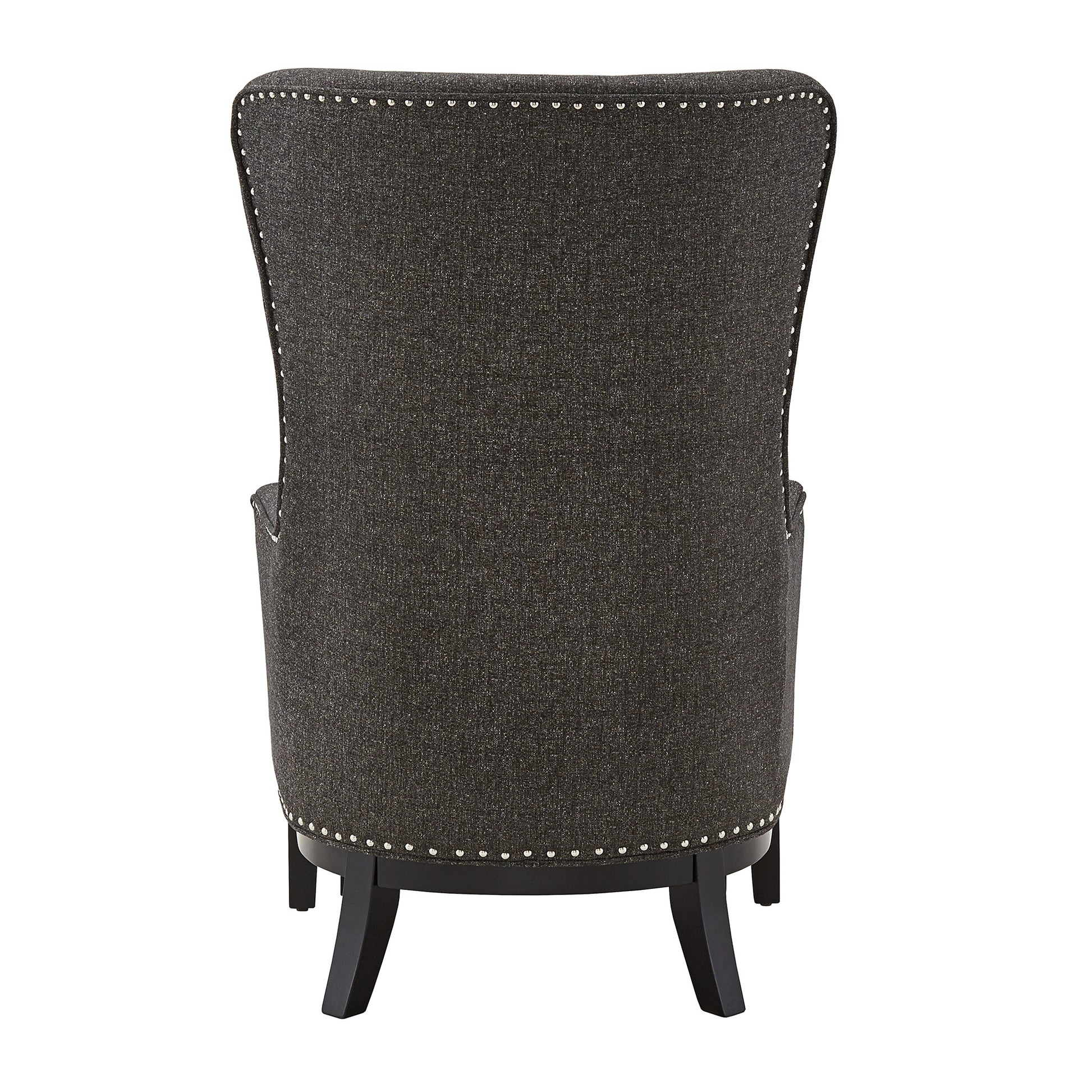 High Back Wing Lounge Chair with Footstool - Black Heathered Weave