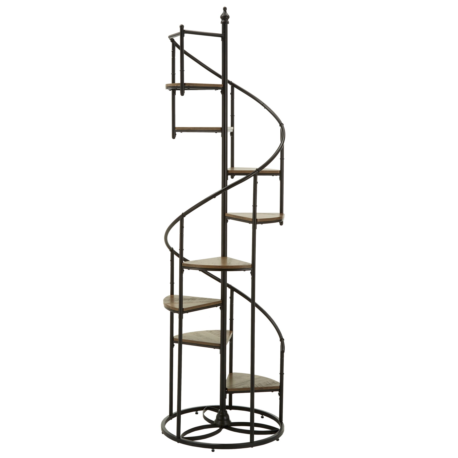 Create a definitive statement in every corner of your home with the iNSPIRE Q Black Finish Metal Spiral Staircase Display Shelf from iNSPIRE Q Modern. From the eclectic look and feel of the s-shaped ‘handrail’ frame, to the modernized tiered shelves- you’ll love displaying keepsakes, books, and other items on this one of a kind piece. From top to bottom, each shelf includes a unique open-faced design to allow a 360° view of each item so that each keepsake is visible at all times. Constructed of metal and wood for a sleek and industrial look for those who love to make a modern statement.