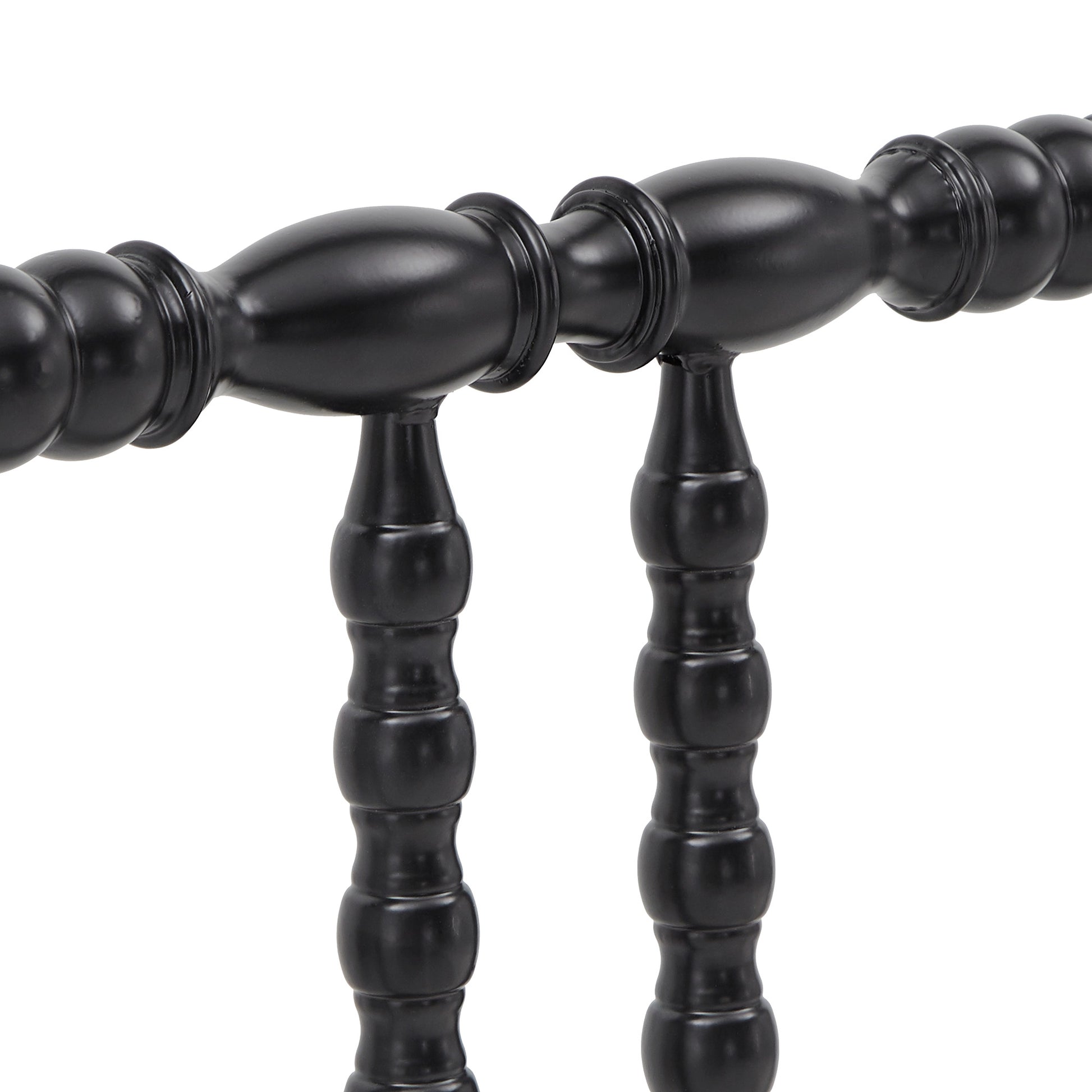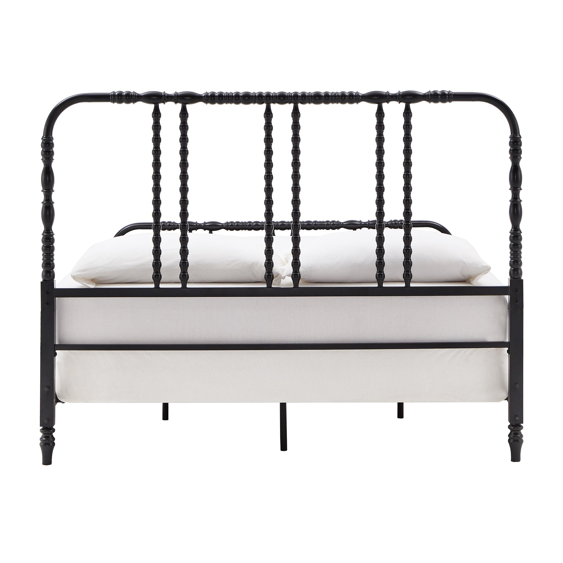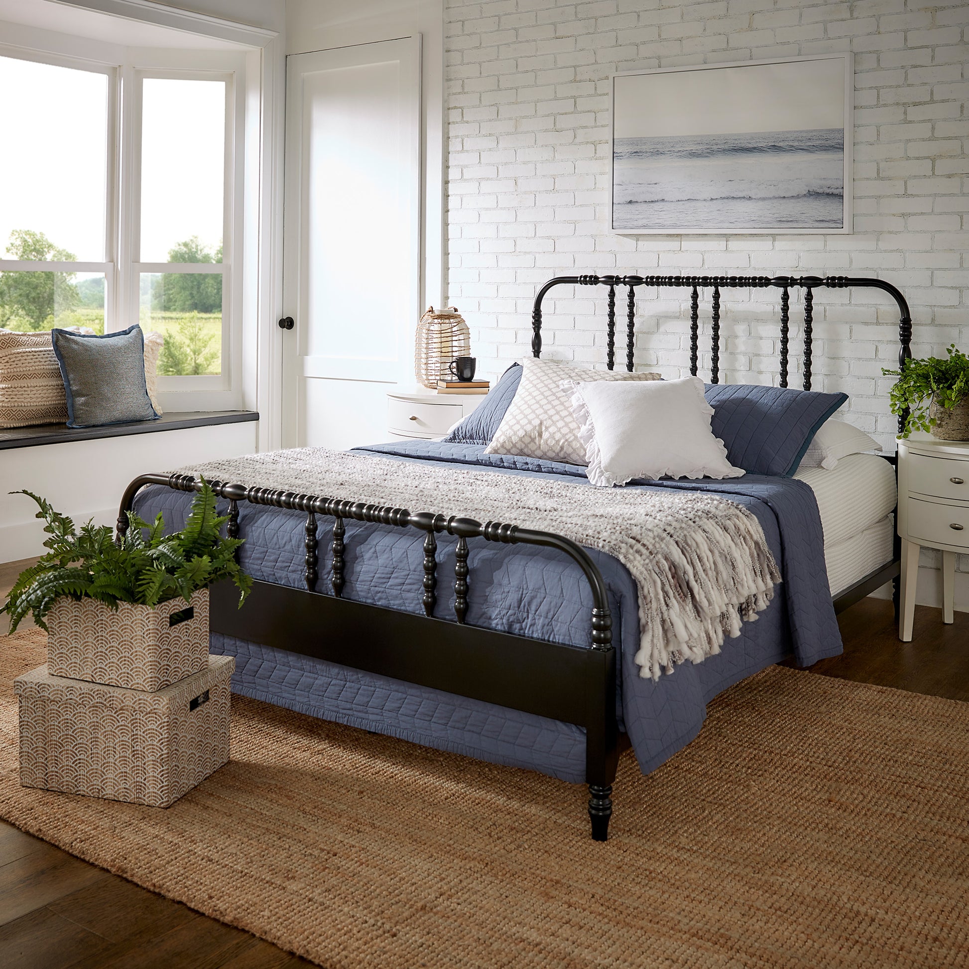 The iNSPIRE Q Metal Spool Bed by iNSPIRE Q Classic anchors your bedroom with timeless charm. A simple, traditional design features six spindles on the curved side rails or head and footboards, each intricately turned for eye-catching detail. This farmhouse-inspired bed is expertly crafted entirely with metal and comes in a clean, black finish, making it easy to match with existing color schemes.
