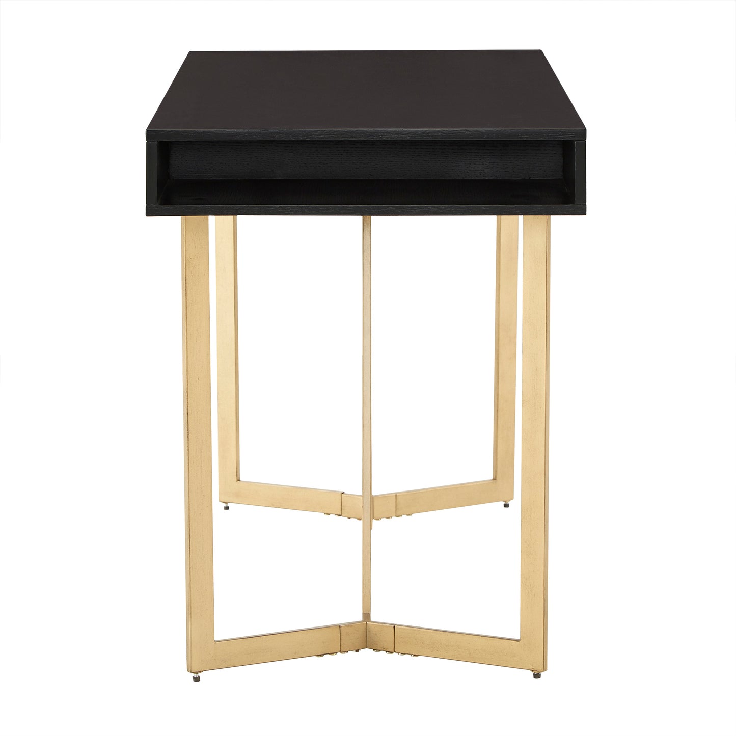 Display a bold and glam aesthetic in your home office work space with the iNSPIRE Q iNSPIRE Q black and gold finish writing desk. This beautiful desk makes a dramatic statement as its black top contrasts with the metallic gold finish metal base. The smooth rolling and soft closing drawer provides ample storage. Generous openings on both sides of this desk are designed to provide additional storage.