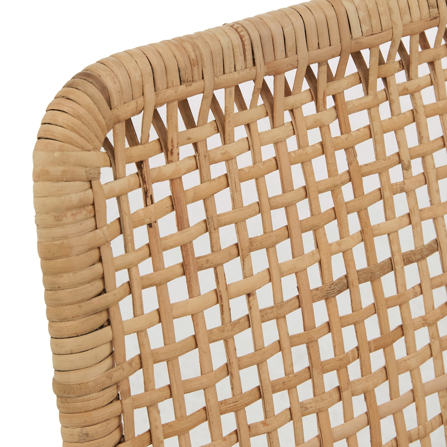 Upgrade your home decor with our 27.16" Wide Natural Curved Rattan Chair, designed for those who appreciate the art of modern design with a rustic twist. The chair's robust iron frame ensures longevity and firmness, while the wide, curved rattan seat provides a cool, comfortable embrace. Its easy installation and clean maintenance make it a practical choice, and the polished black frame alongside the intricate weaving patterns makes this chair a statement piece for any natural or farmhouse-themed room.