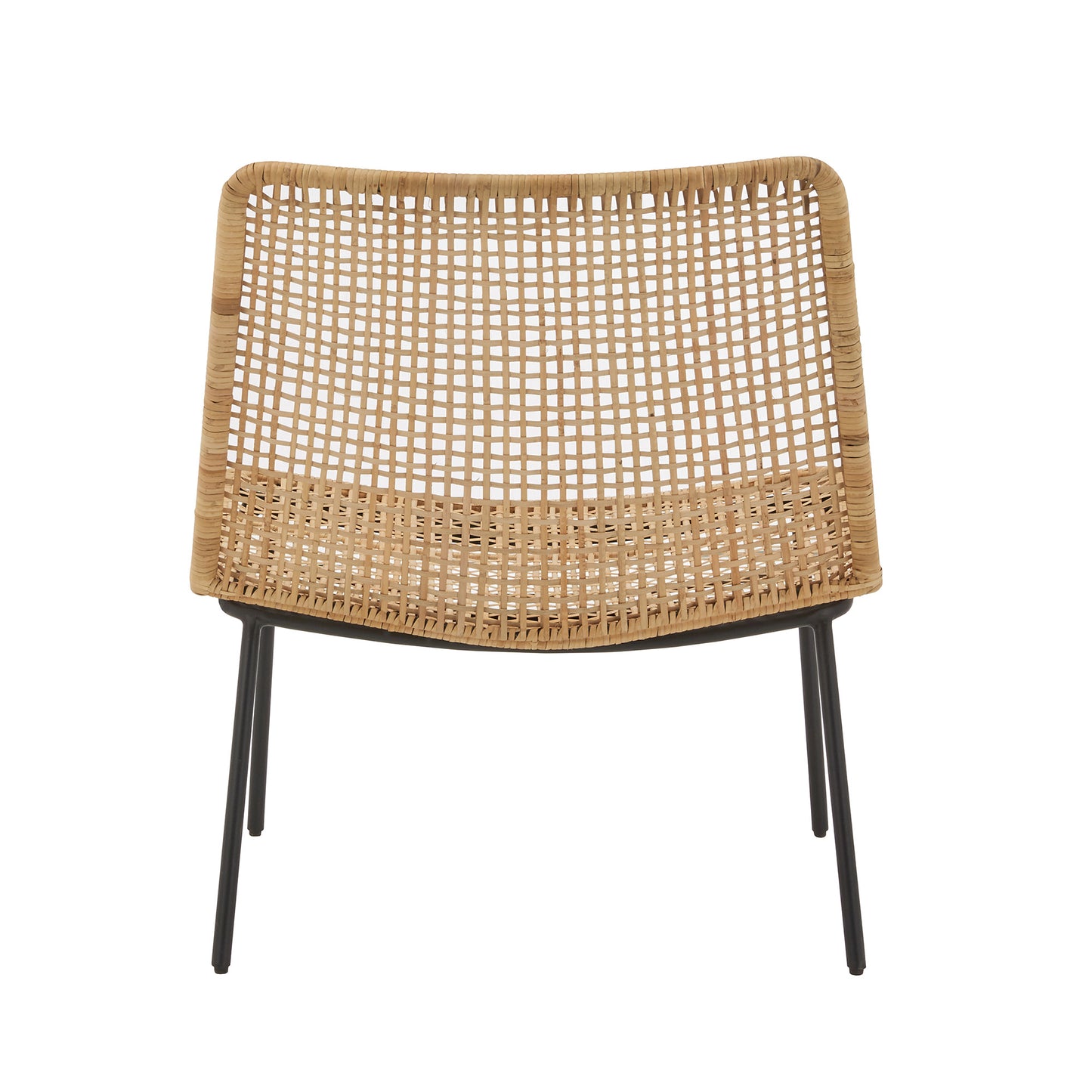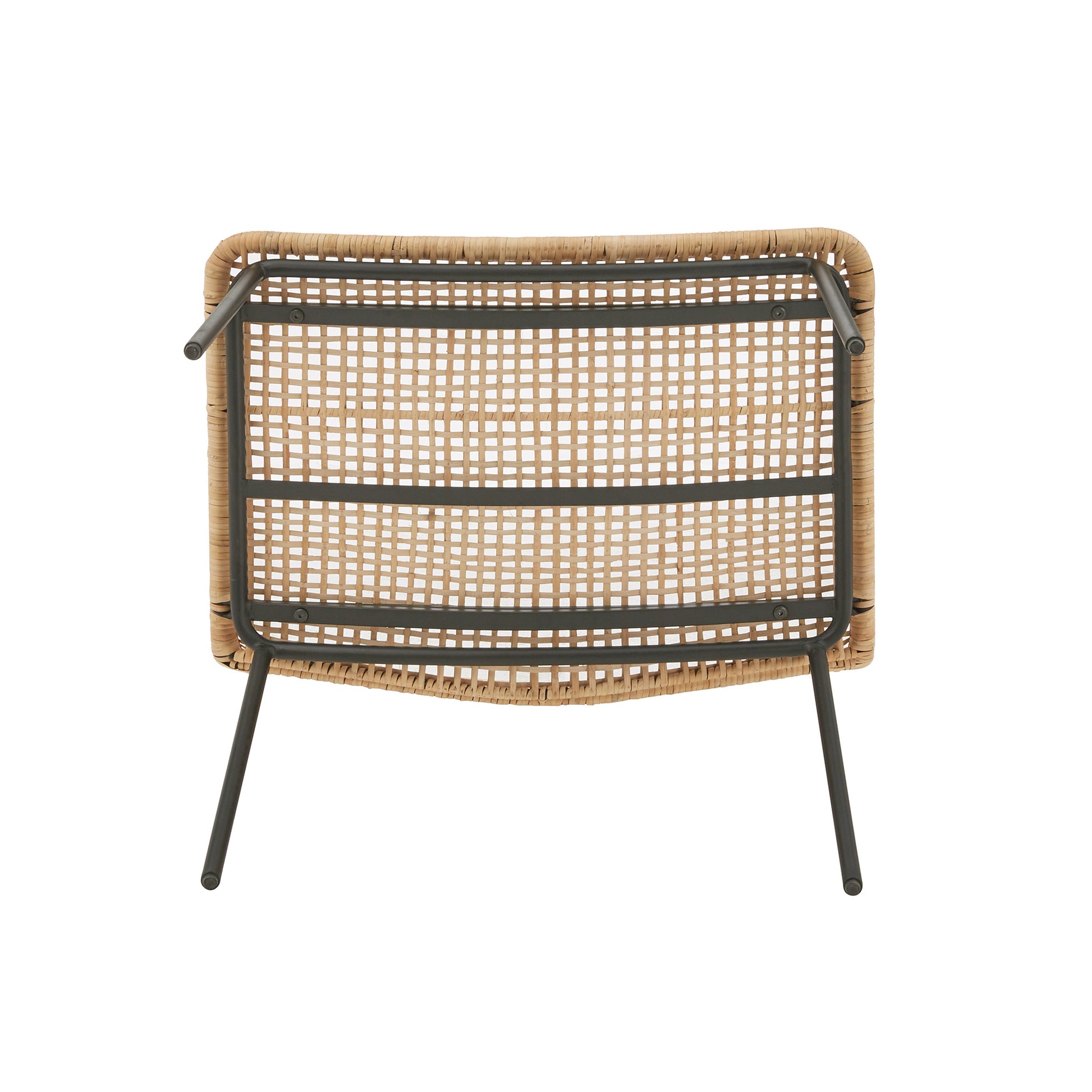27.16" Wide Natural Curved Rattan Chair with Black Metal Frame