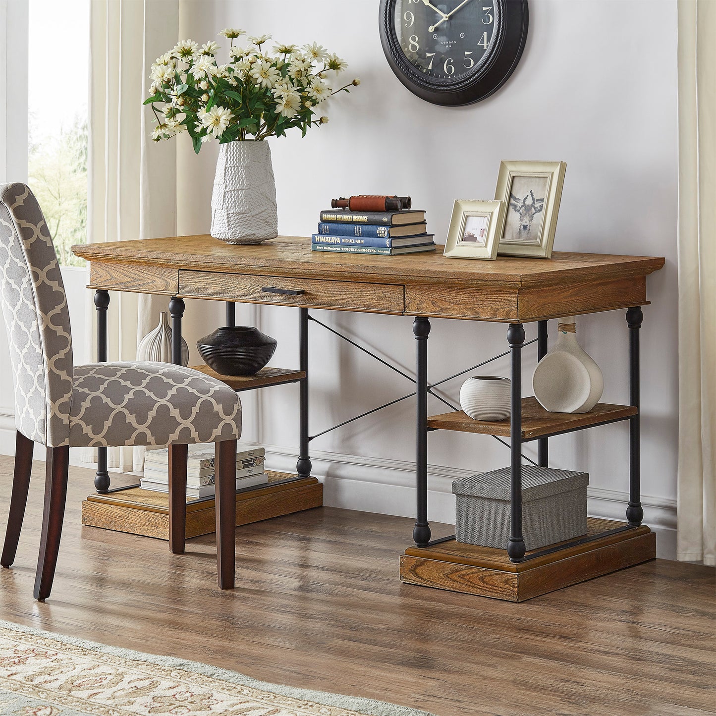 Add bold and rustic character to any room with this upscale industrial-styled iNSPIRE Q Desk from iNSPIRE Q Artisan. Enjoy classic design styling with open sections to meet organizational needs. Storage options are endless, and you'll love the spacious desk top. It also features one drop down drawer for extra work surface or storage capabilities.