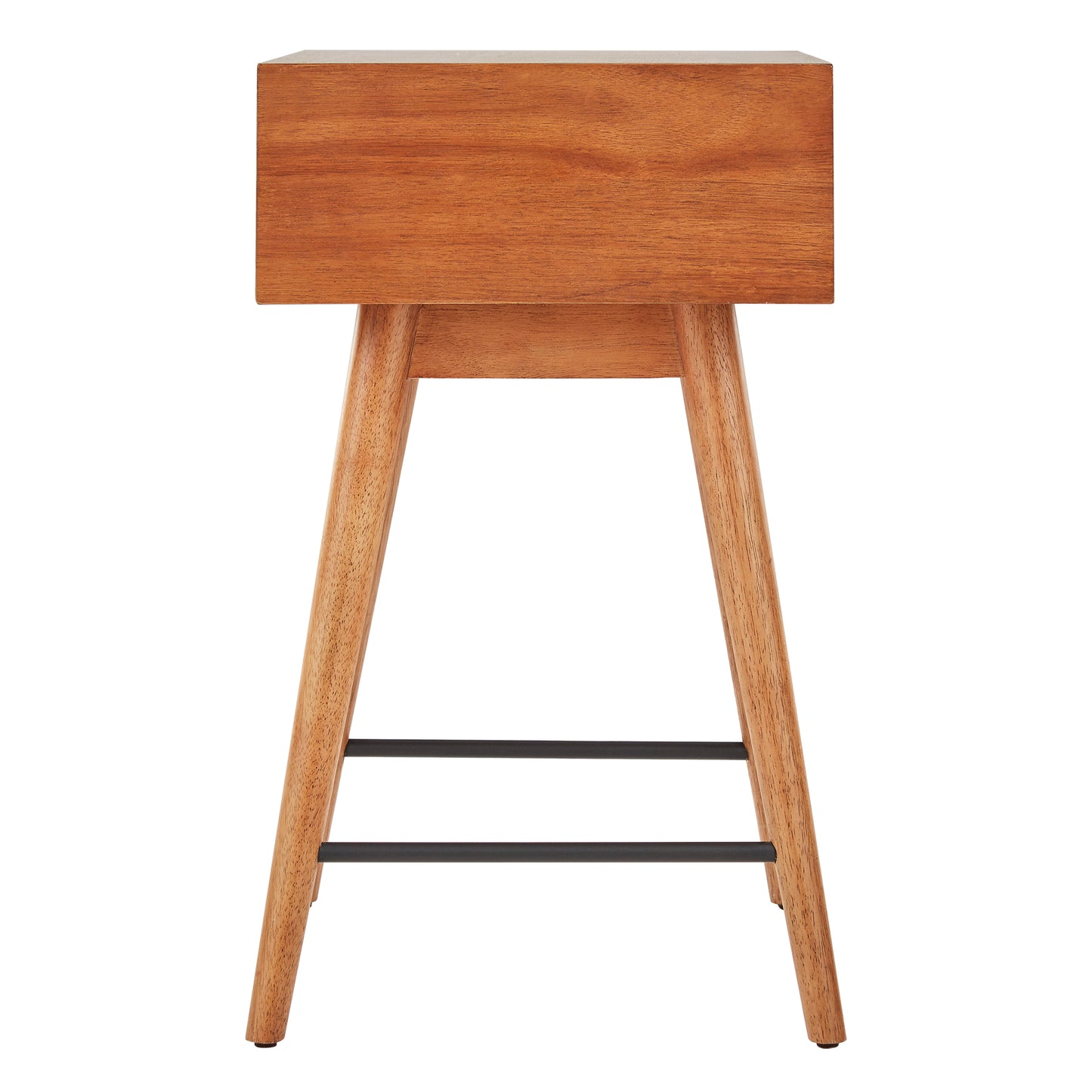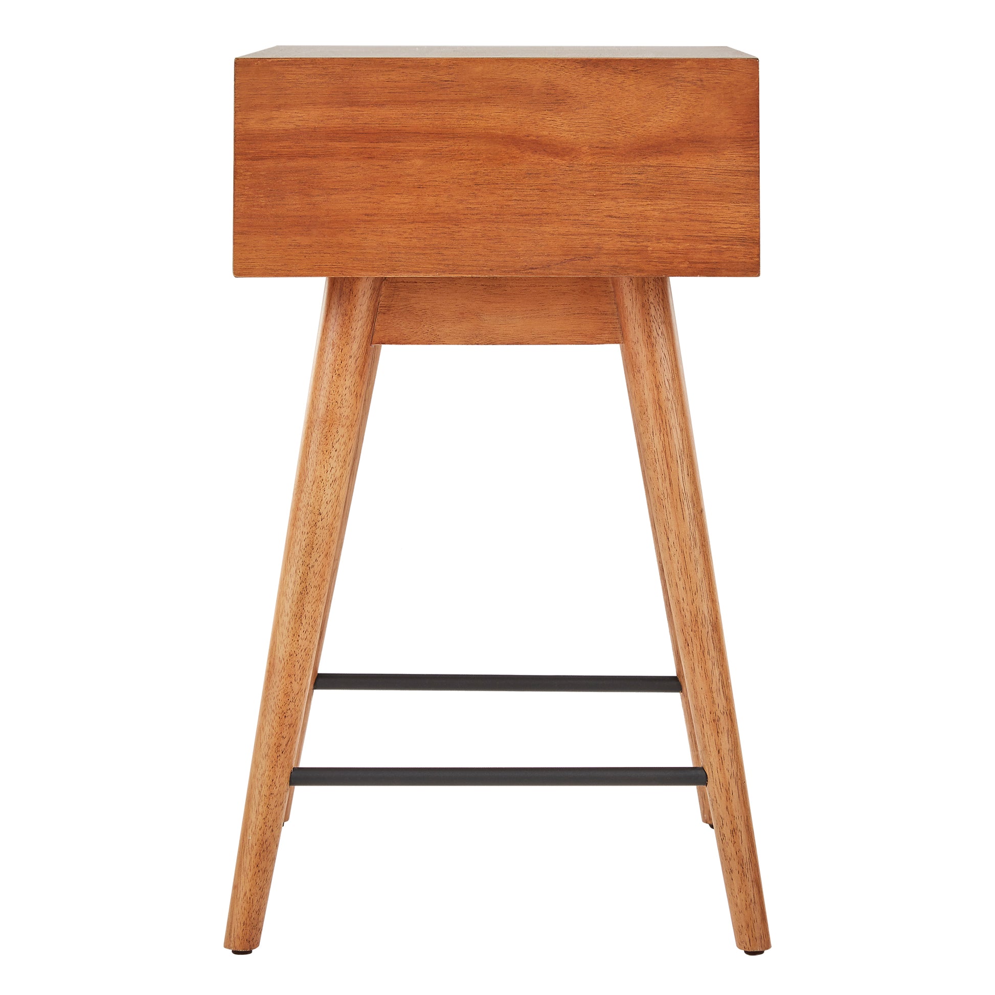Give your living space a unique, retro look with the iNSPIRE Q end table from iNSPIRE Q Modern. The table's understated design features a wood finish that complements the simple, angular contours. The black metal accents contrast the wood tone perfectly and make this piece truly unique. This end table has one large drawer to keep small items out of sight.