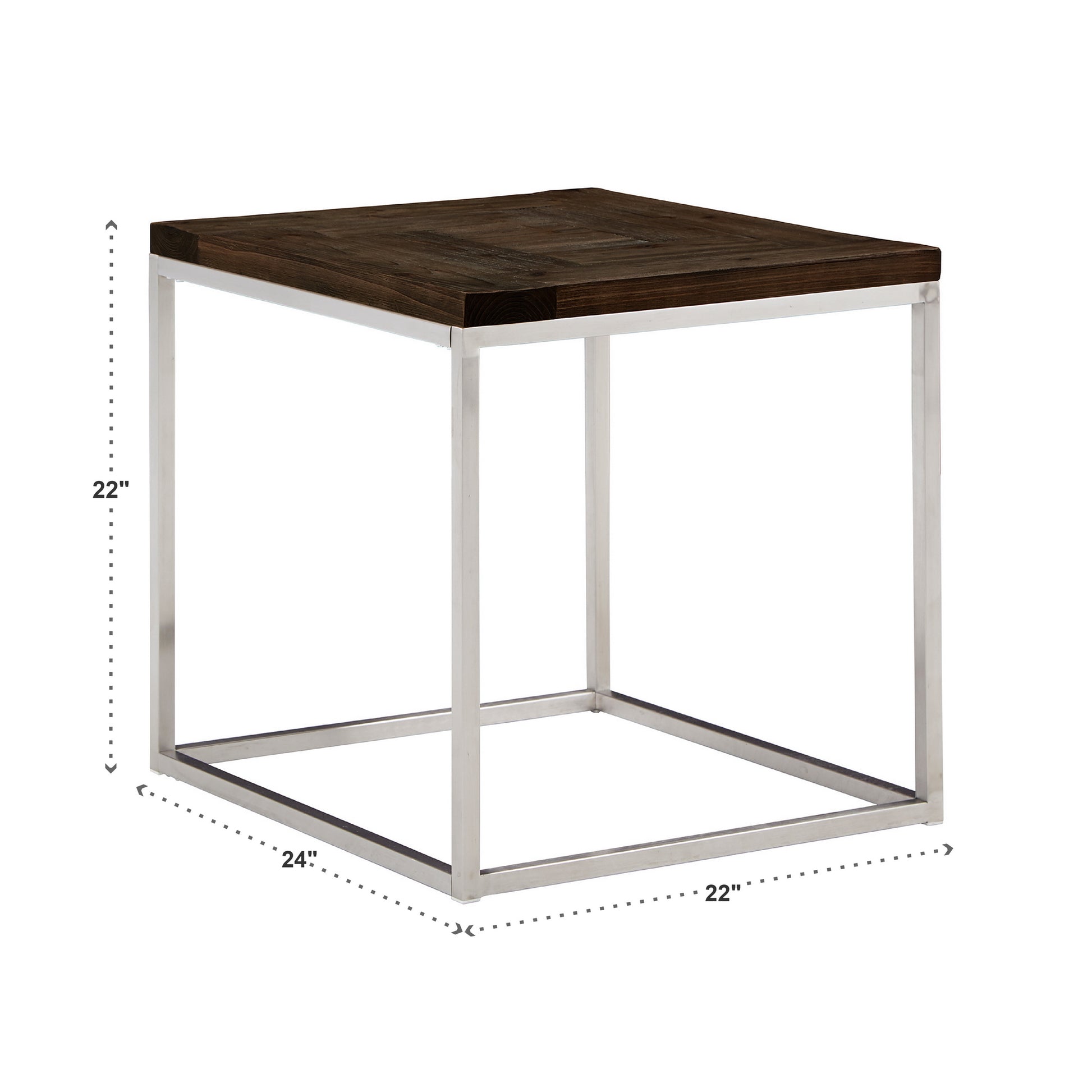 Stainless Steel Rectangular End Table - Brown Finish Top