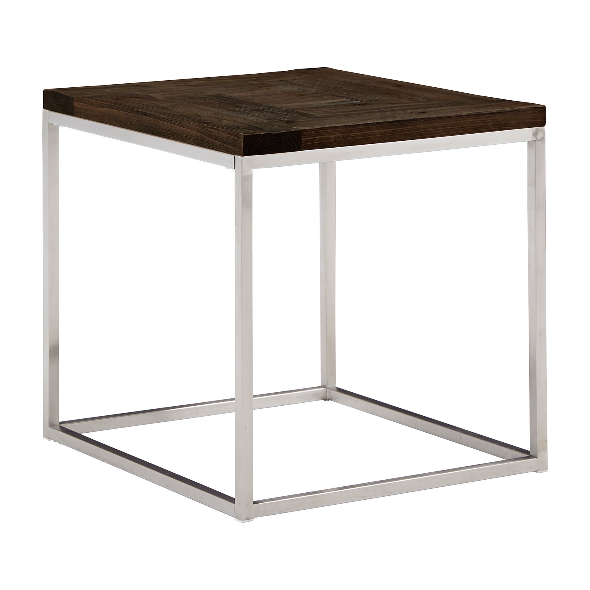 Natural elements are given a modern update with the iNSPIRE Q Stainless Steel Rectangular End Table by iNSPIRE Q Modern. Perfect for those who love a minimalist statement, this table features a crisp, clean, and simple silhouette. An open metal base is constructed with stainless steel to create a bold contrast against the distressed, light wood finish of the table top.