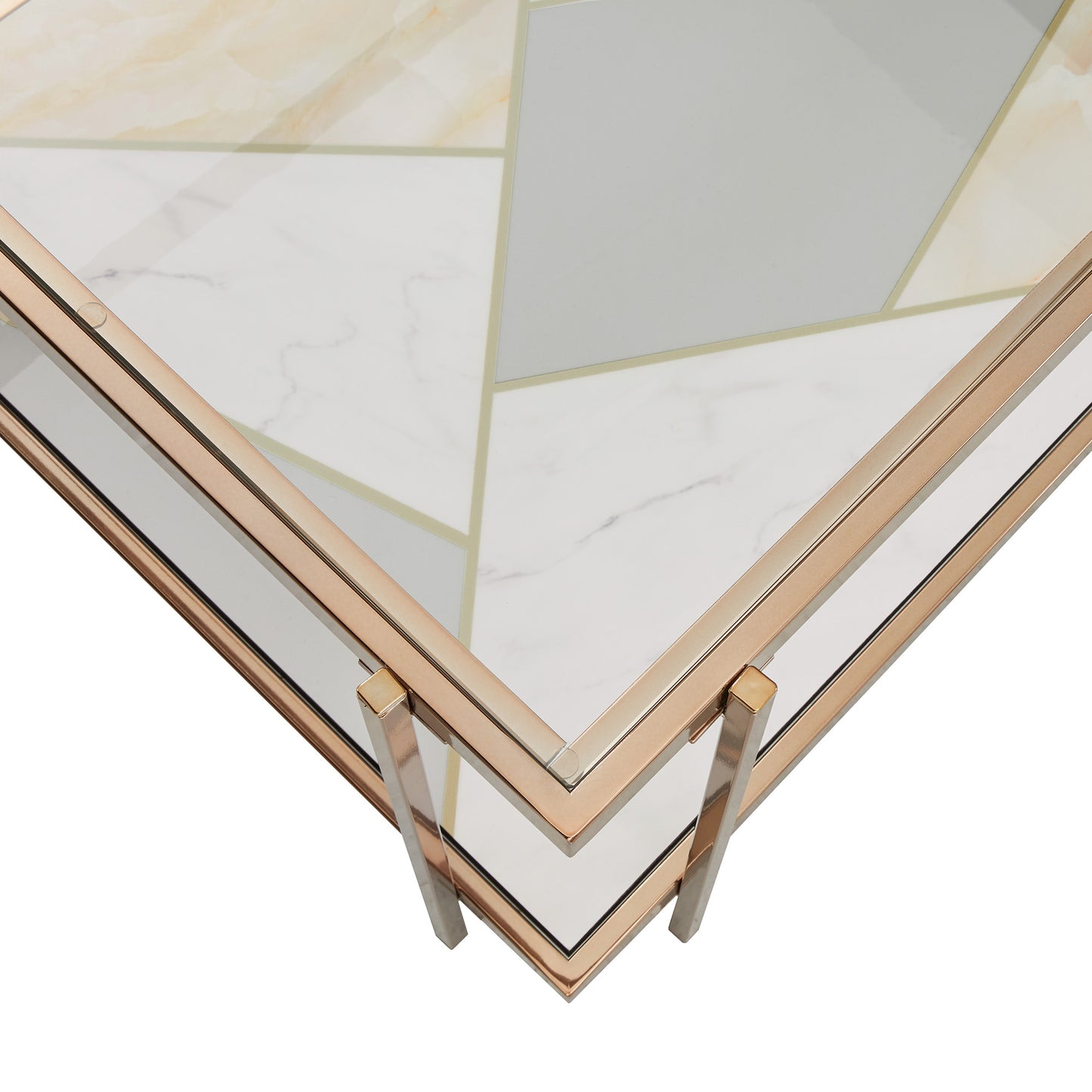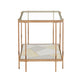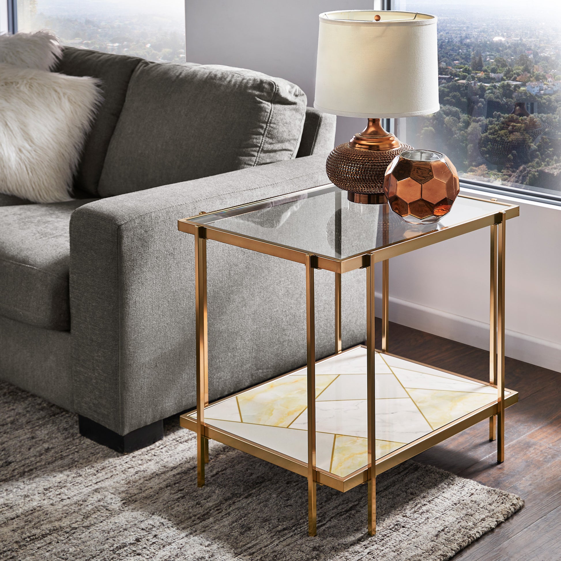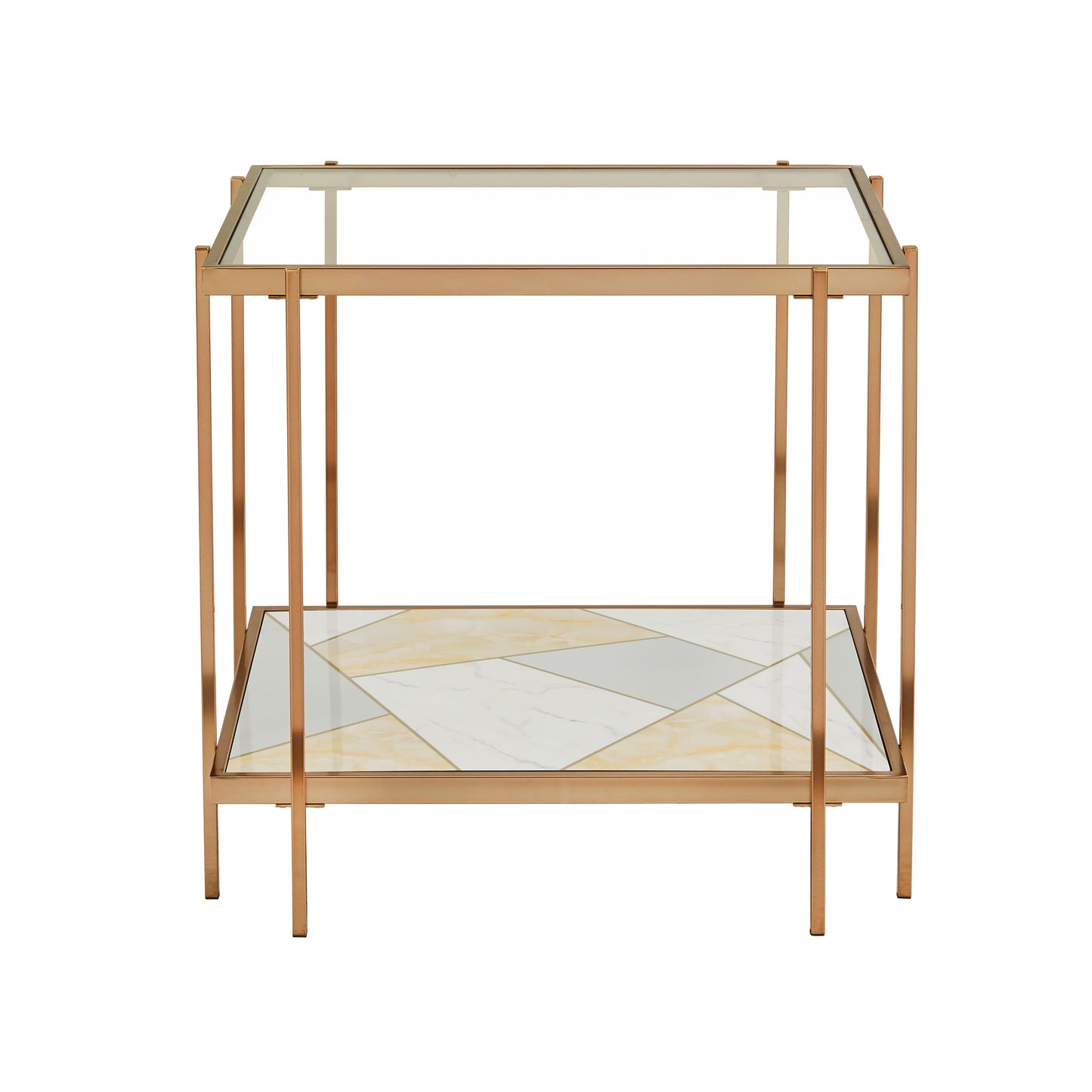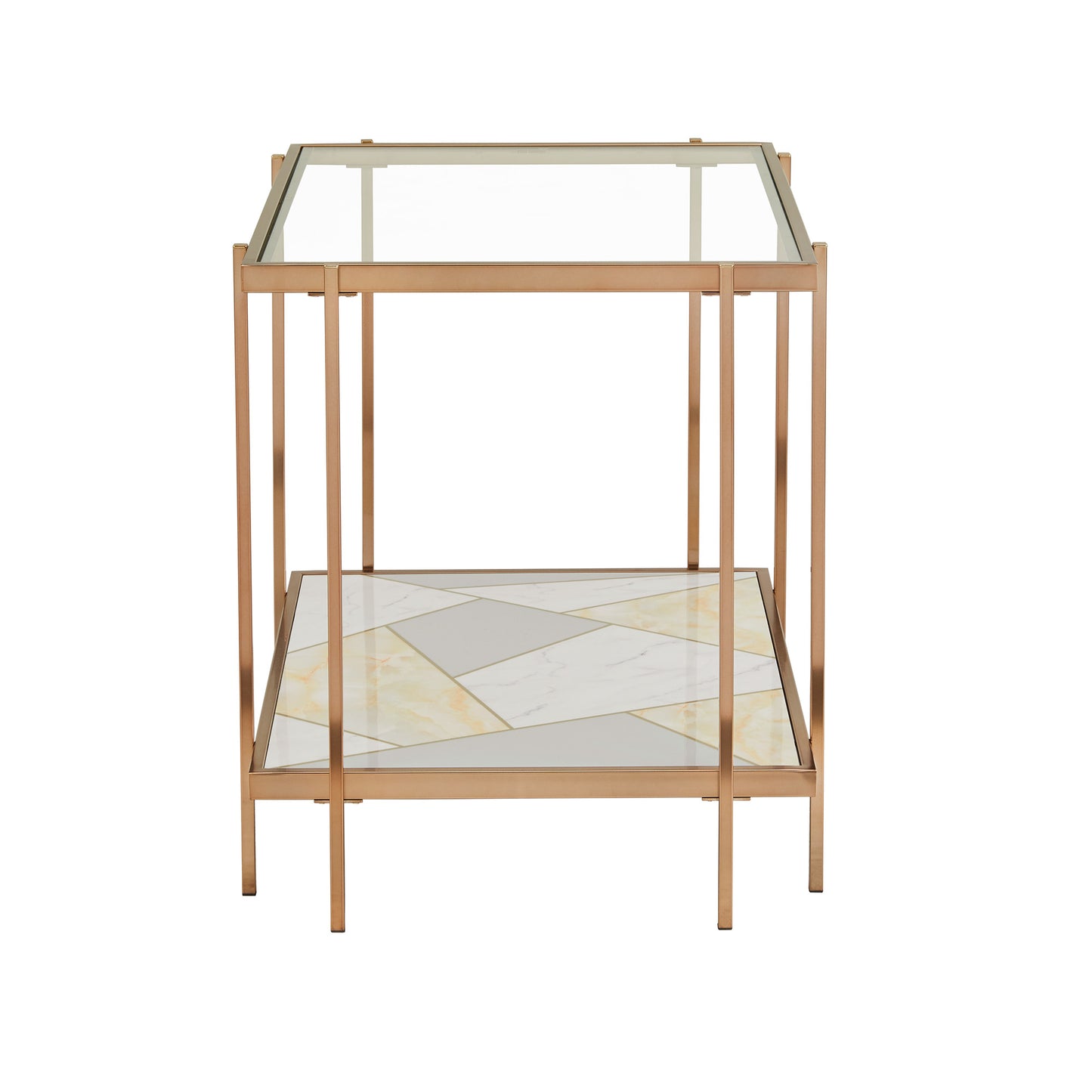 Champagne Gold Finish with Geometric Marble Pattern Glass End Table