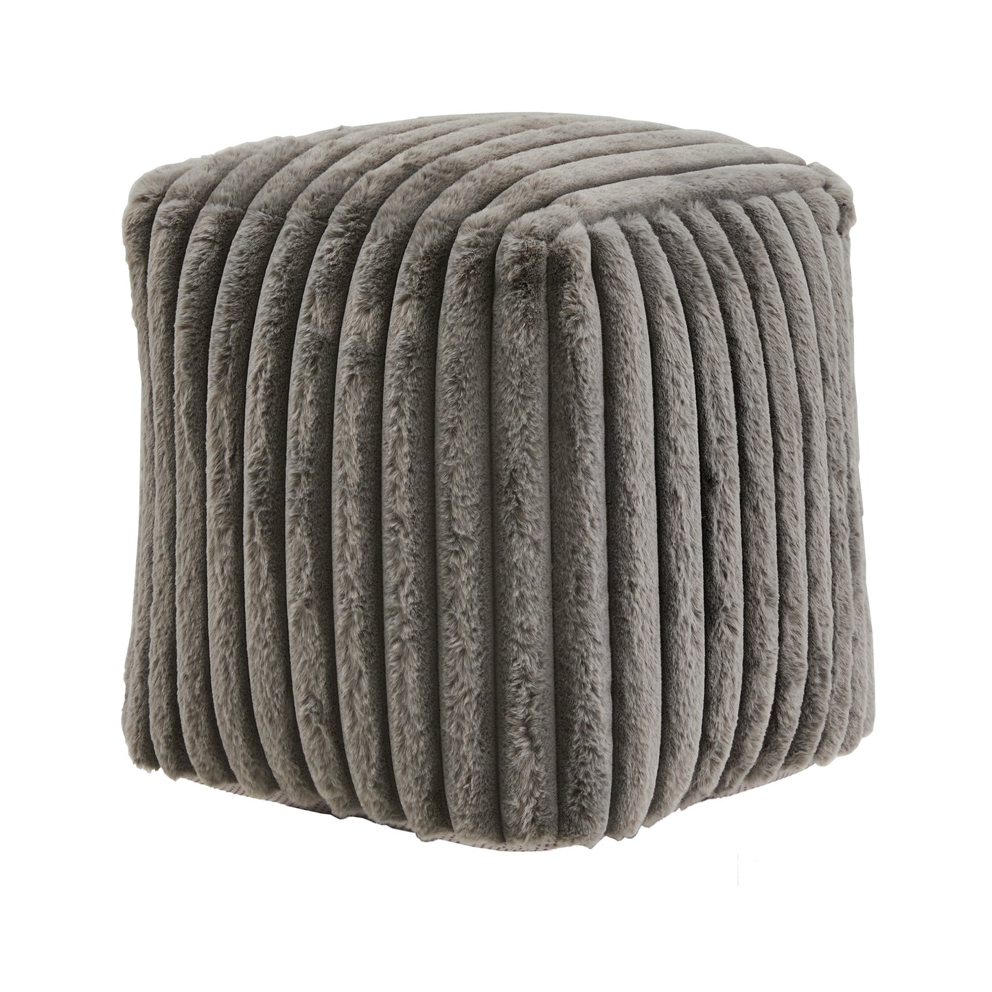 Upholstered Square Pouf Ottoman - Dark Gray Channal Furry Fabric