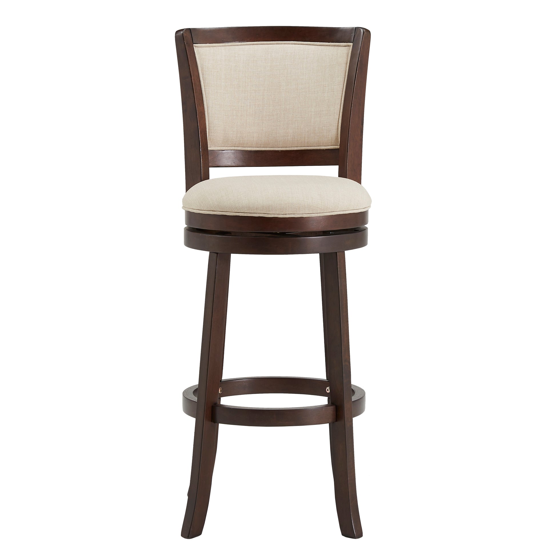 Upholstered Back Swivel Stool - 29" Bar Height, Dark Cherry Finish, Beige Linen