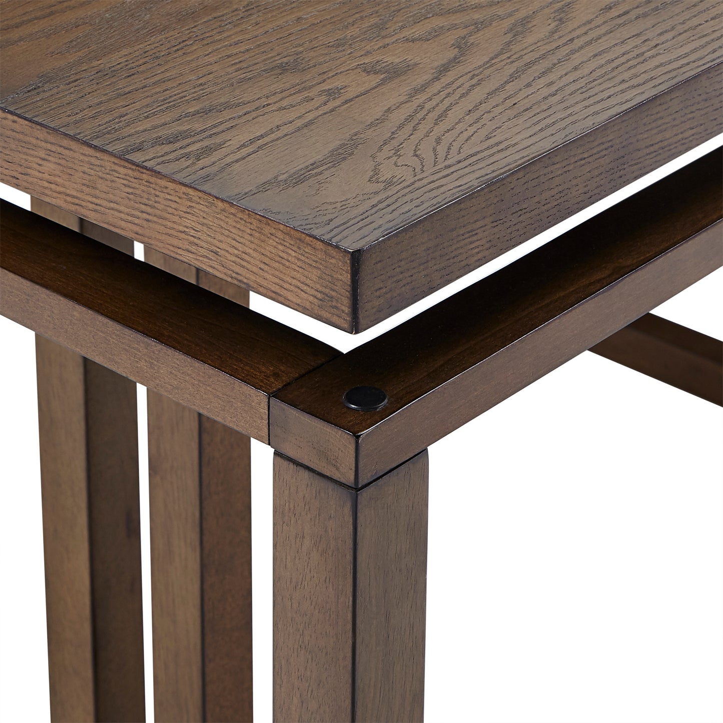 Showcase timeless style in your dining space with the iNSPIRE Q Rectangular Counter Height Dining Table by iNSPIRE Q Classic. Coming in a dark oak finish, this beautiful table features a visible wood grain and an open, clean-lined trestle base perfect for any modern farmhouse. The sturdy wooden construction promises strength and durability throughout all your family dinners.