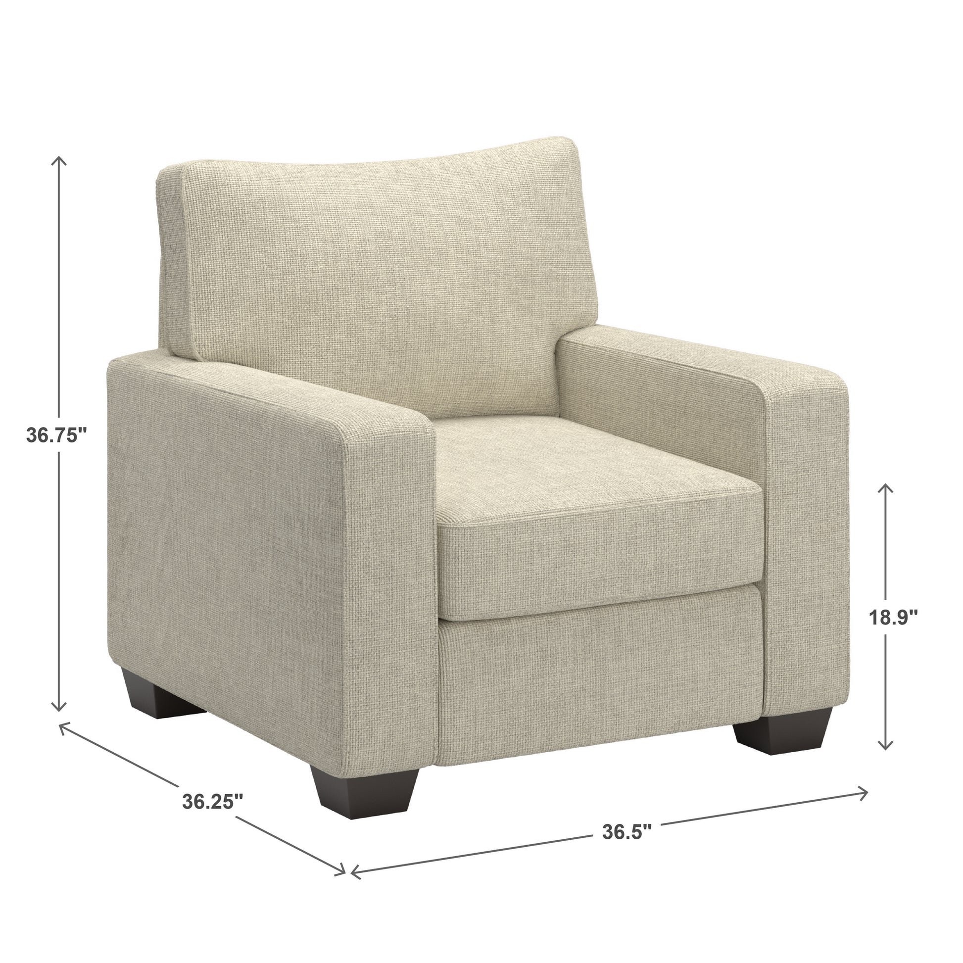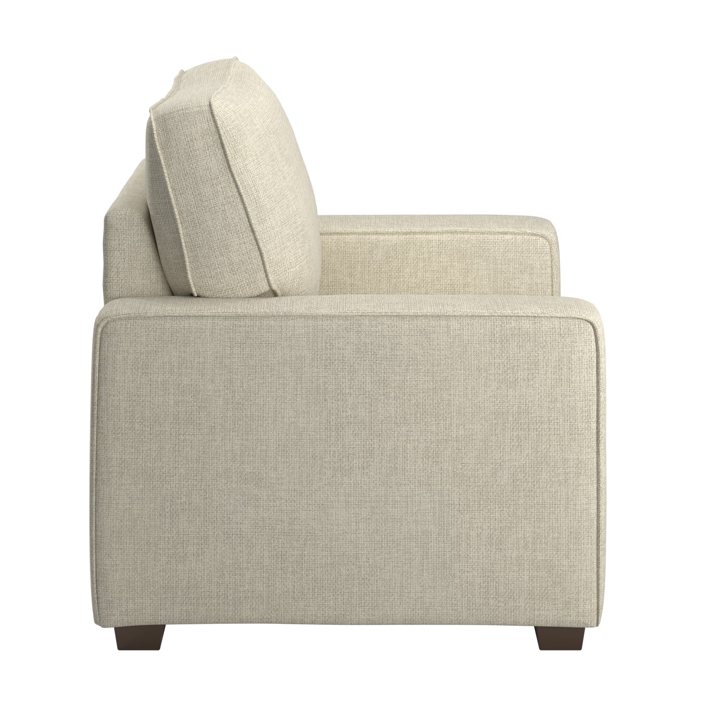 Modern Fabric Upholstered Square Arm Sofa - Living Room Chair, Beige Woven Fabric