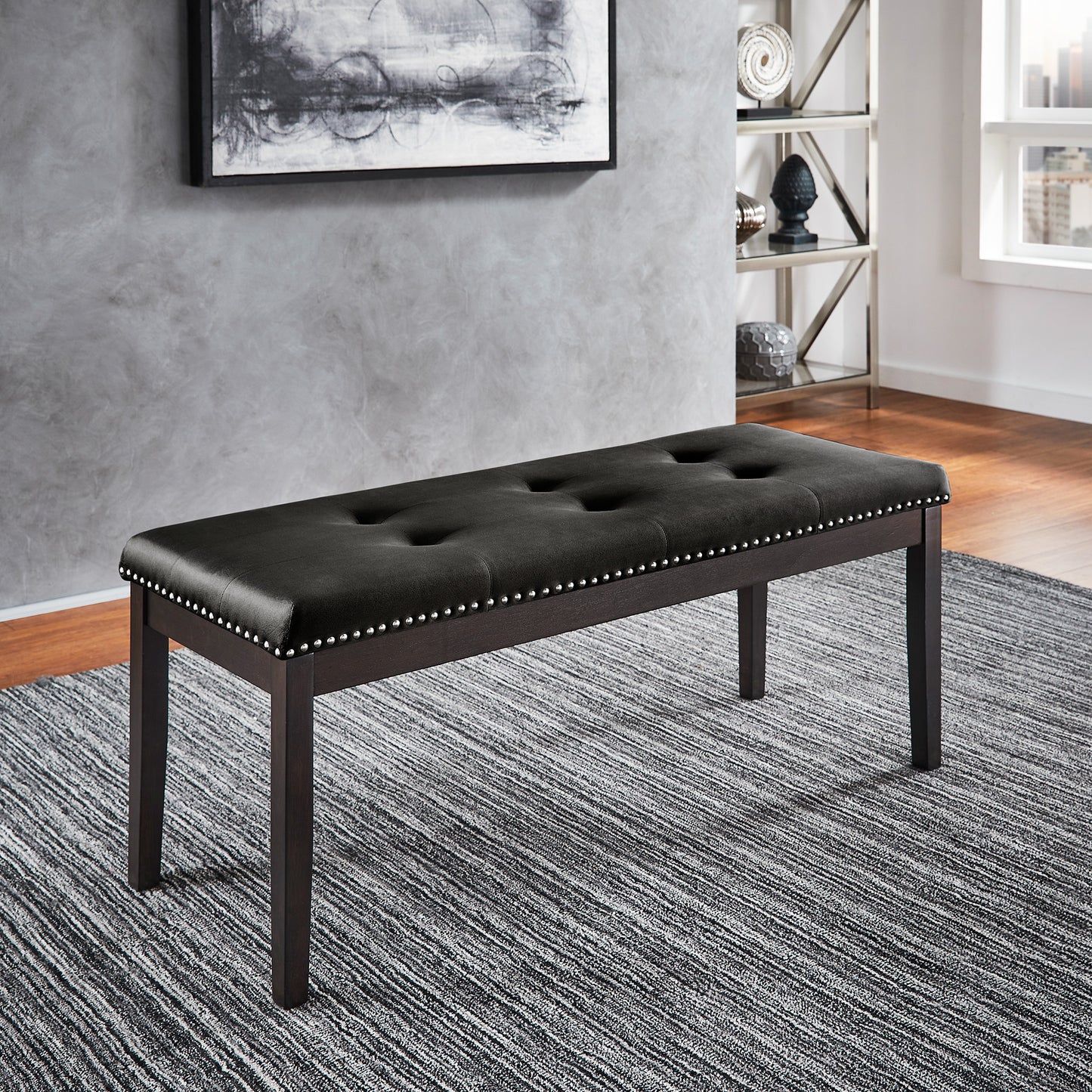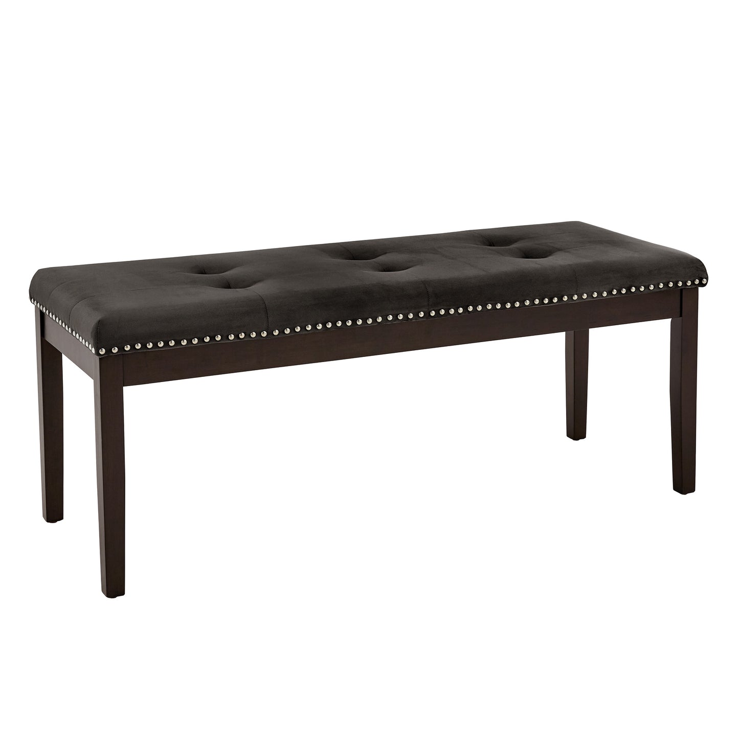 Introducing the Velvet Tufted Nailhead Bench, where durability meets exquisite design. Boasting a solid rubberwood structure, its strength is as commendable as its aesthetic appeal. Dive into unparalleled comfort with its plush foam cushion, draped in a velvet finish that speaks volumes of timeless class. The subtle nailhead trim adds a dash of refinement to its overall look. It's not just a bench; it's an answer to your dining table seating woes, a gracious greeting at the entrance, or a fashionable fixture at your bed's end.