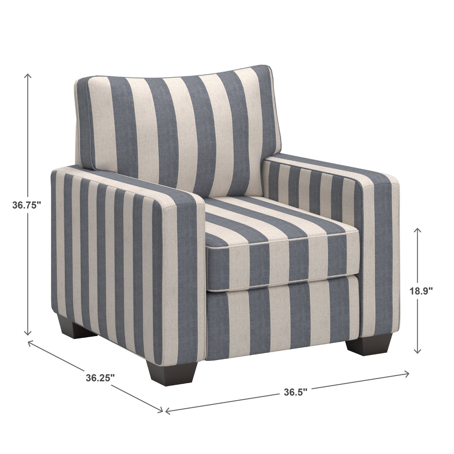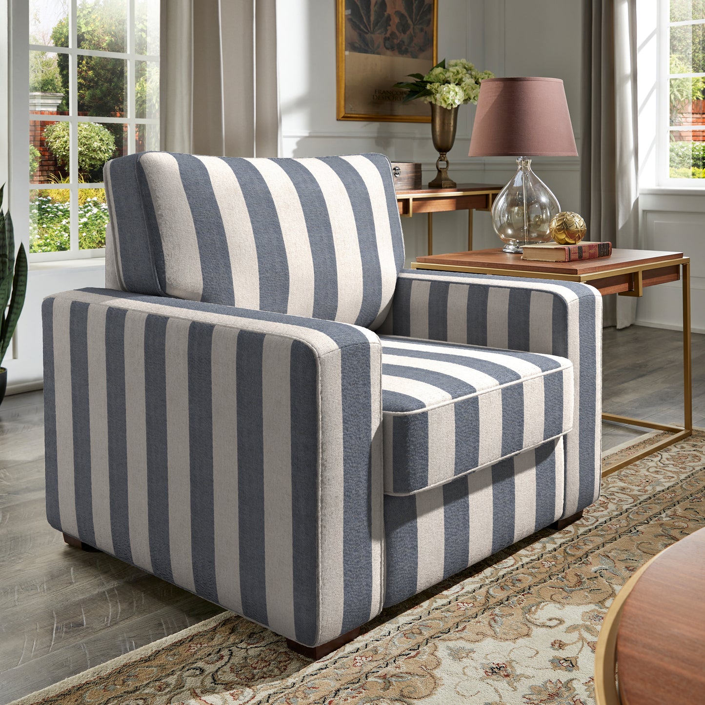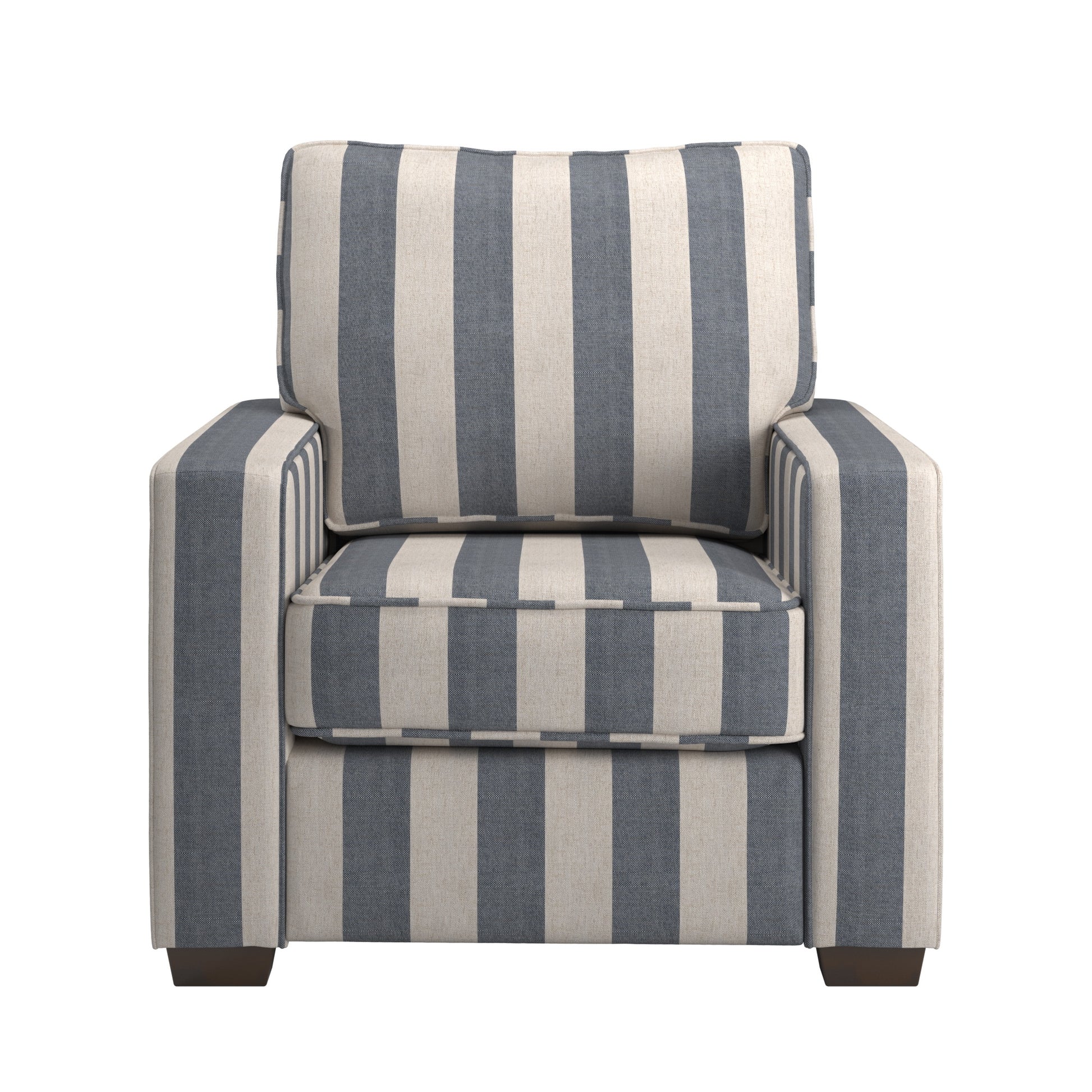 Modern Fabric Upholstered Square Arm Sofa - Living Room Chair, Blue and White Strip Pattern Fabric