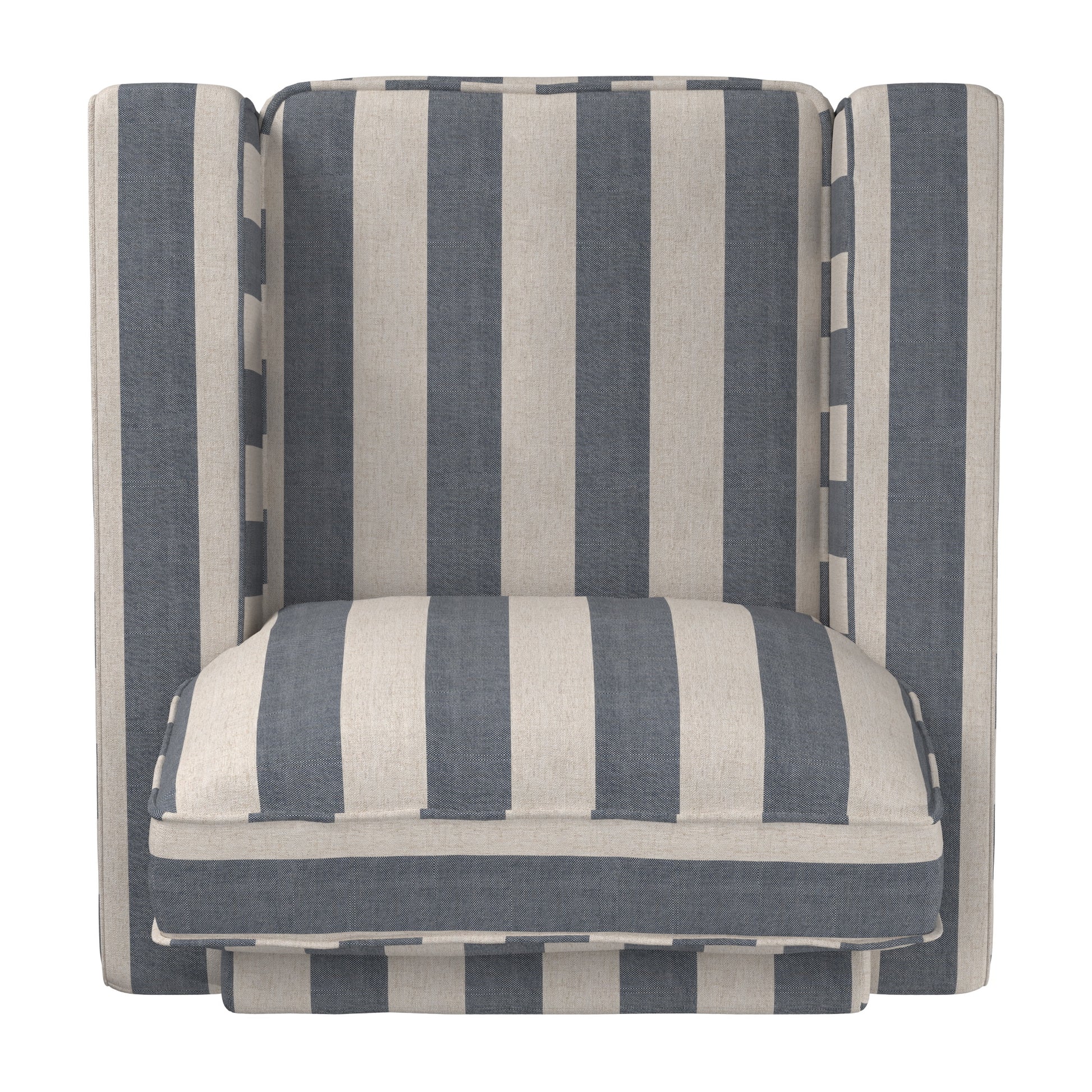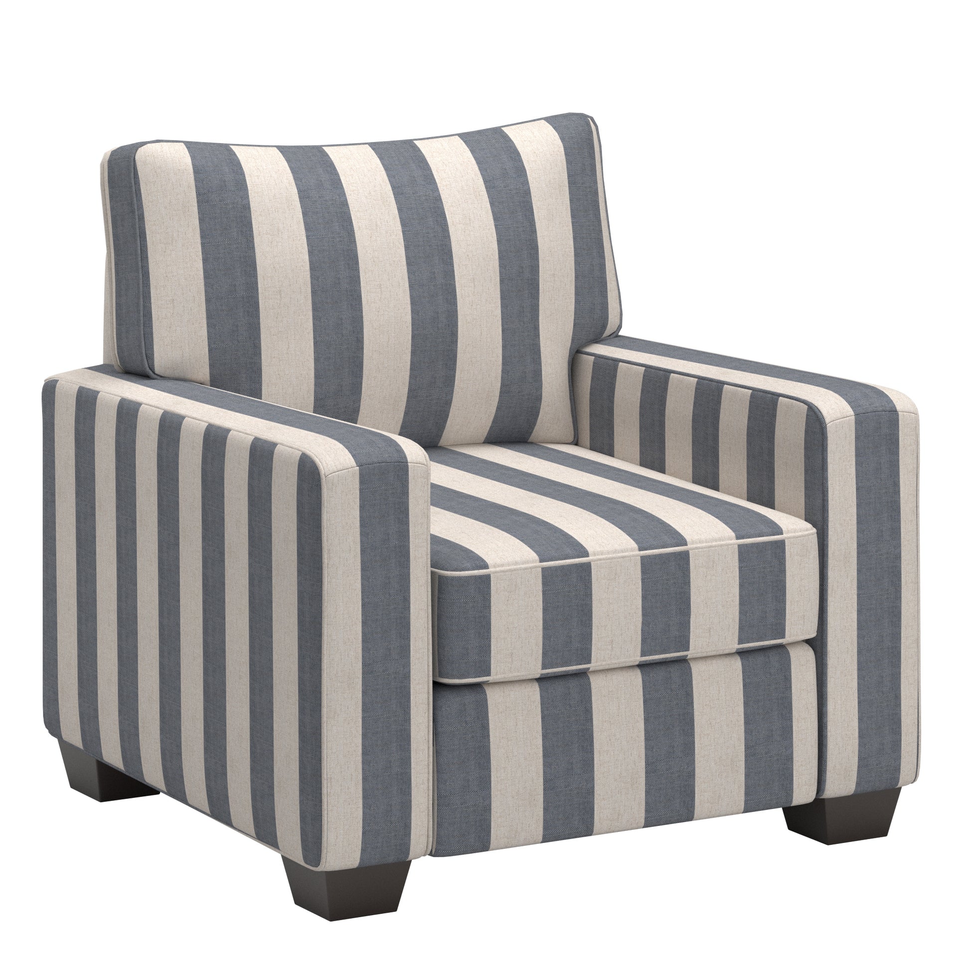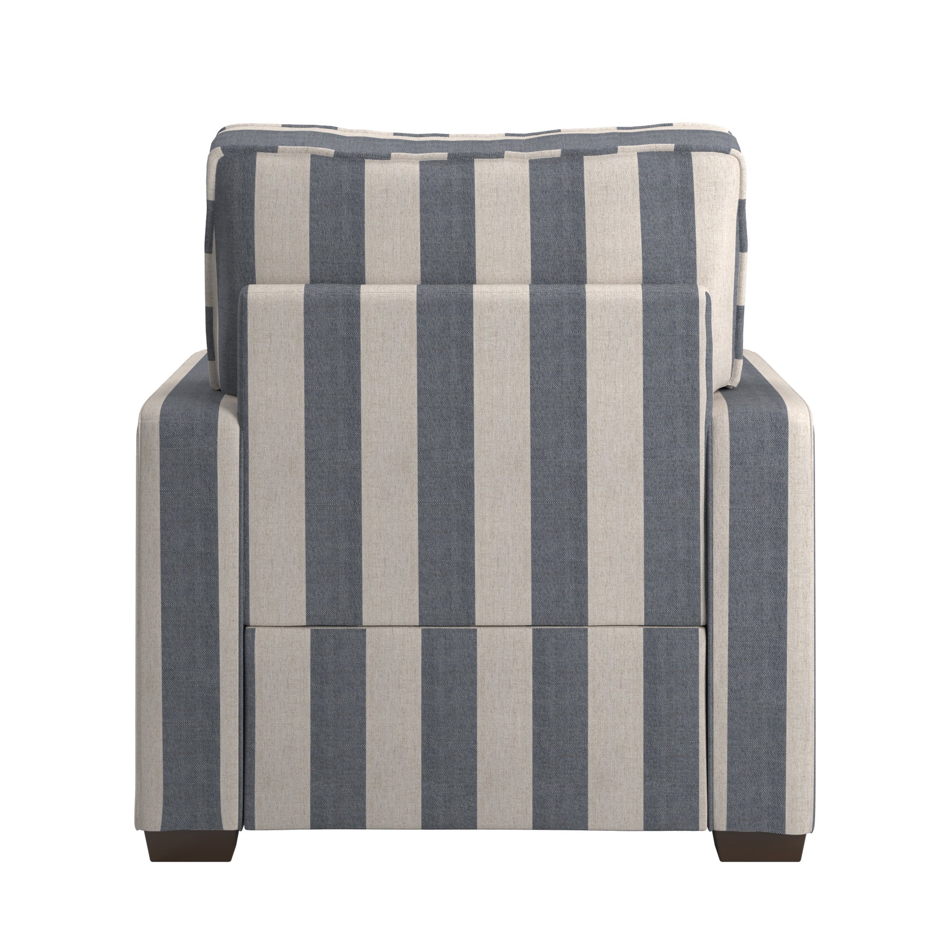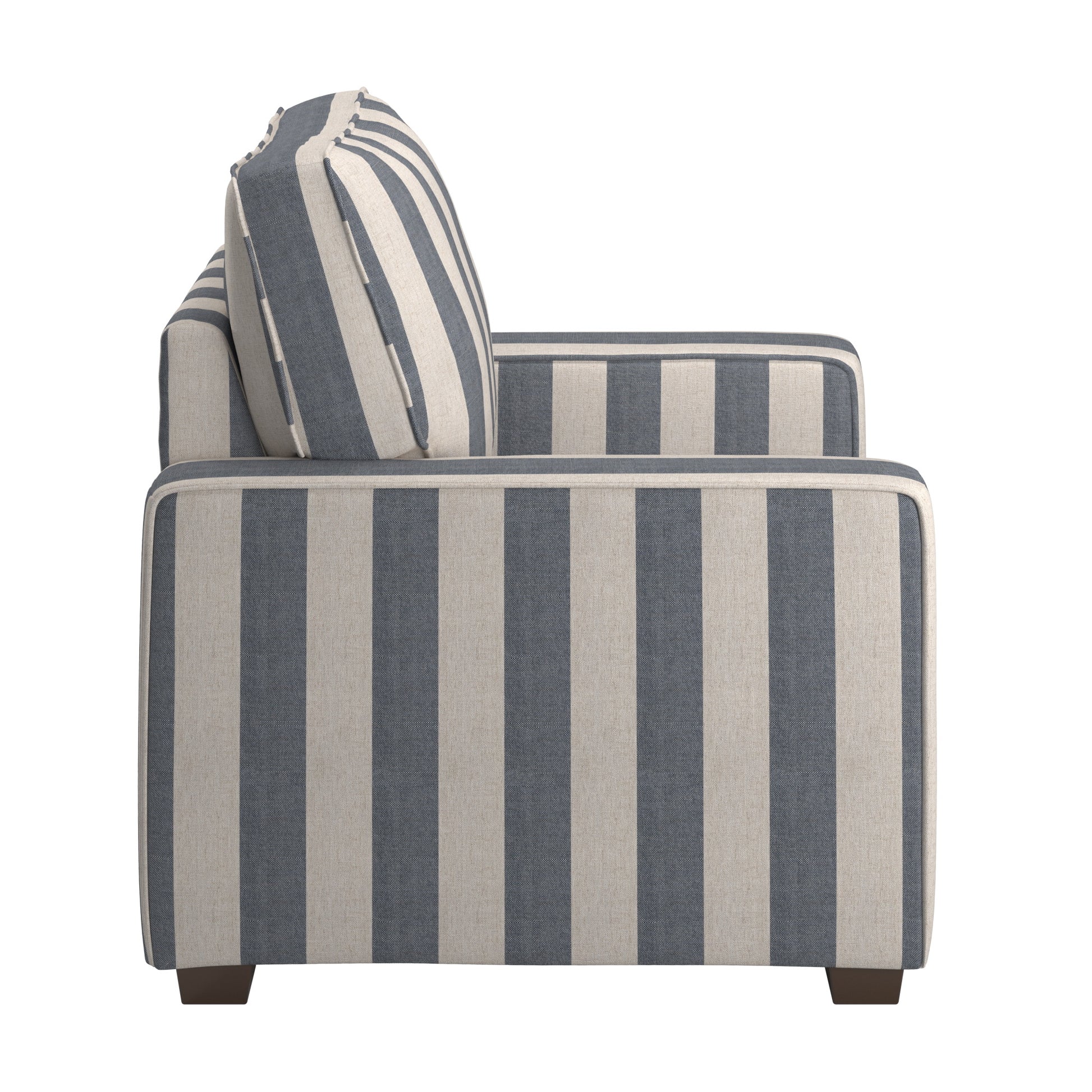 Modern Fabric Upholstered Square Arm Sofa - Living Room Chair, Blue and White Strip Pattern Fabric
