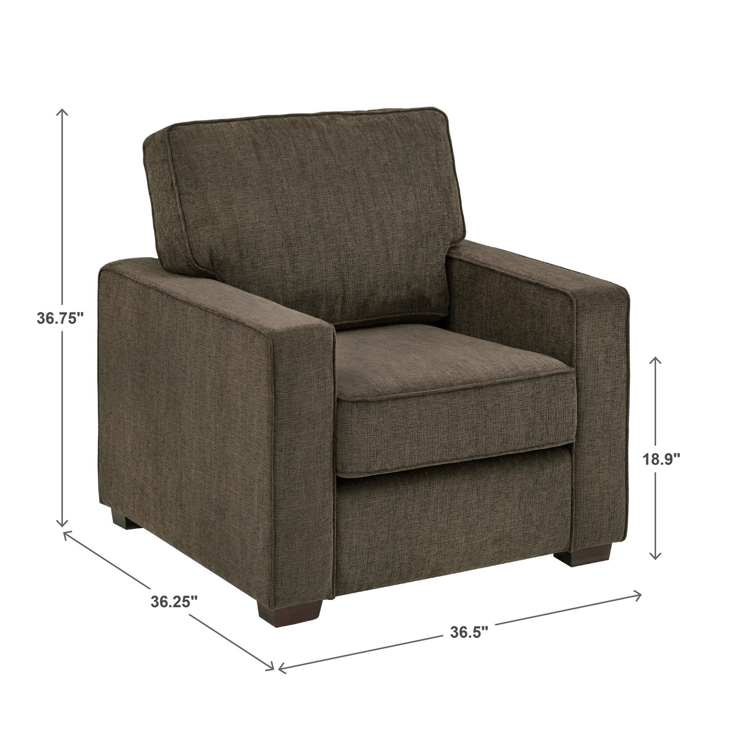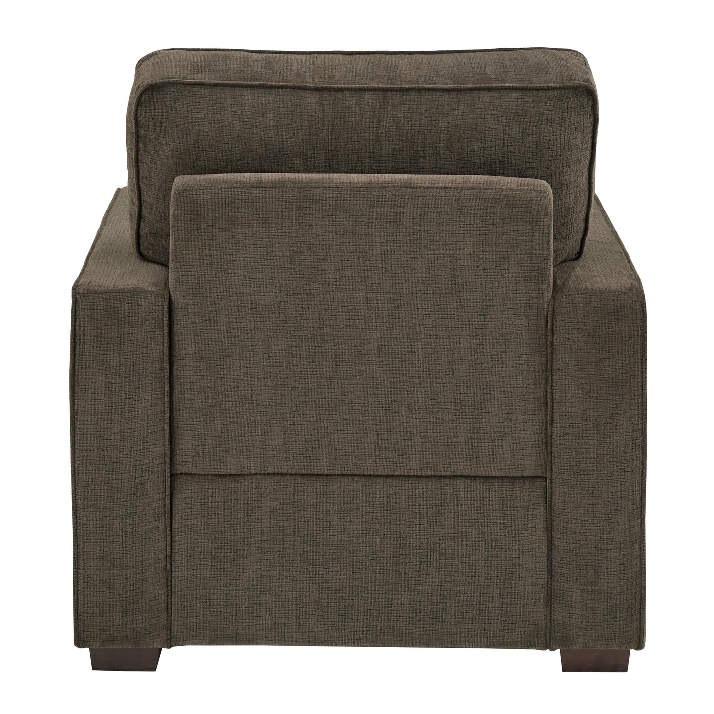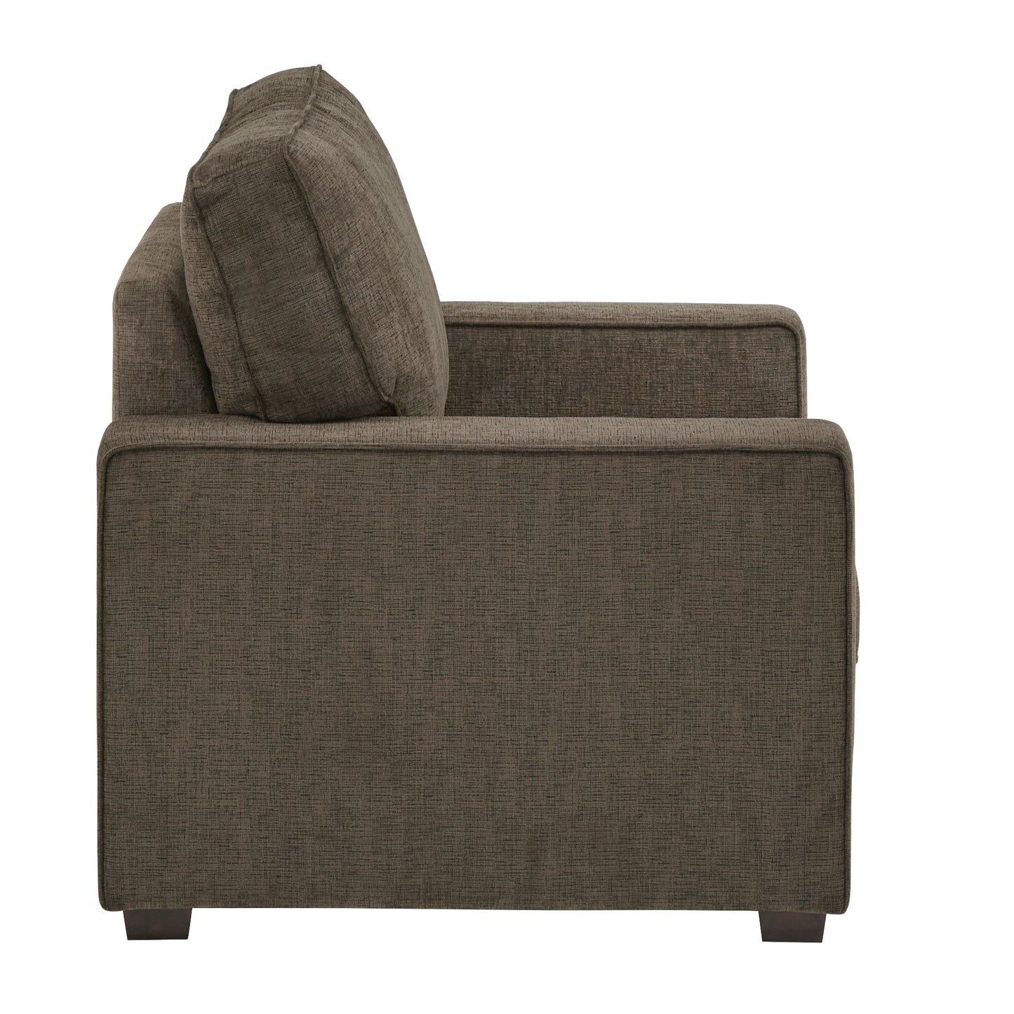 Modern Fabric Upholstered Square Arm Sofa - Living Room Chair, Brown Chenille Fabric