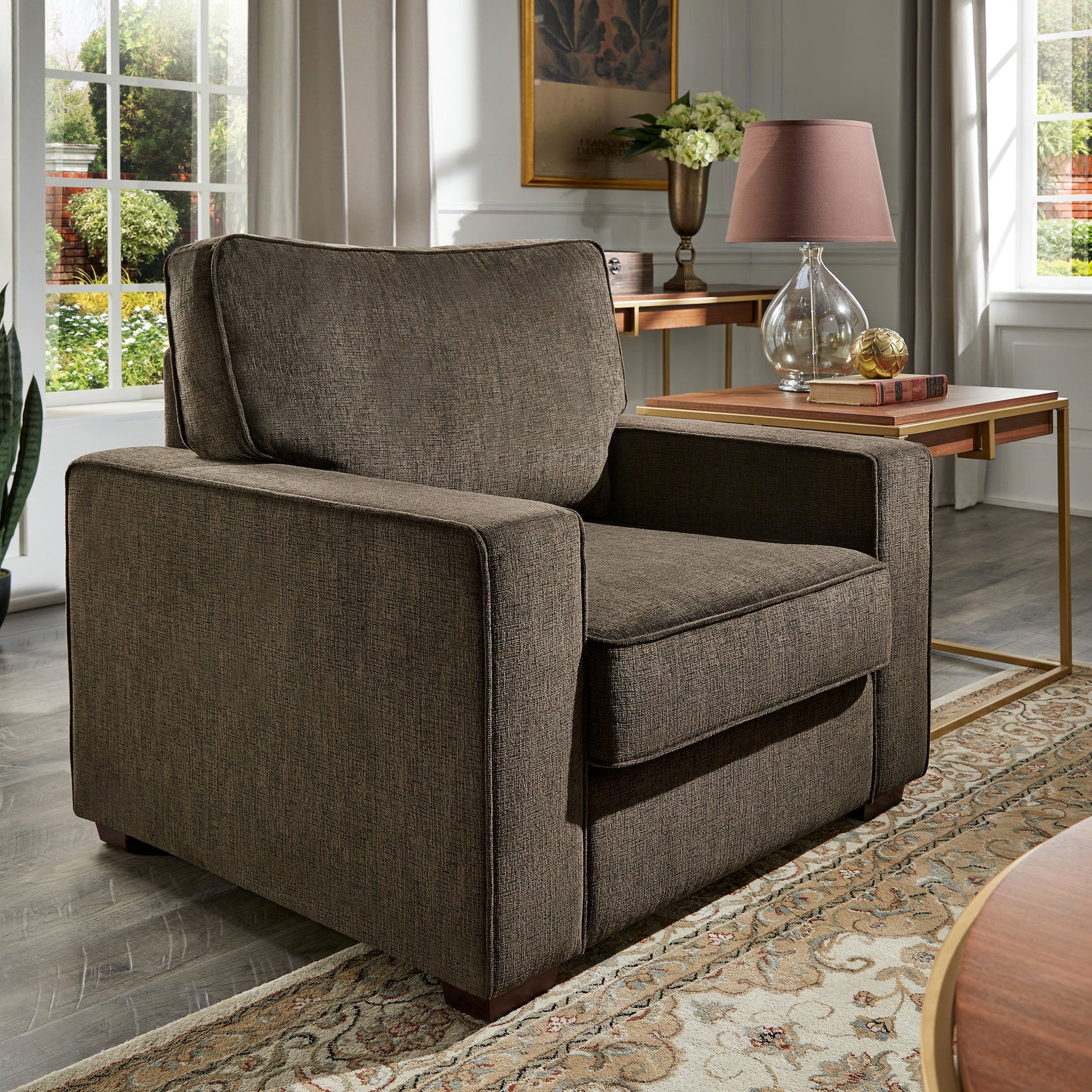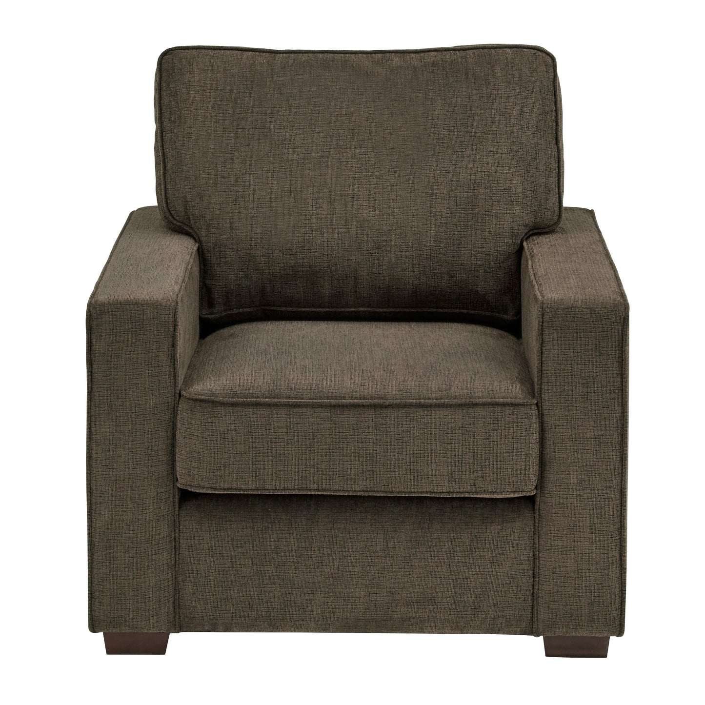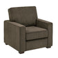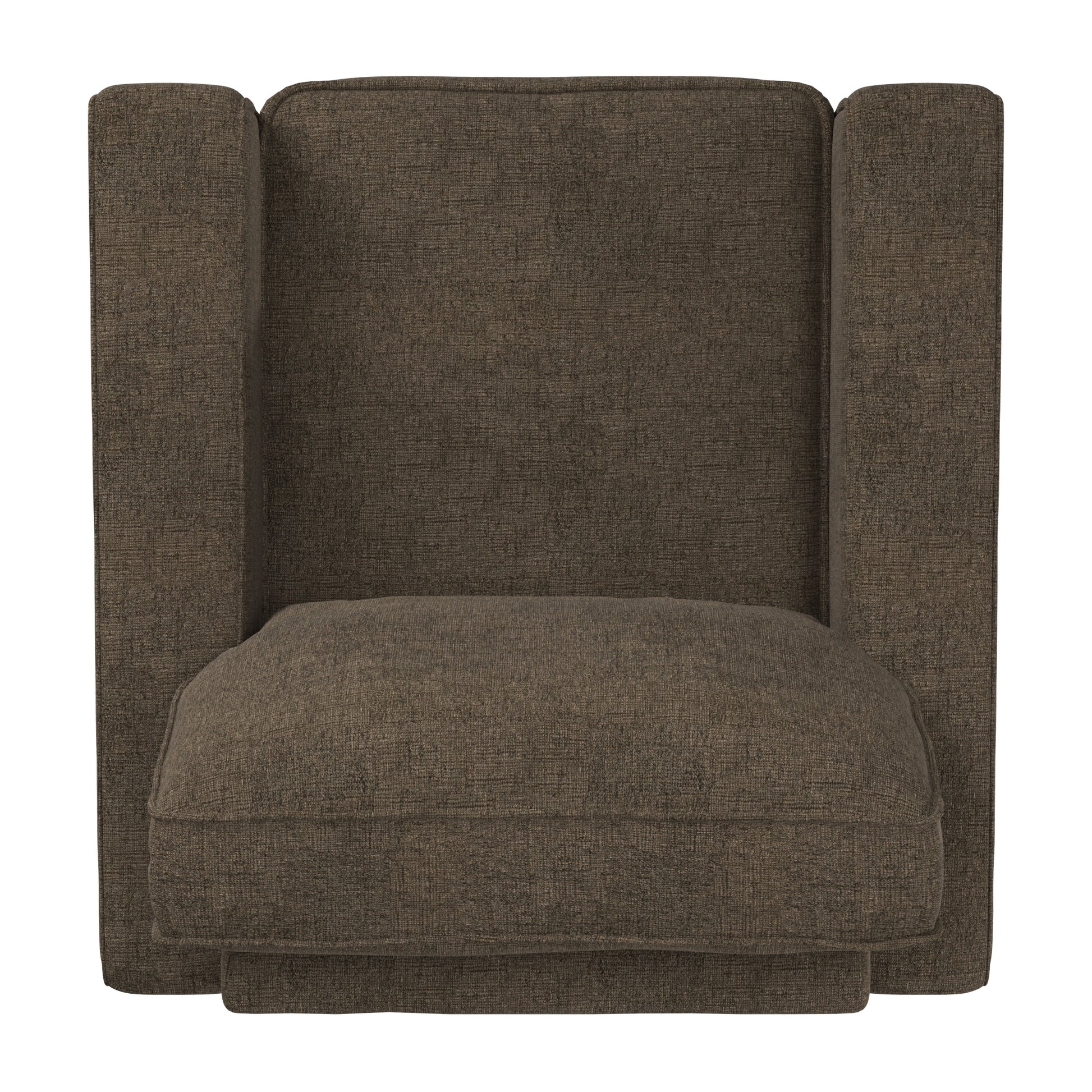 Modern Fabric Upholstered Square Arm Sofa - Living Room Chair, Brown Chenille Fabric