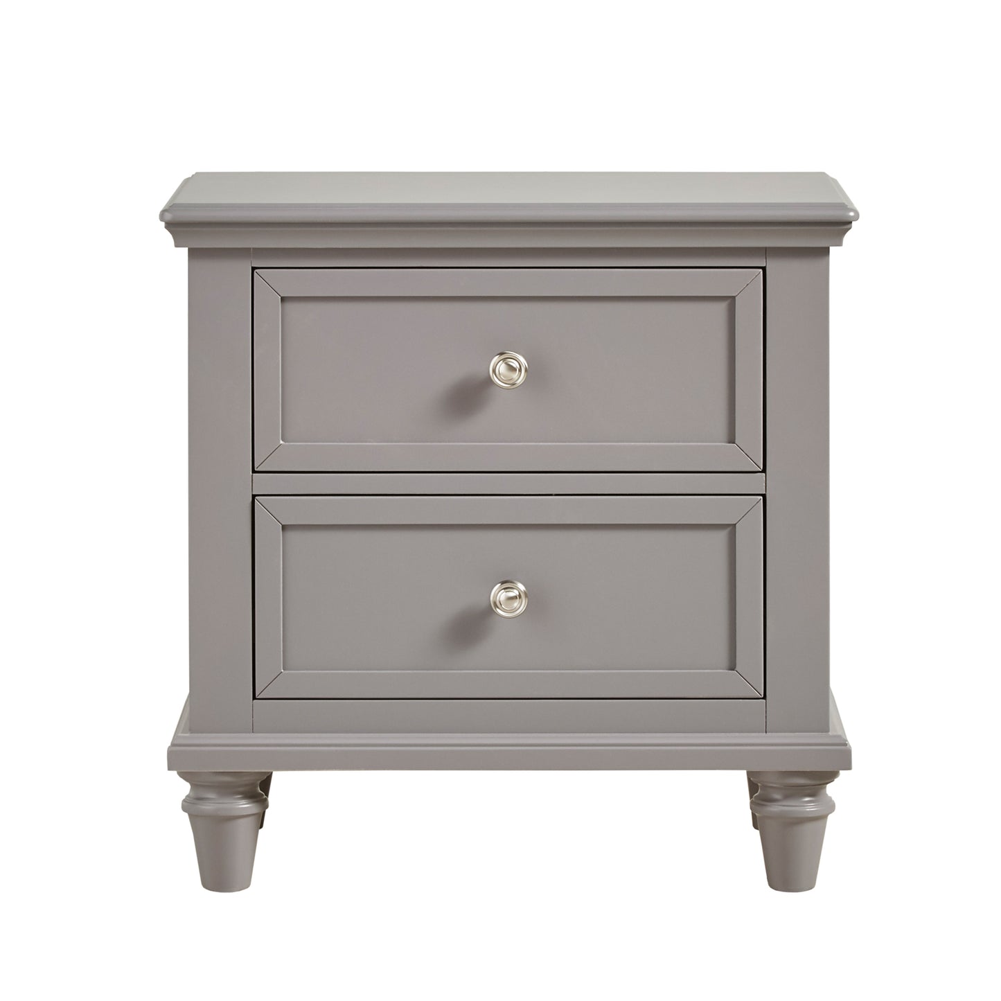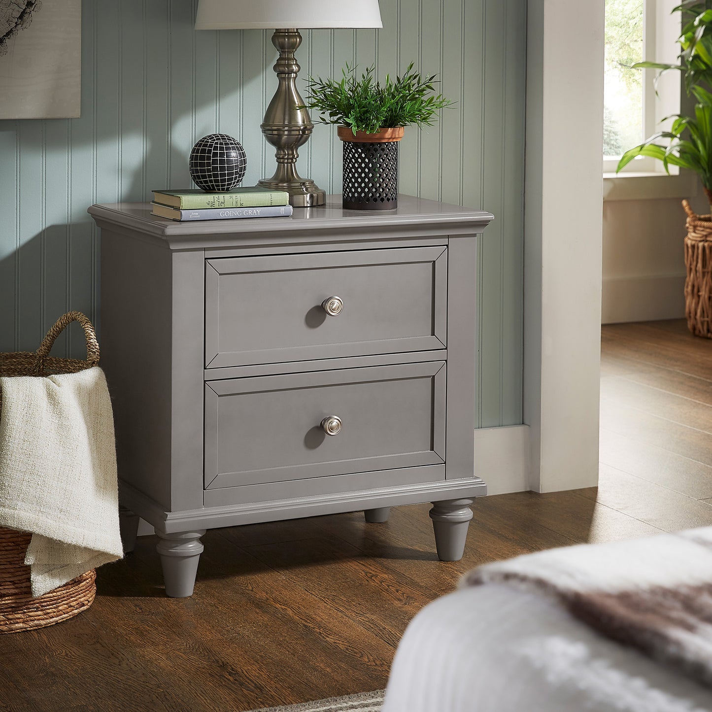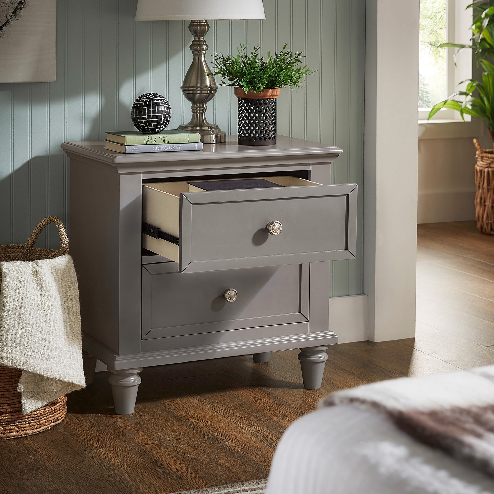 Equip your child's bedroom or guest room with additional storage with this side table nightstand. Two drawers offer ample space for books, toys, and other belongings, with the top surface is sufficient for a bedside lamp and alarm clock. Metal glides promote safety by preventing the drawers from sliding all the way out.